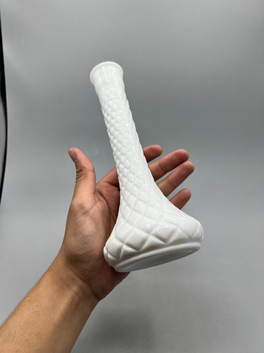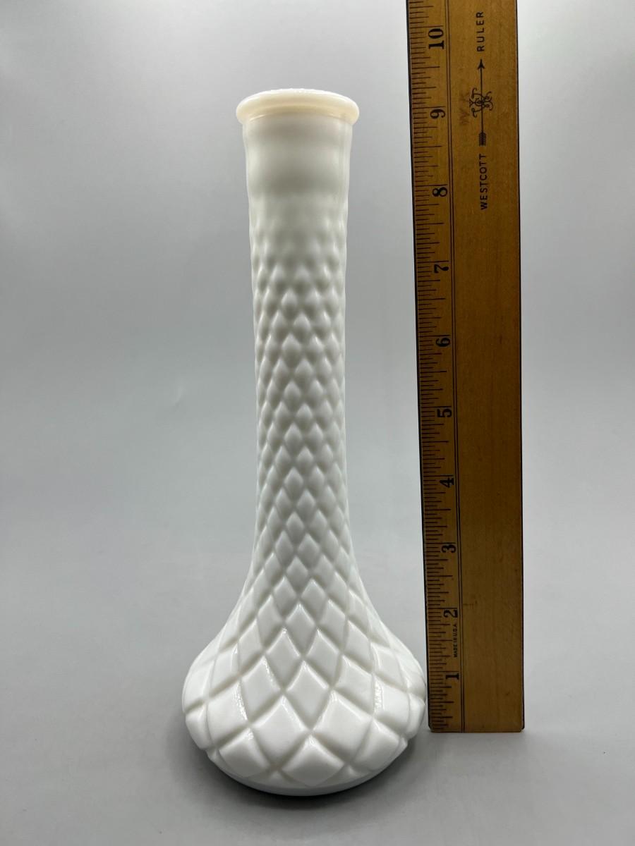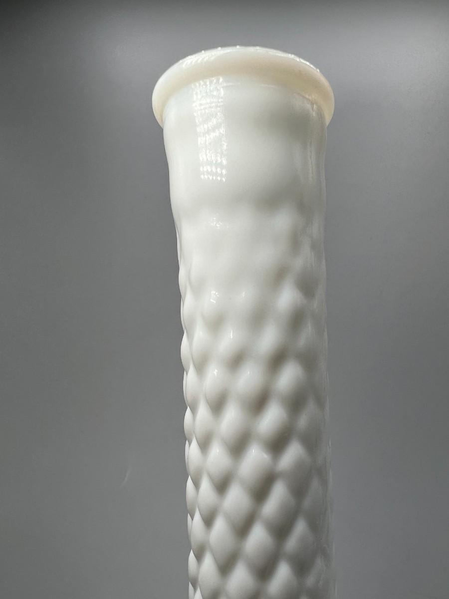 Vintage Diamond Cut Pattern White Milk Glass Bud Vase