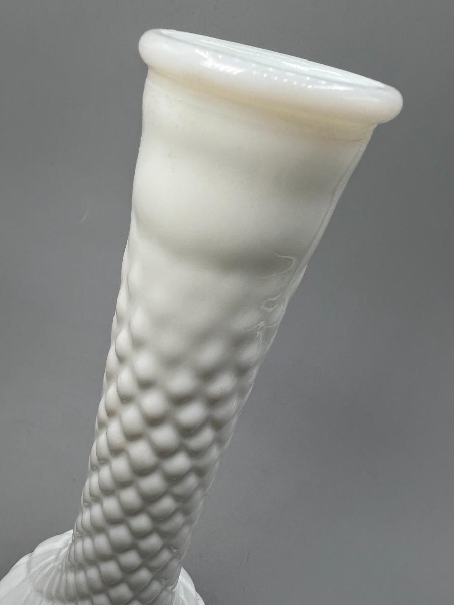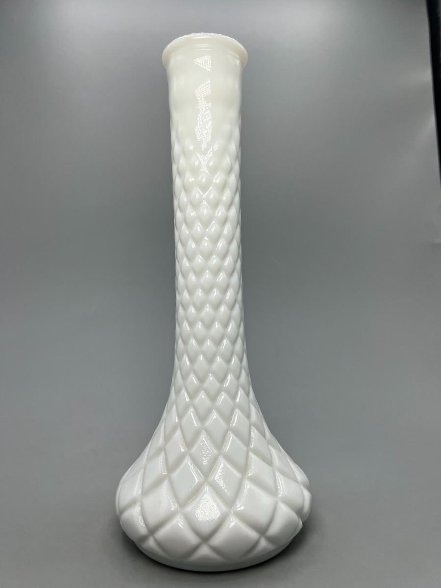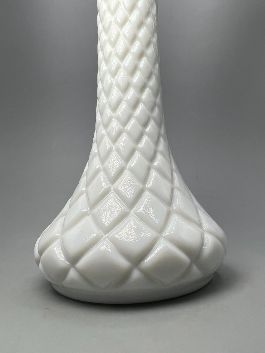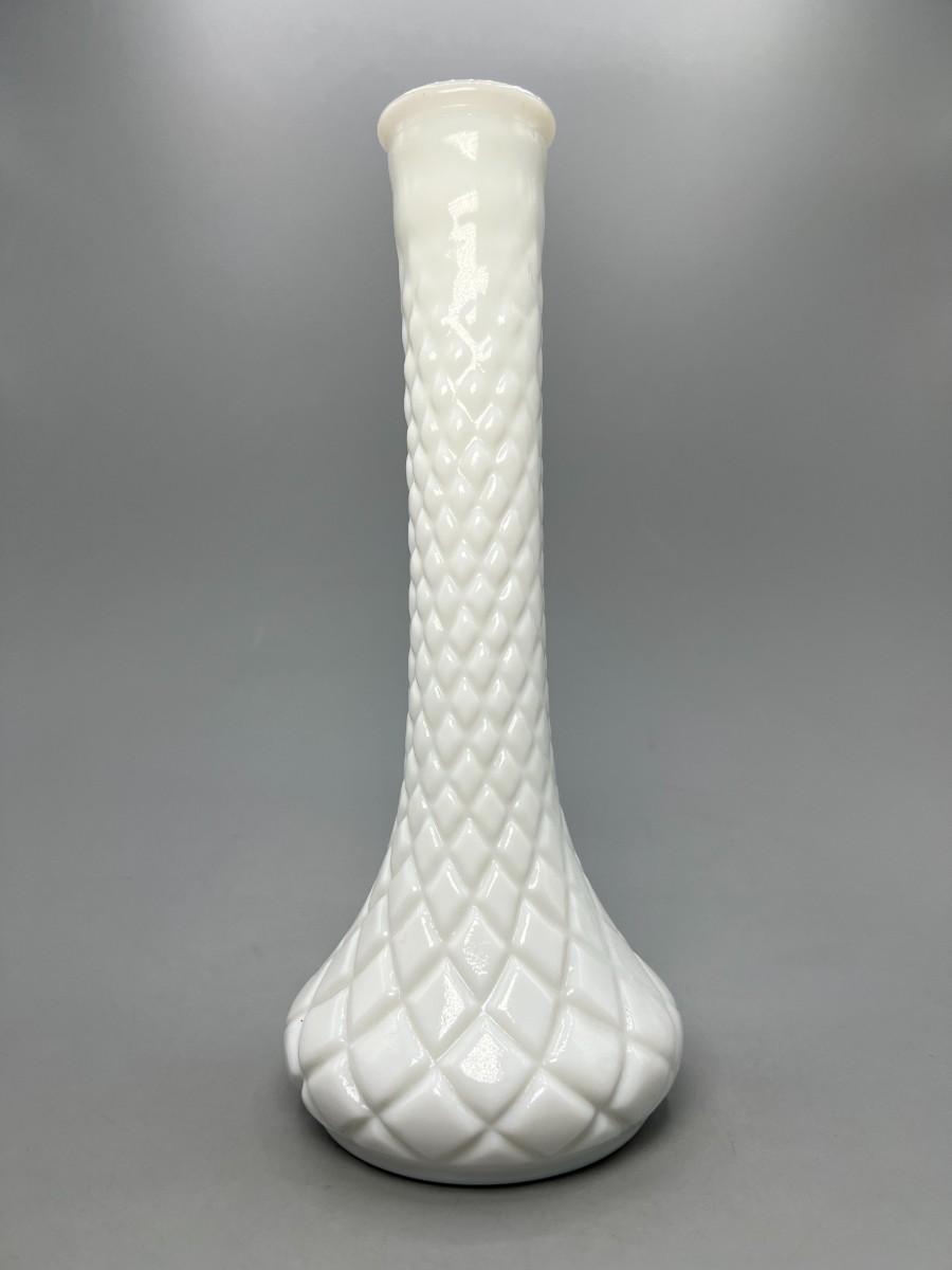 Vintage Diamond Cut Pattern White Milk Glass Bud Vase