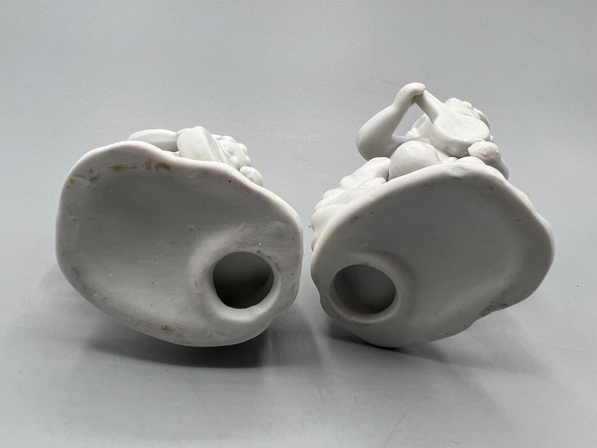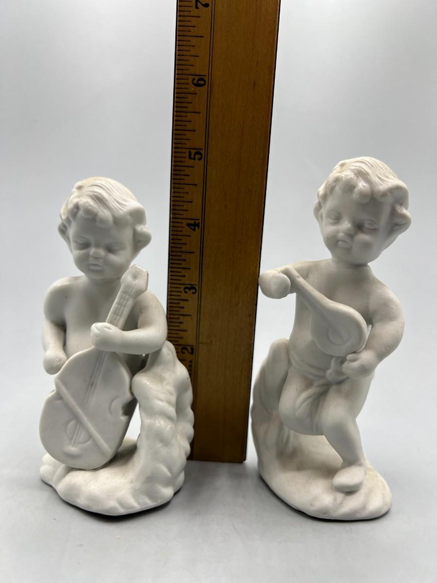 Pair of White Porcelain Ceramic Cherub Angels Playing Instruments Figurines