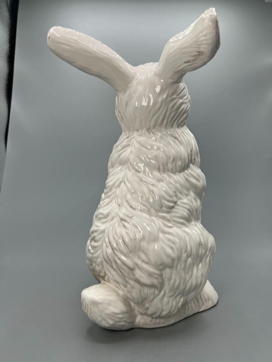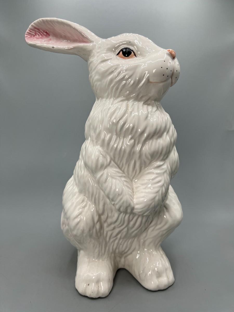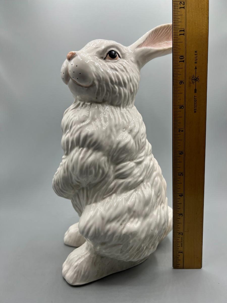 White Ceramic Porcelain Bunny Rabbit Standing up on Hind Legs Figurine Statue. About 11" tall. In good previously displayed condition.