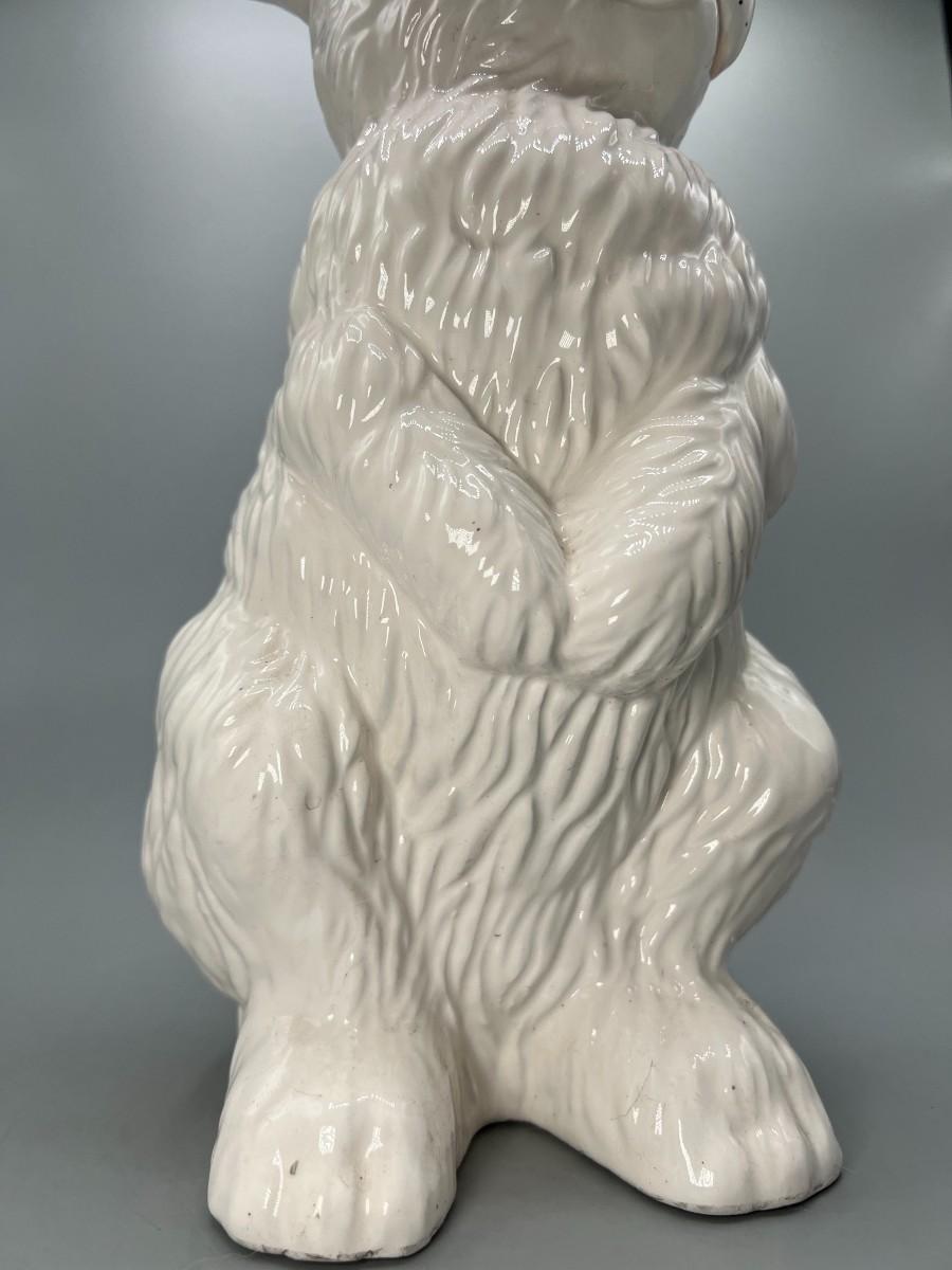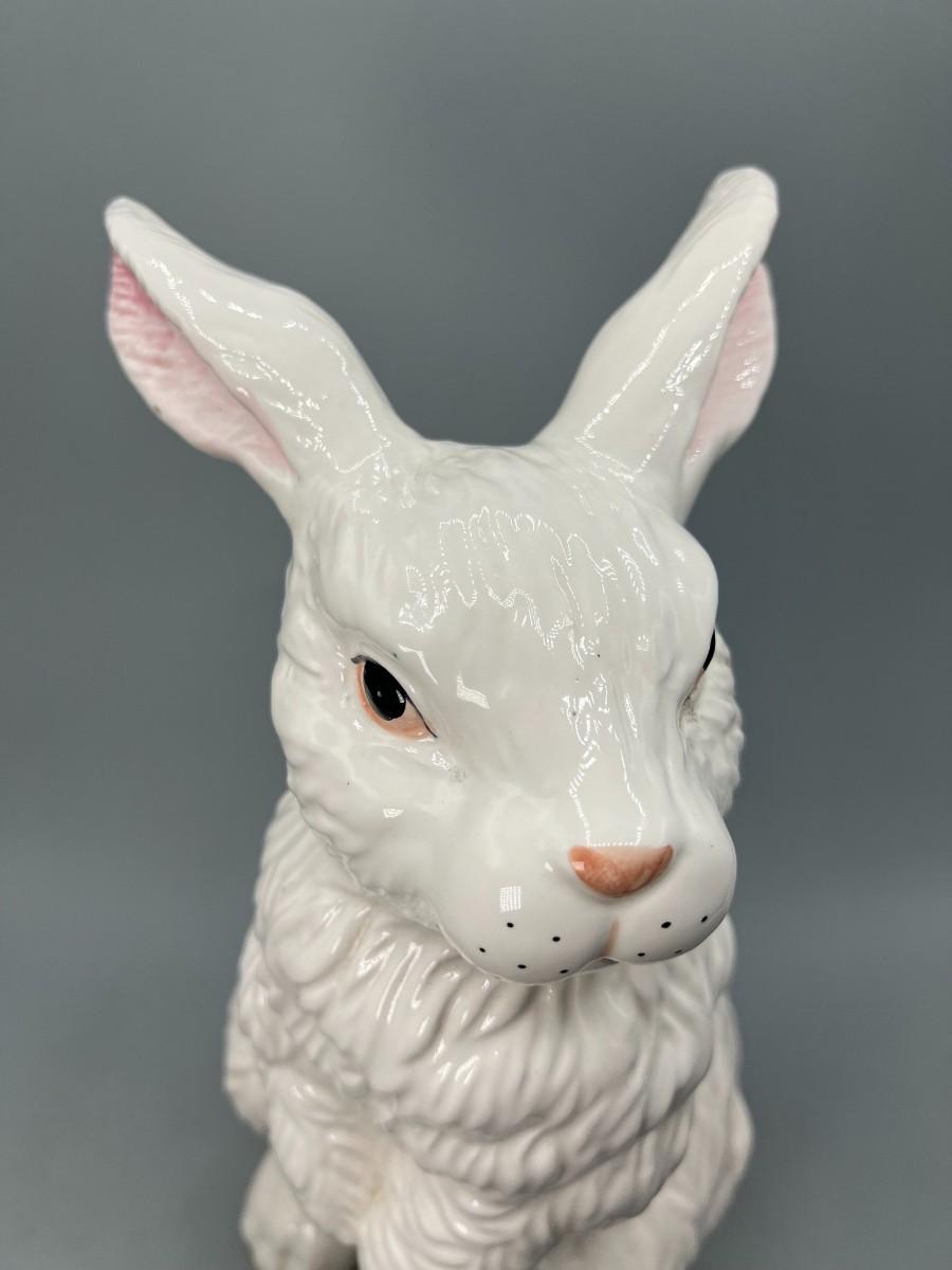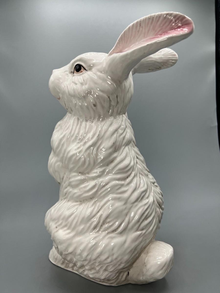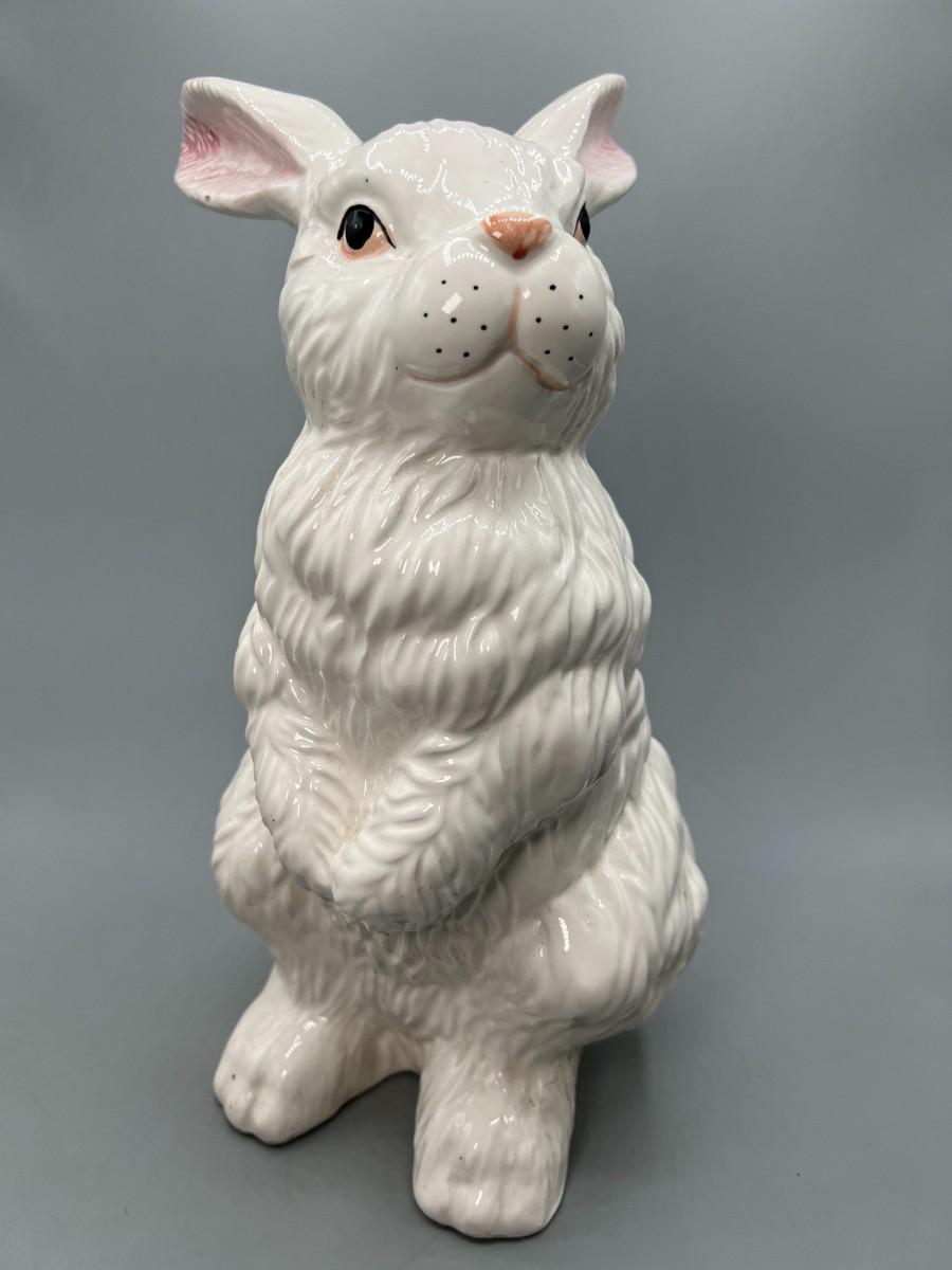 White Ceramic Porcelain Bunny Rabbit Standing up on Hind Legs Figurine Statue. About 11" tall. In good previously displayed condition.