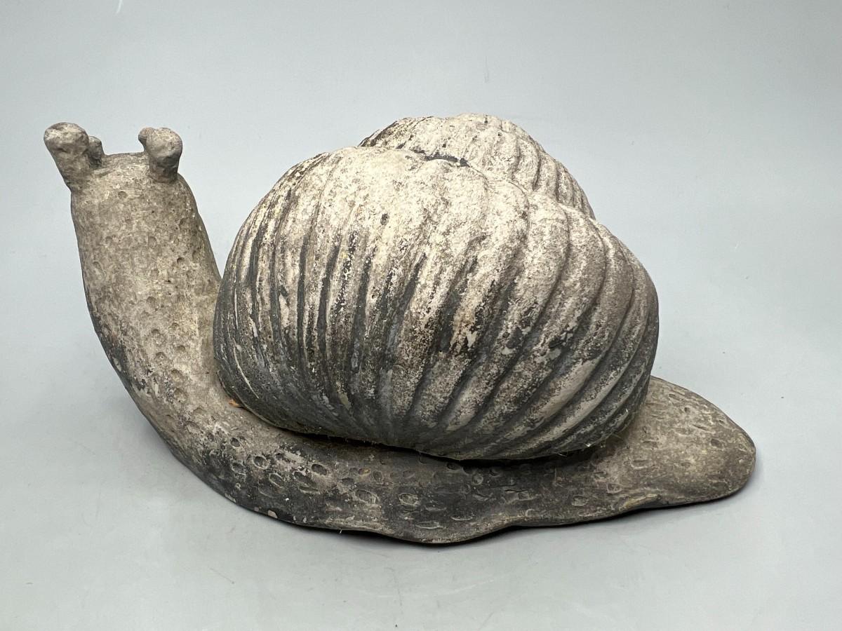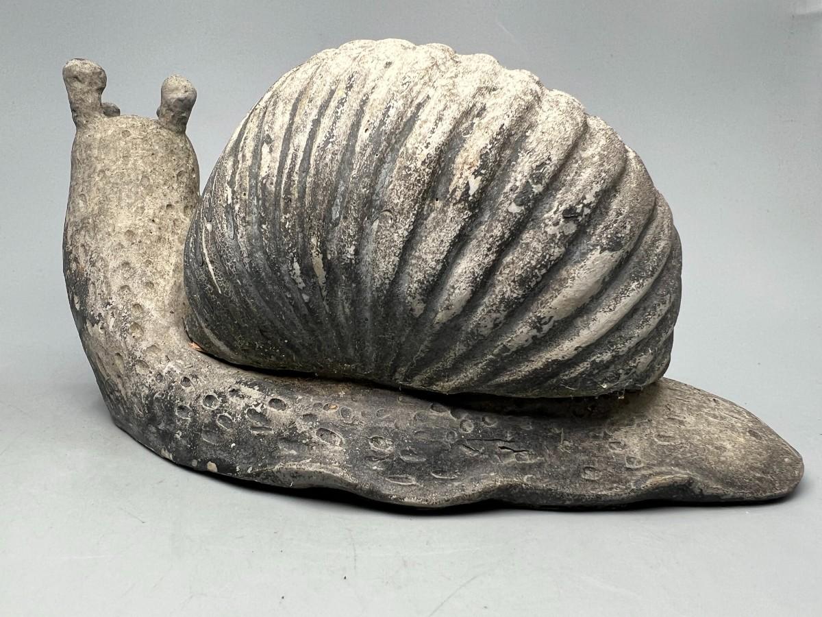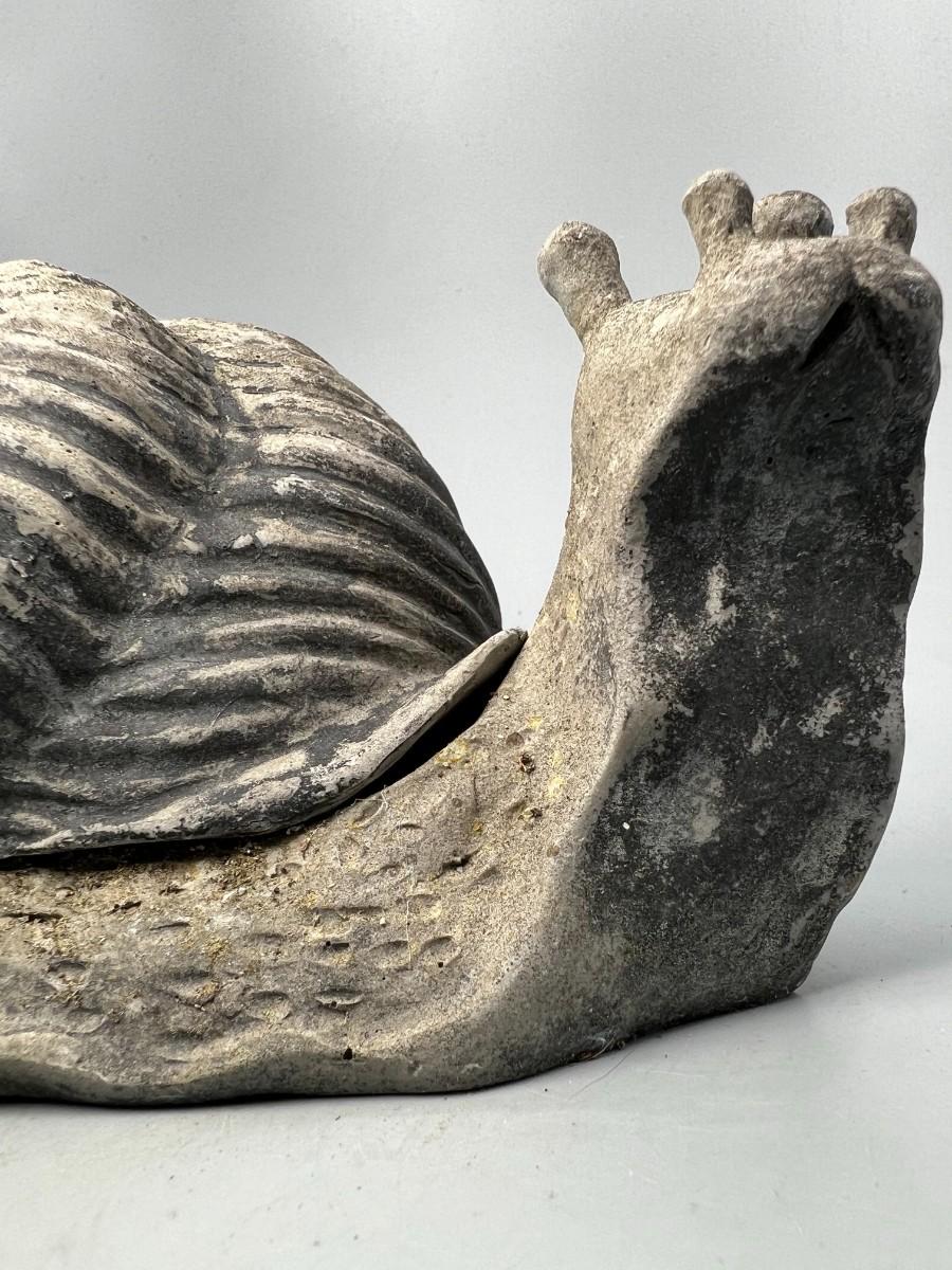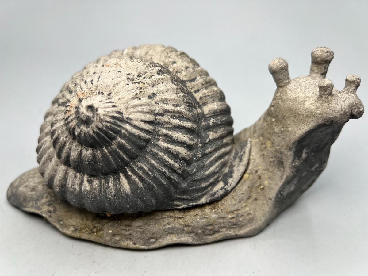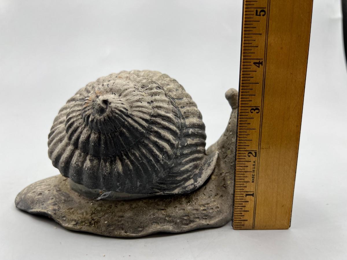 Concrete Cement Snail Hide a Key Garden Yard Art. In good used condition. Shell comes off to hide an emergency key.