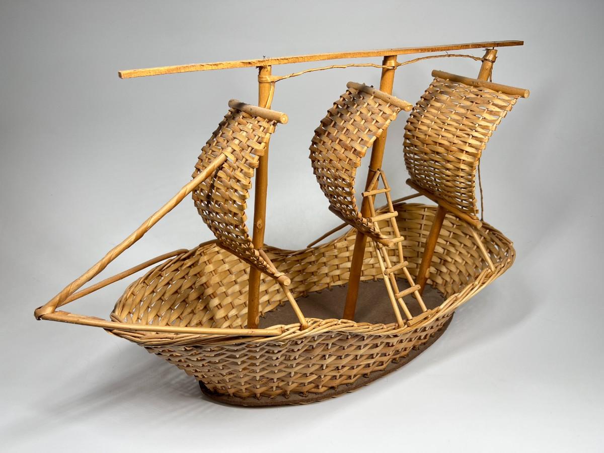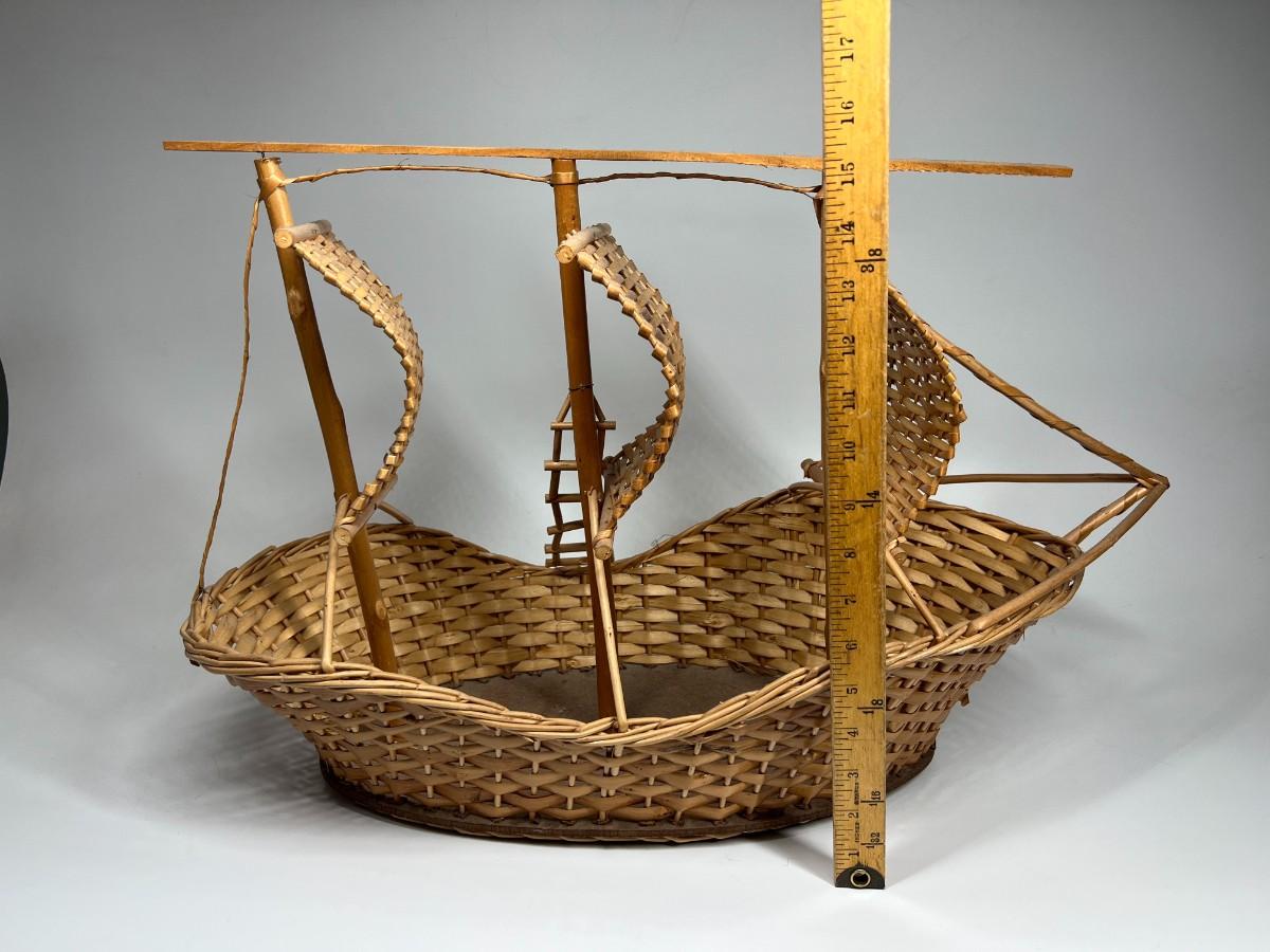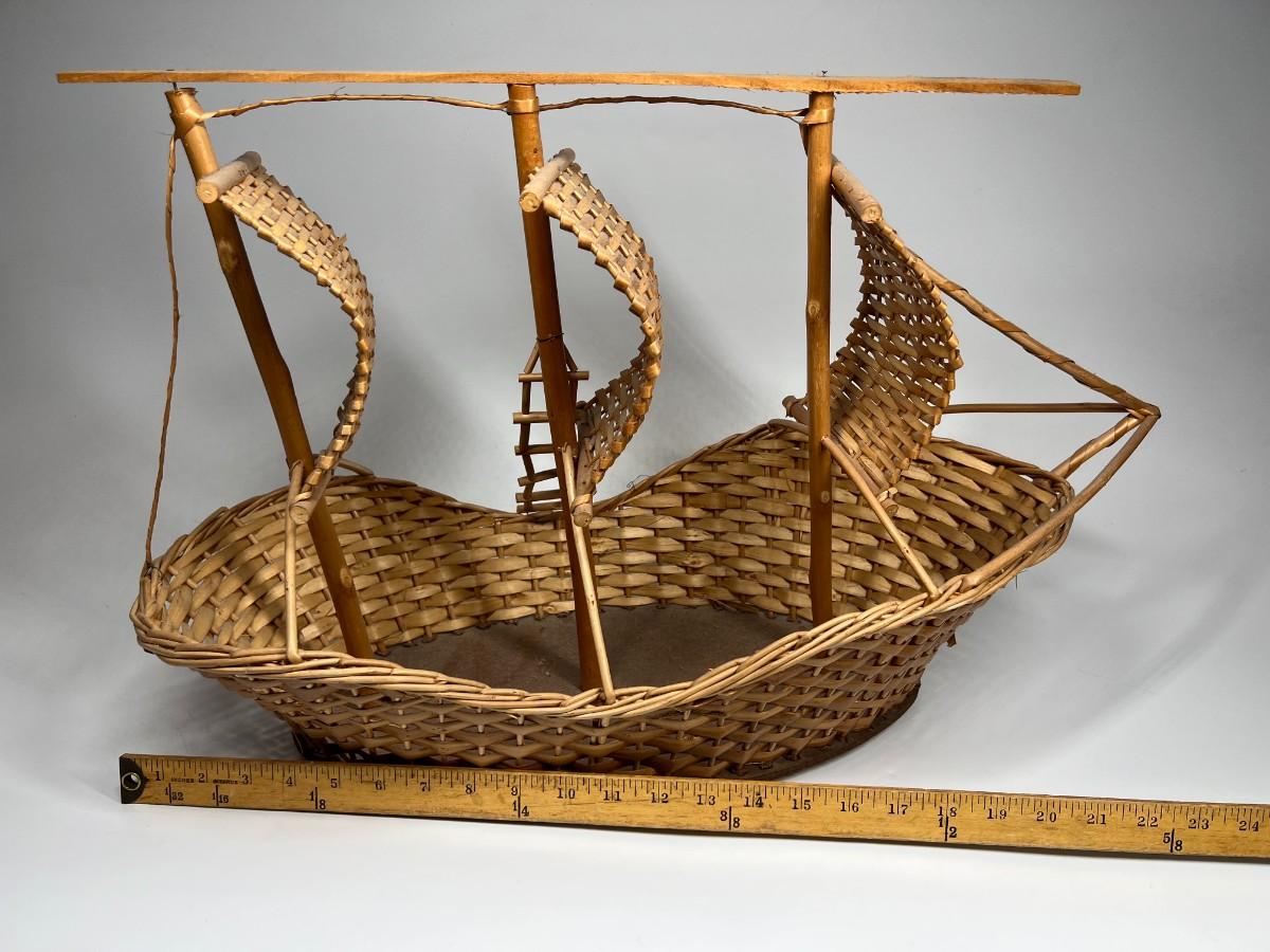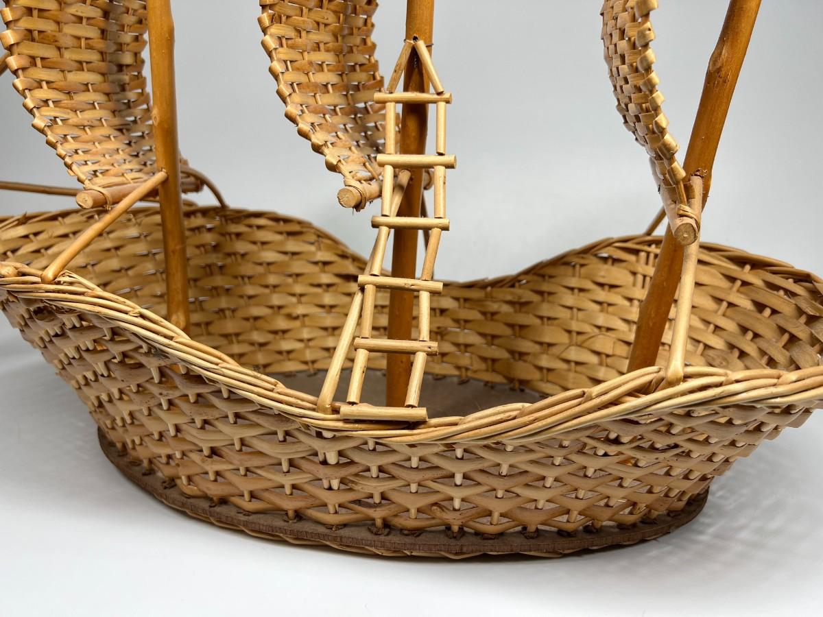 Vintage Reed Woven Sailboat Sailing Ship Boat Basket Made in Portugal