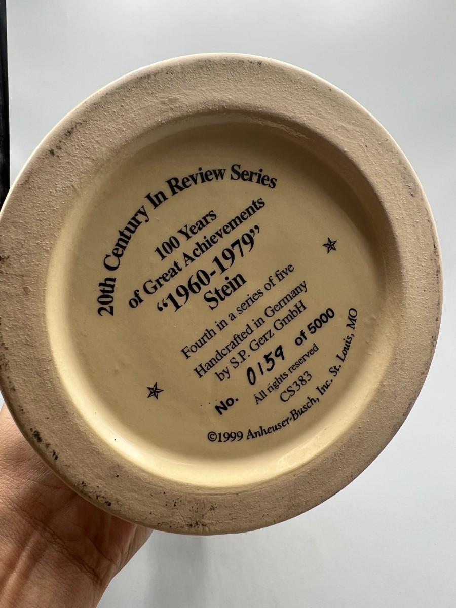 Anheuser Busch 20th Century in Review Series 1960-1979 Lidded Beer Stein. in good condition. Released in 1999.
