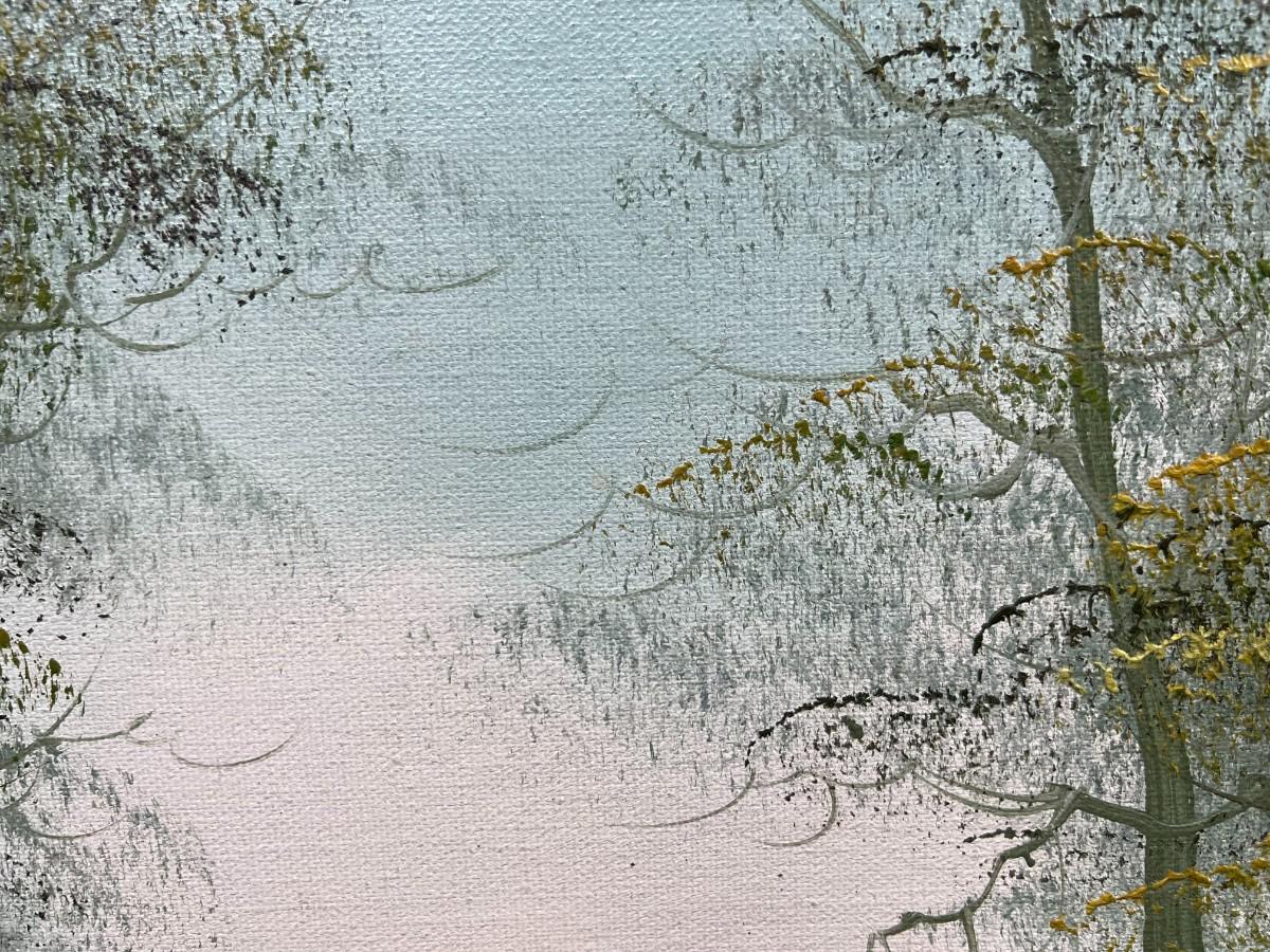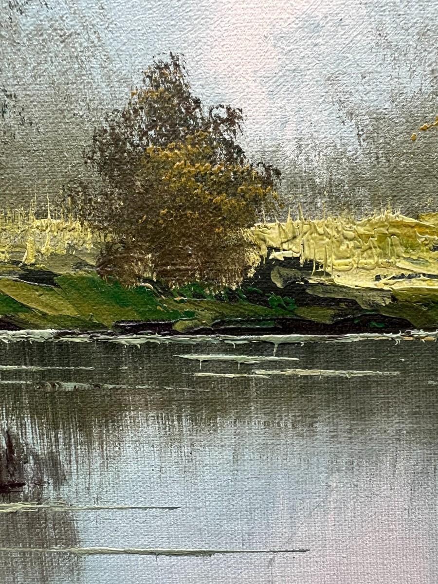 Vintage Springtime Trees Along Creek Oil Painting Artist Signed