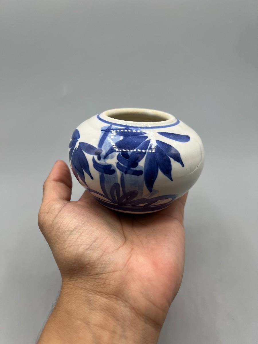 Retro Small Ceramic Squished Oriental Decorative Vase