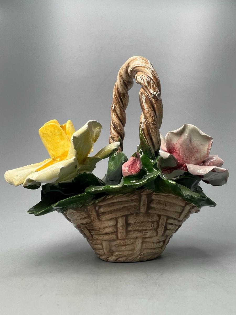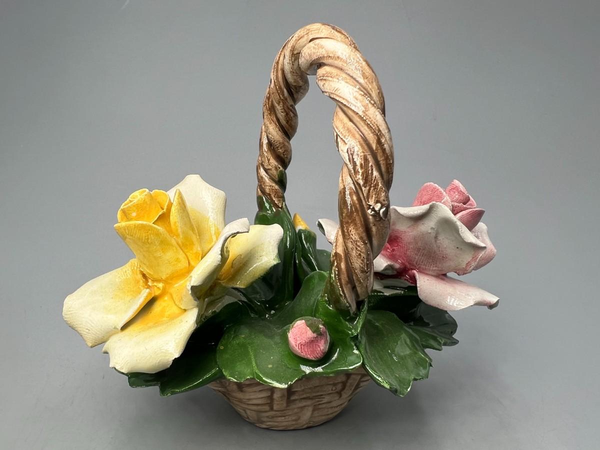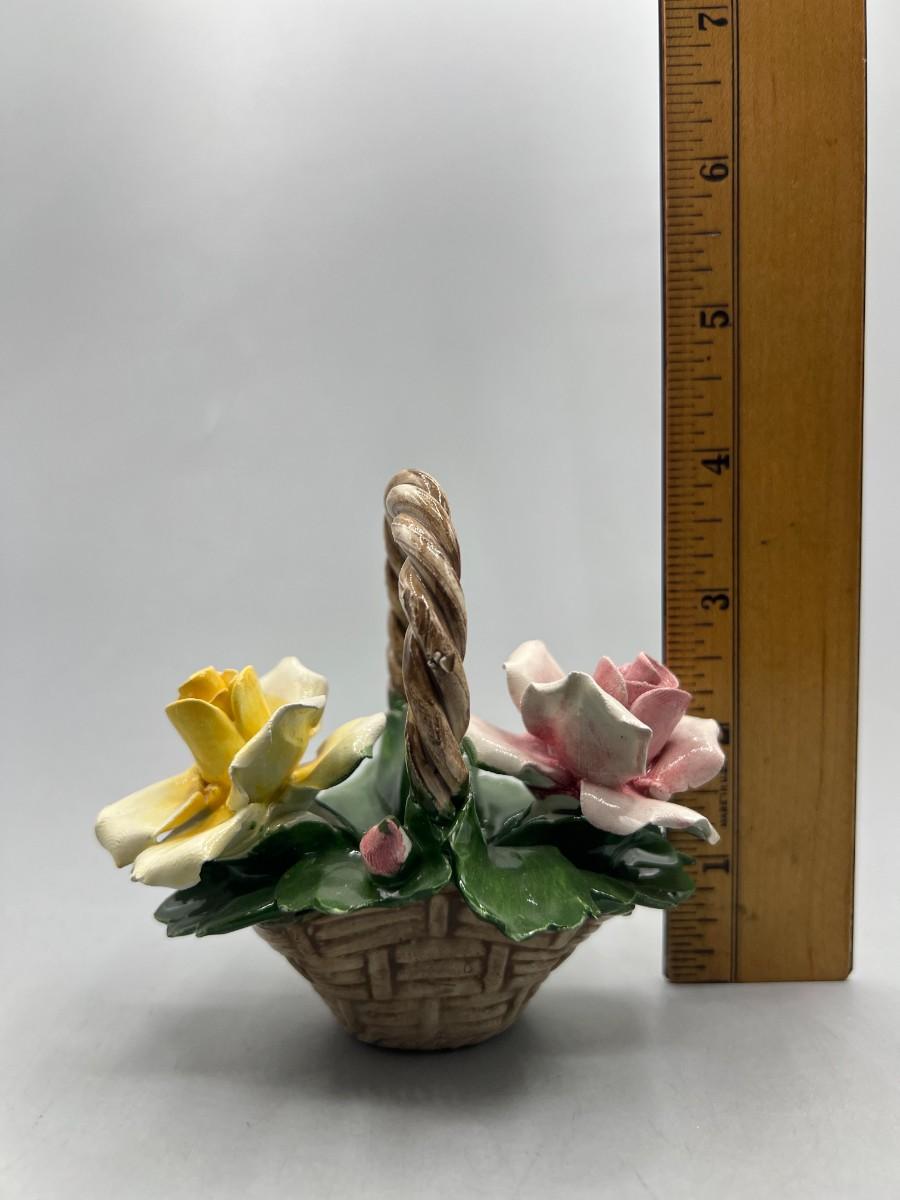 Vintage Nuova Italian Capodimonte Small Flower Basket Porcelain Art