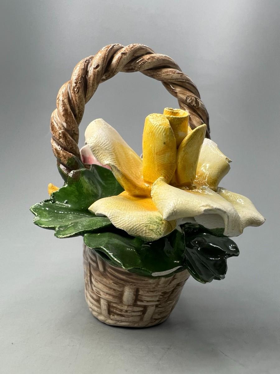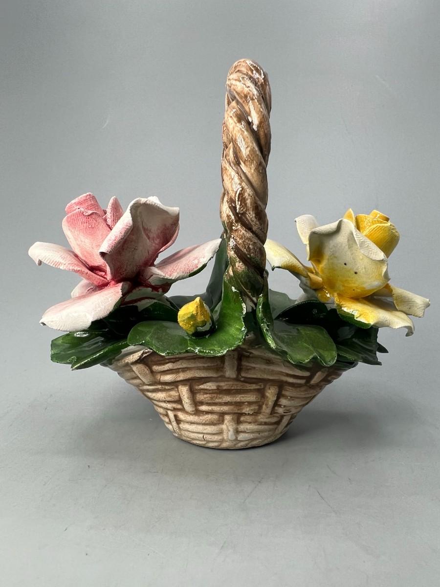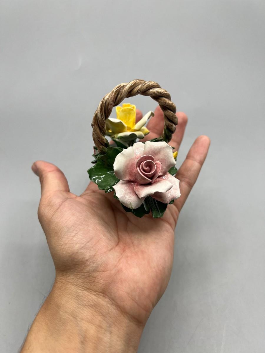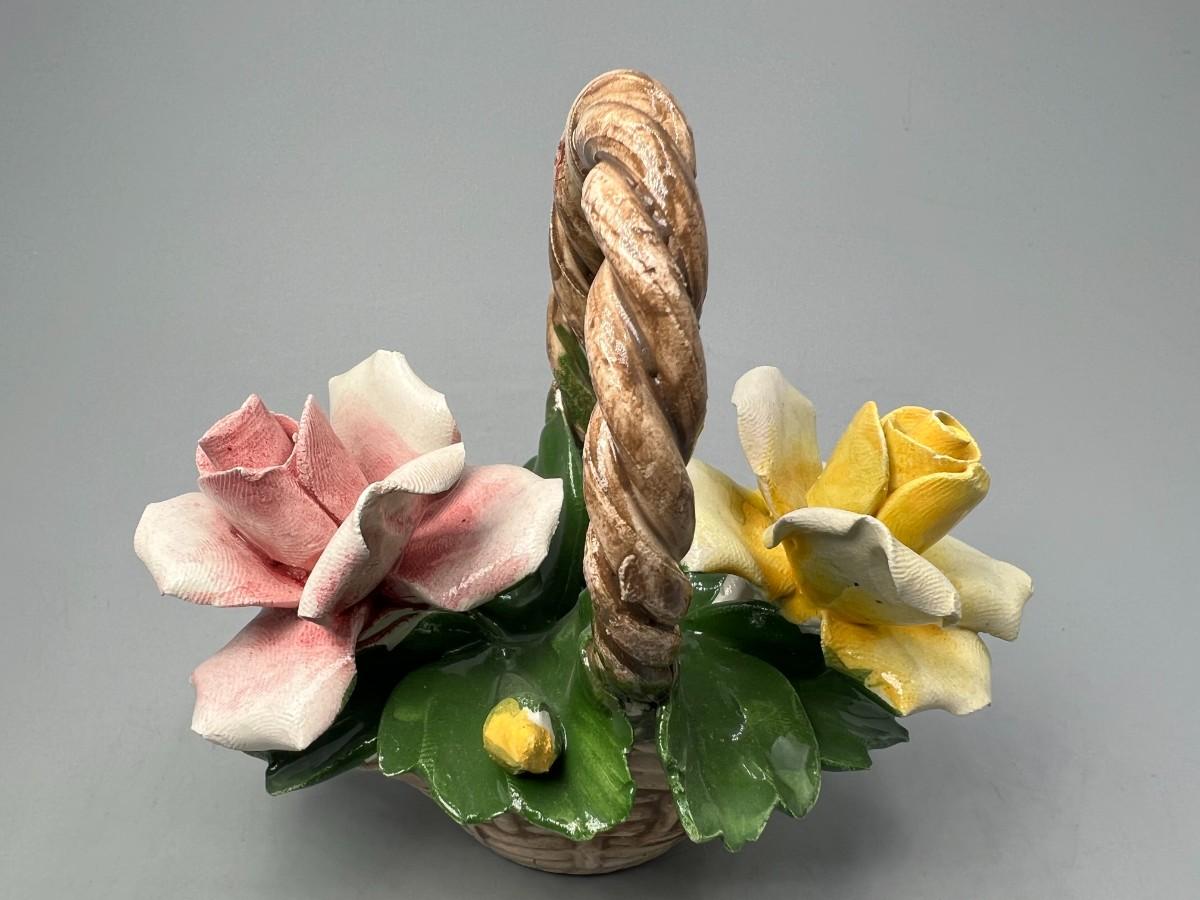 Vintage Nuova Italian Capodimonte Small Flower Basket Porcelain Art