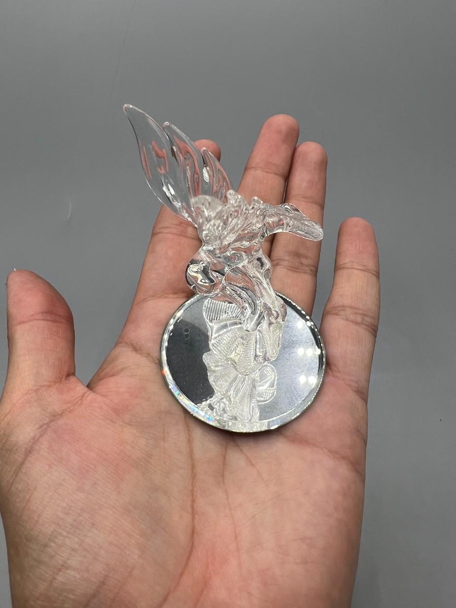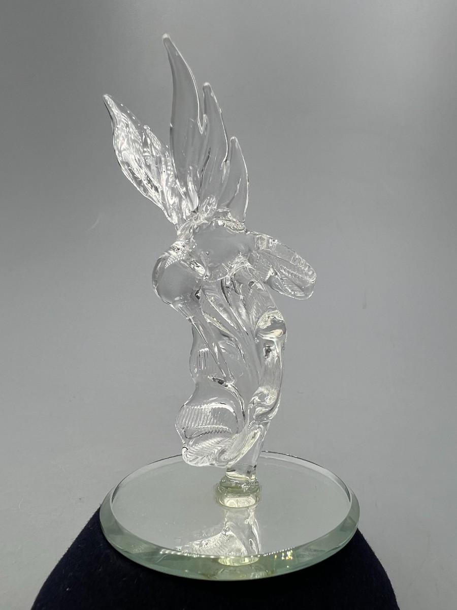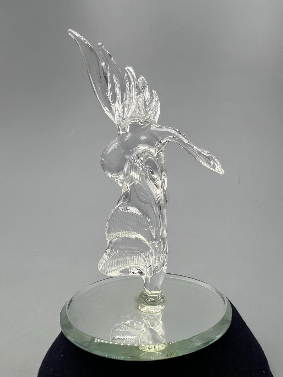 Small Handmade Sculptural Glass Hummingbird & Hibiscus Flower