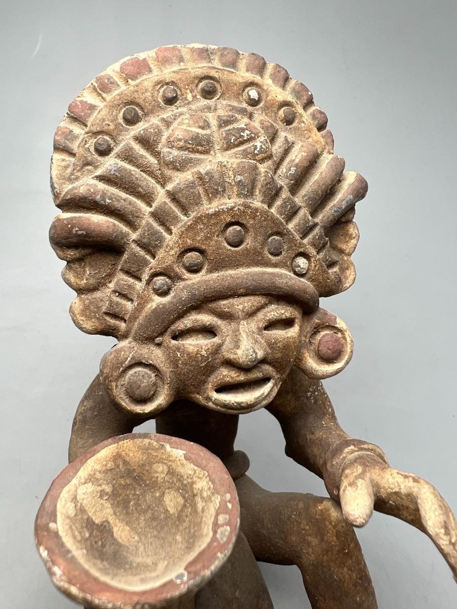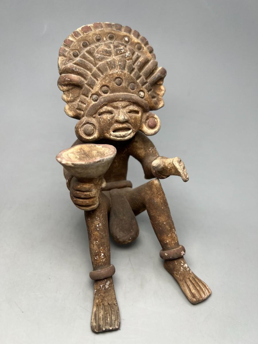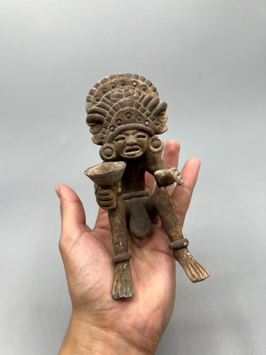 Vintage Clay Aztec Mayan Religiously Dressed Chalice Artifact Ornamental Souvenir Figurine