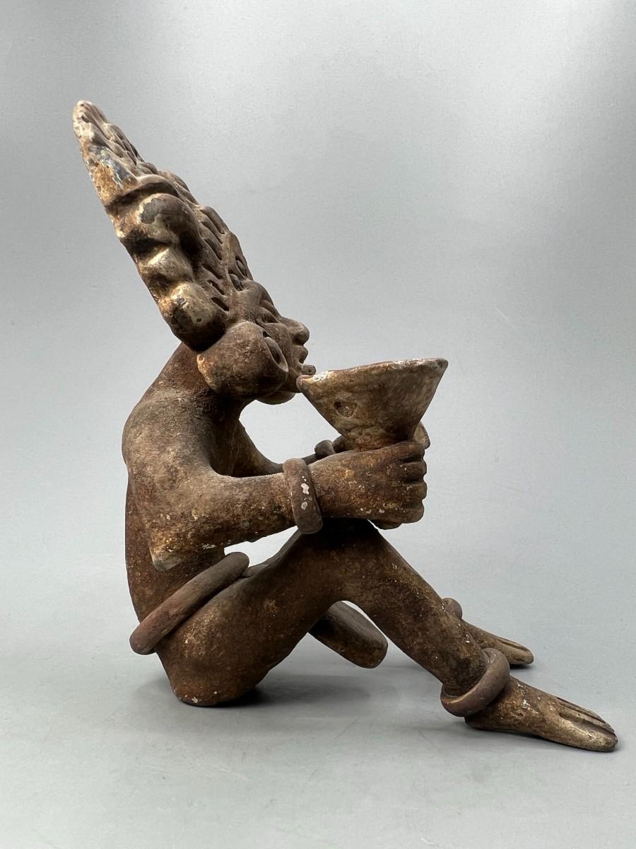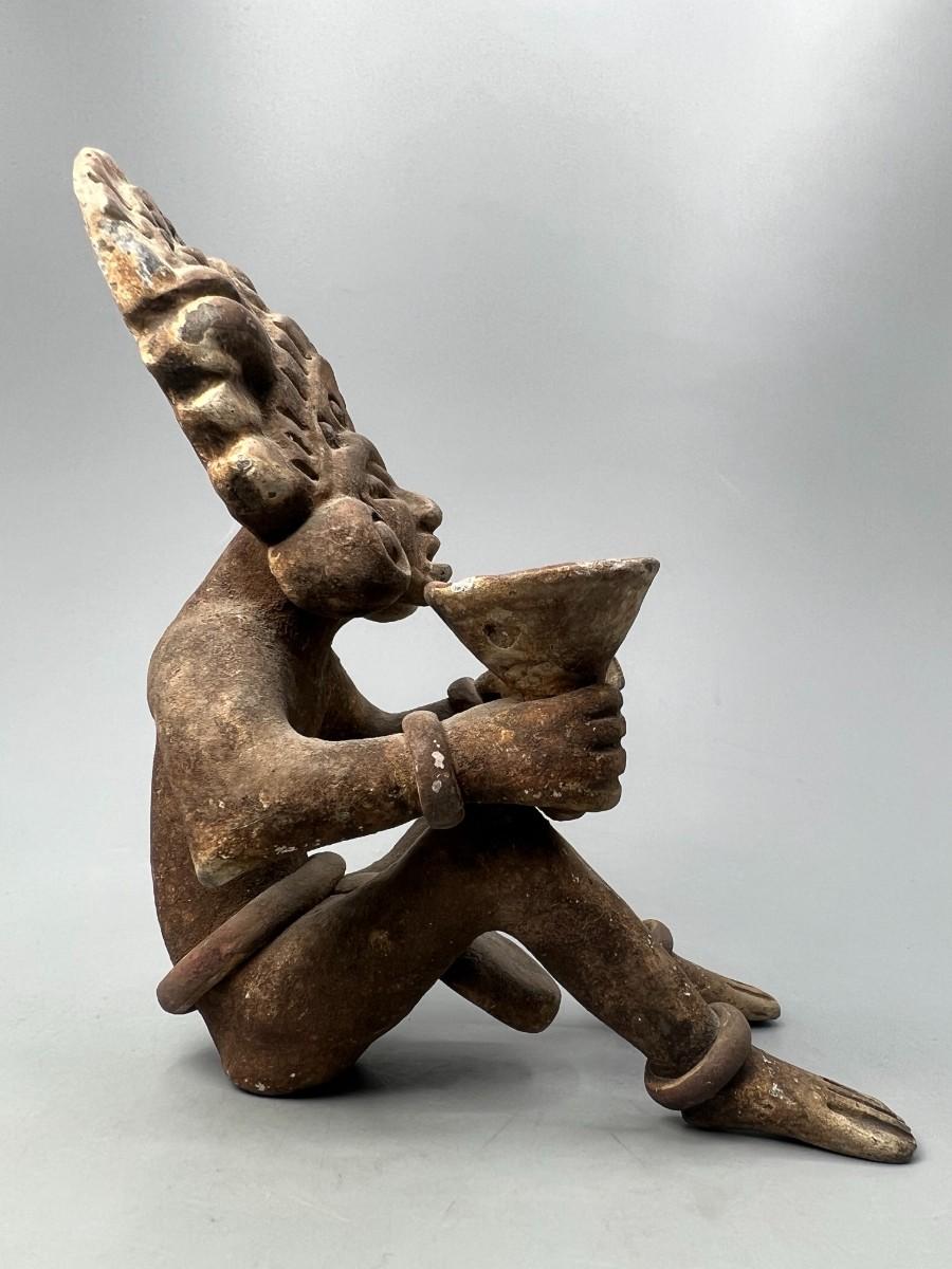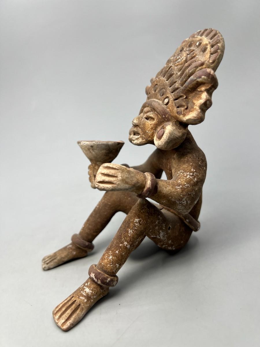 Vintage Clay Aztec Mayan Religiously Dressed Chalice Artifact Ornamental Souvenir Figurine