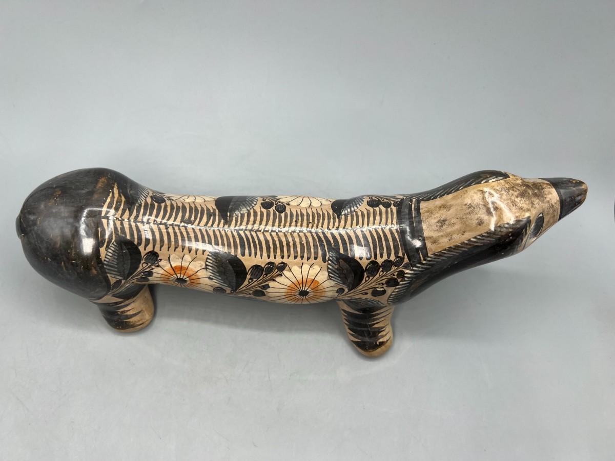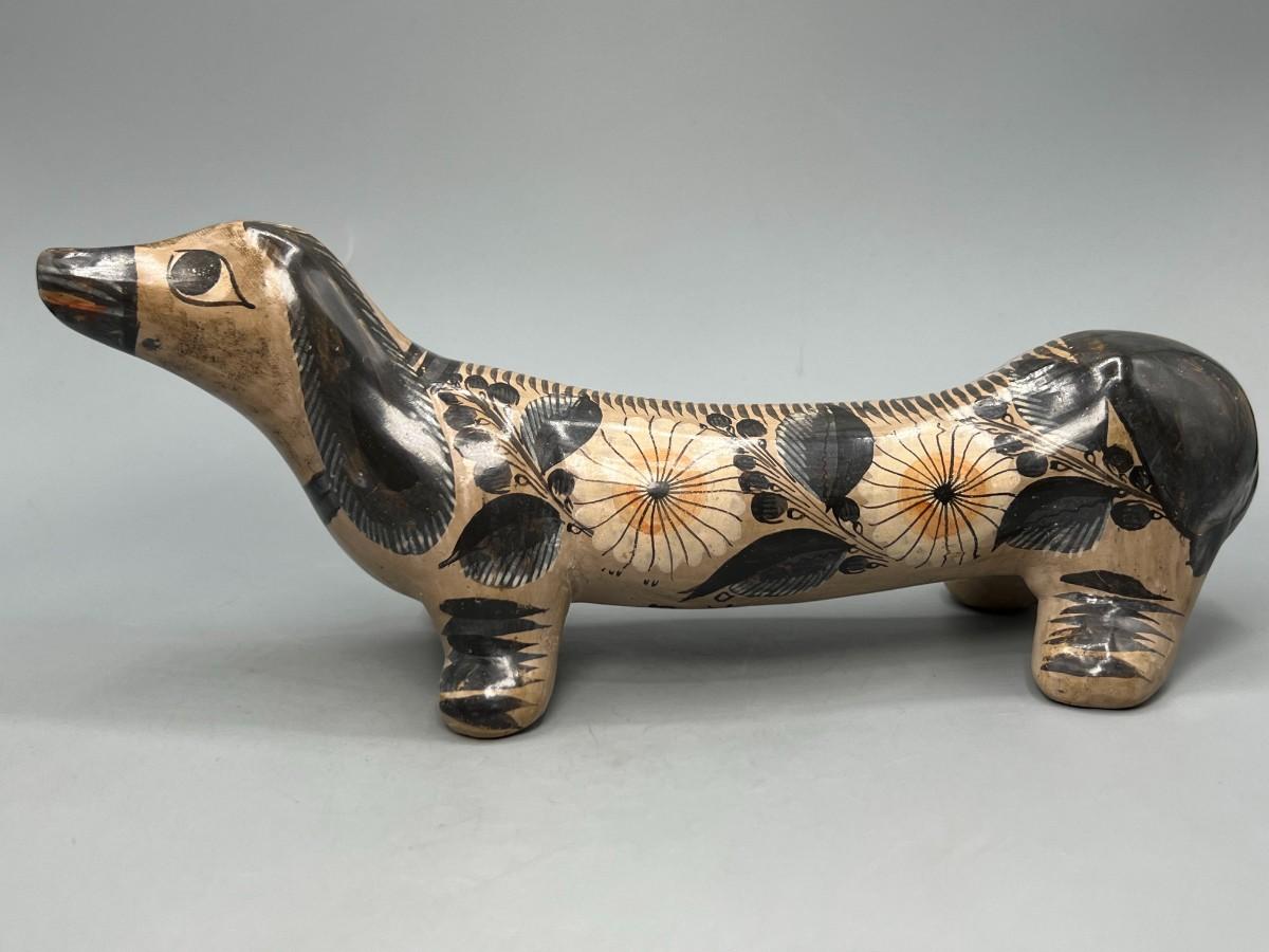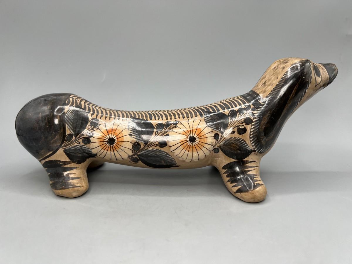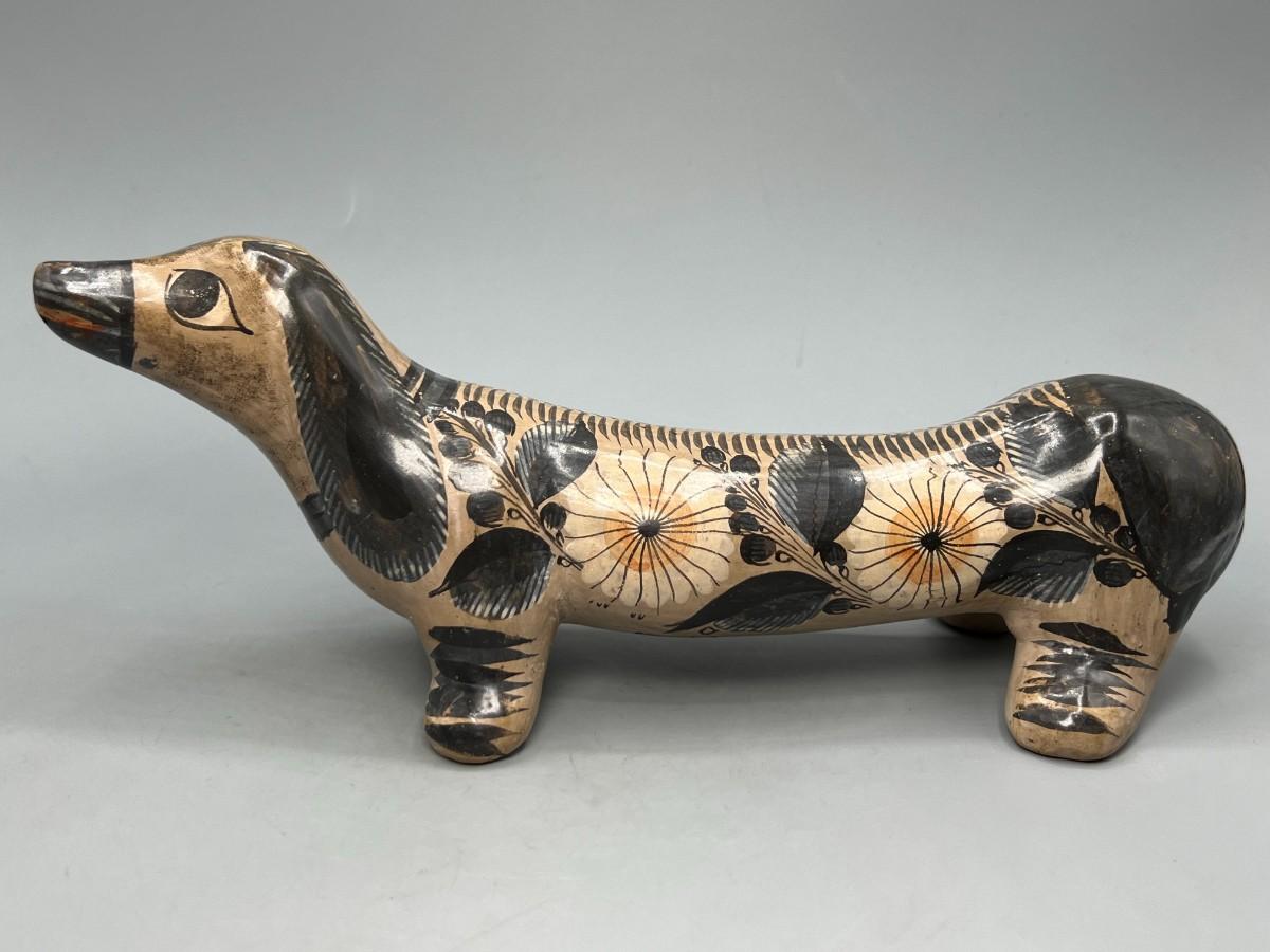 Vintage Solis Mexico Handmade Souvenir Figurine Folk Art Floral Weiner Dog Animal