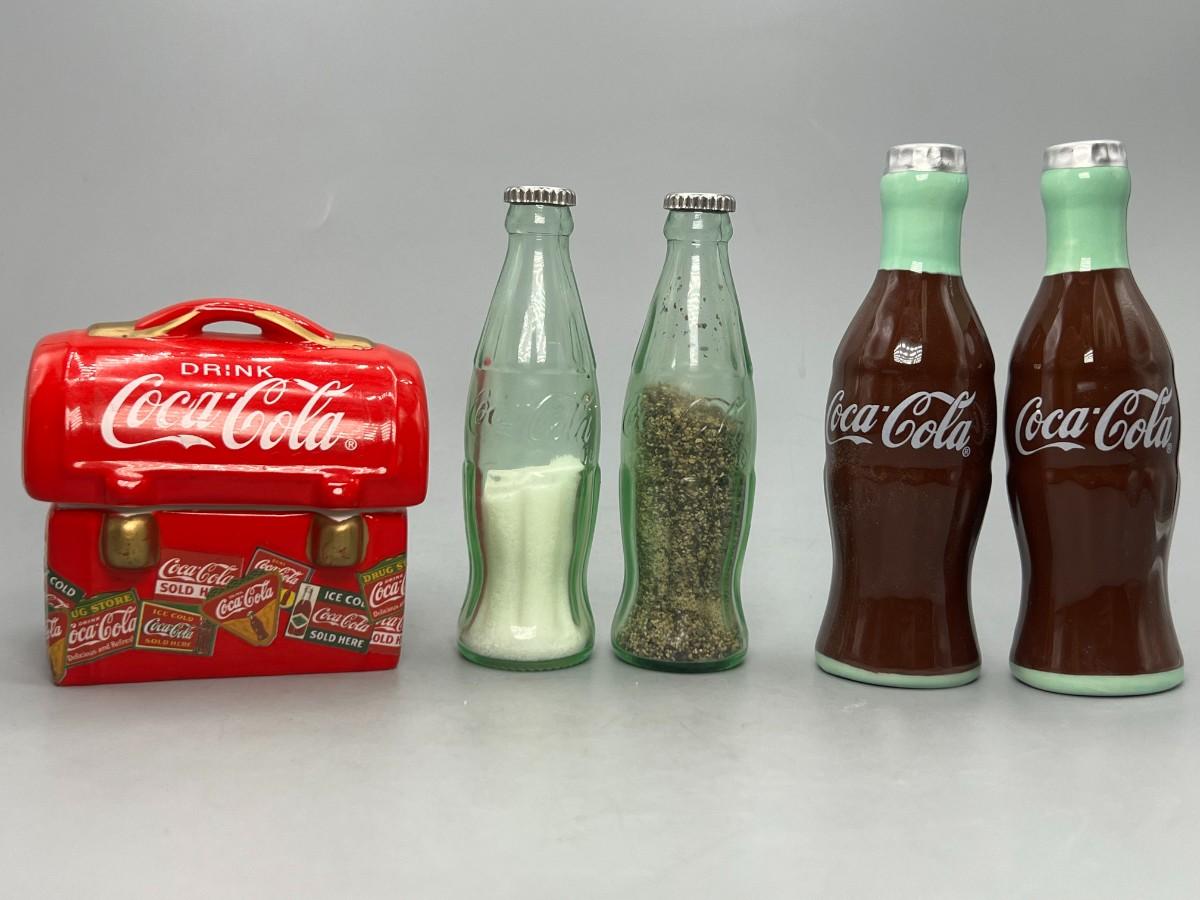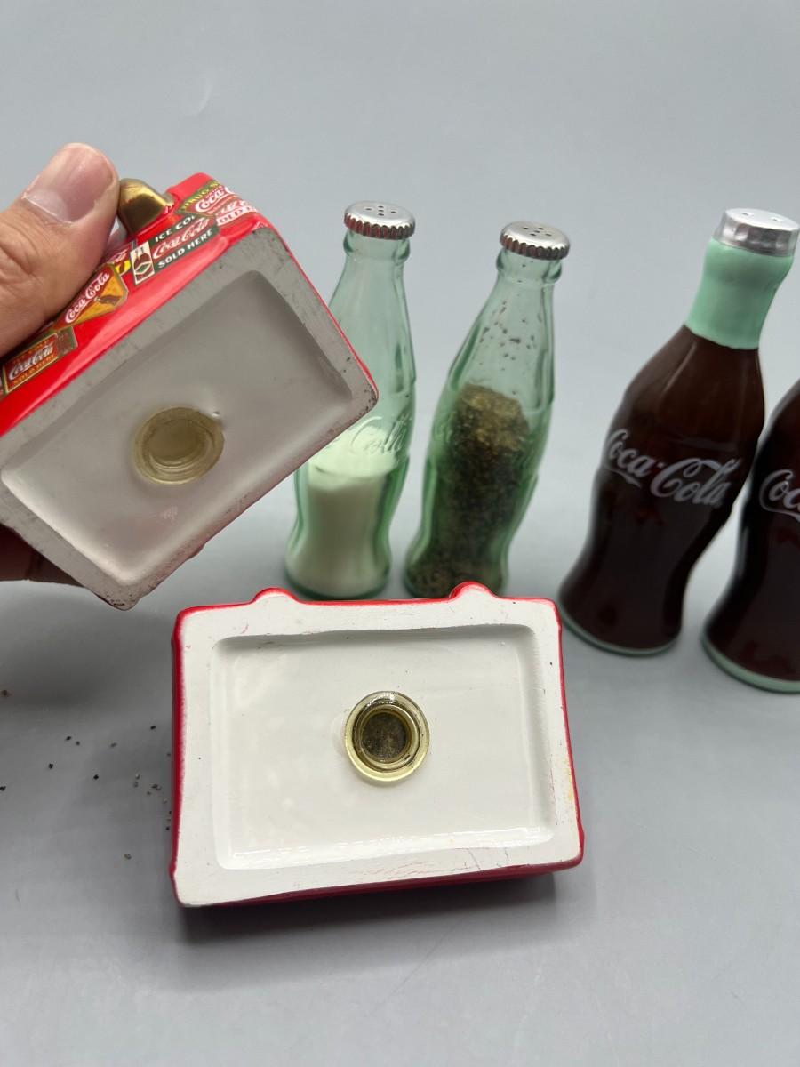 Lot of Collectible Novelty Coca-Cola Bottle Cooler Salt. & Pepper Shakers