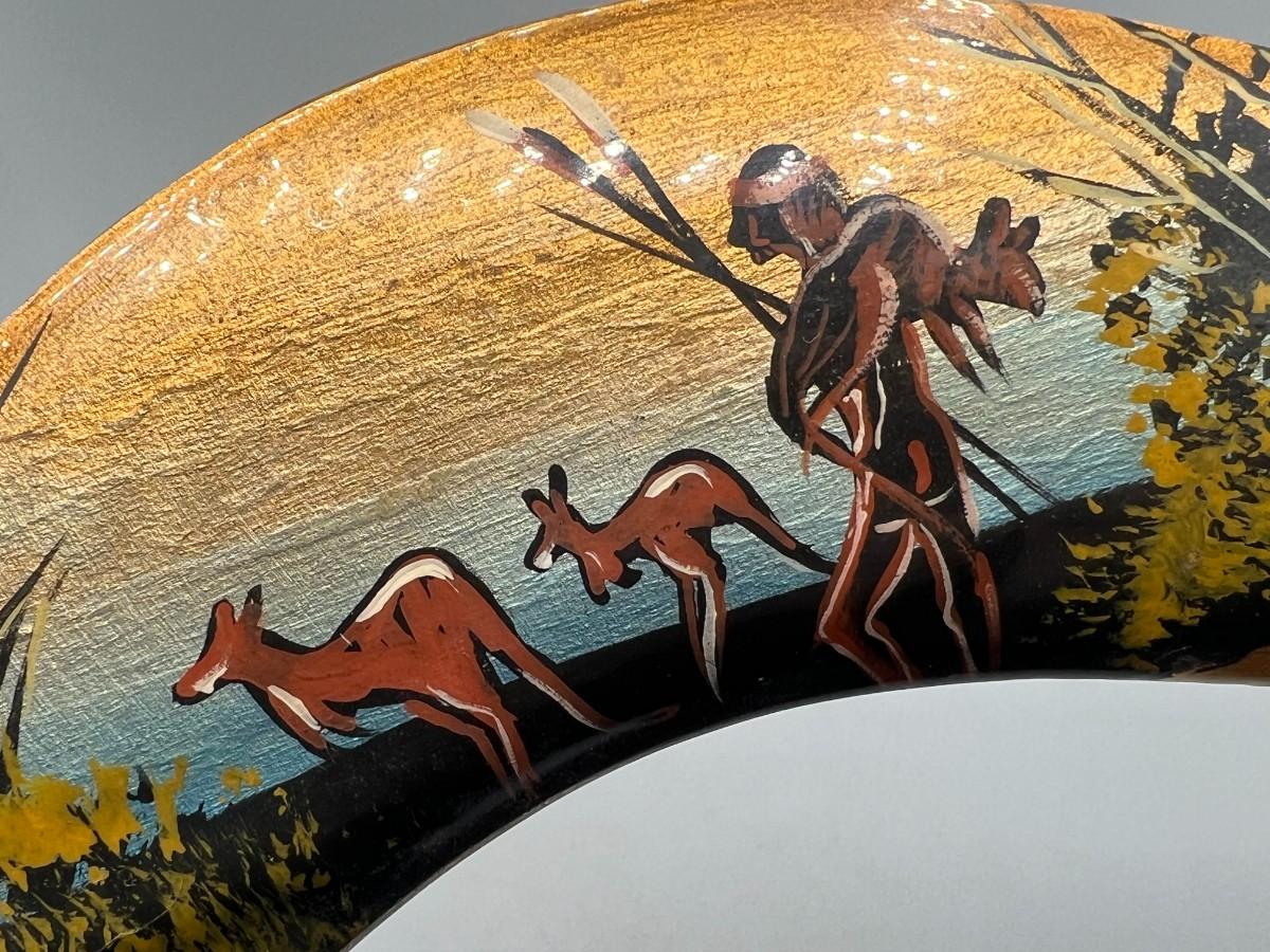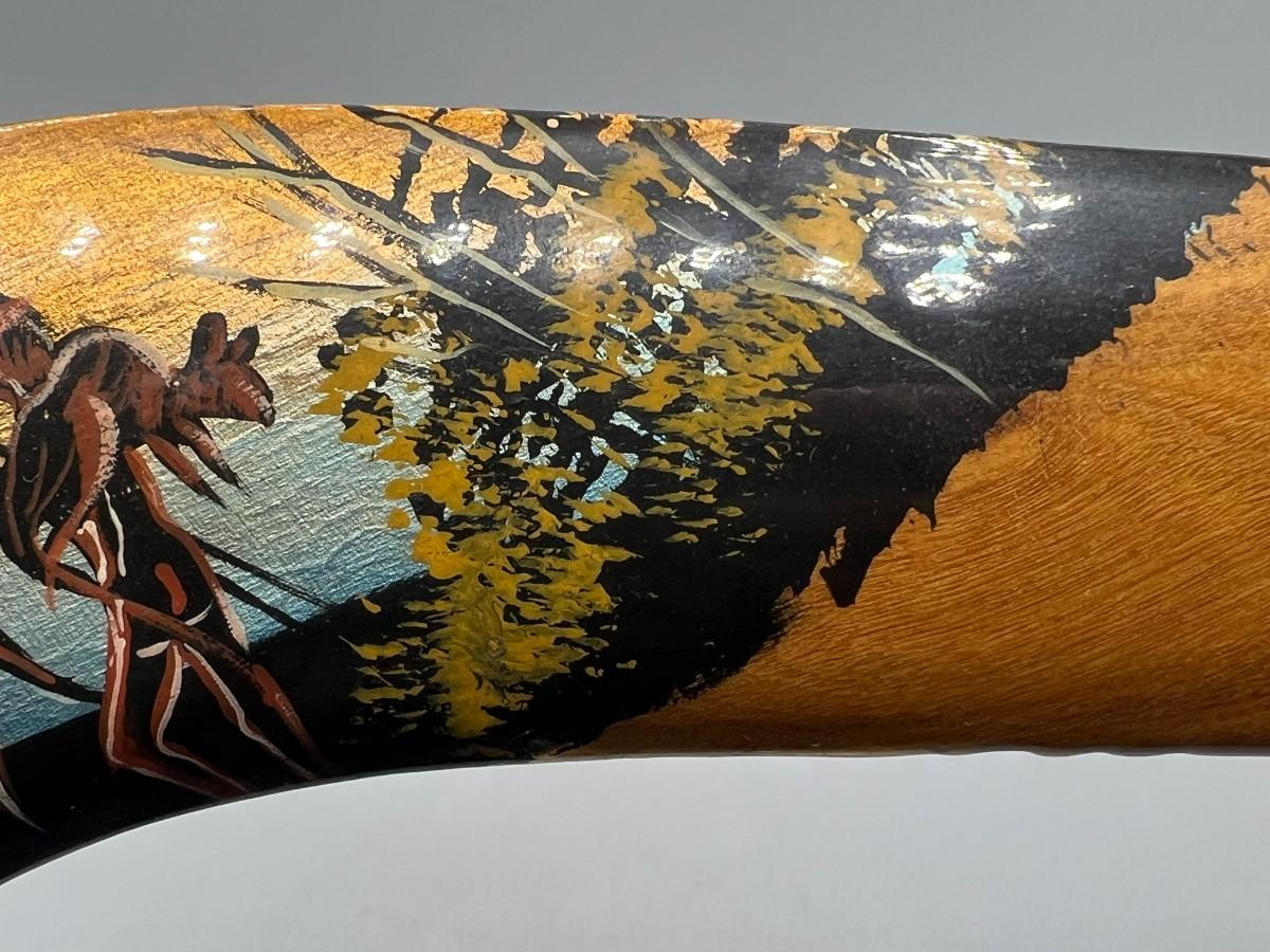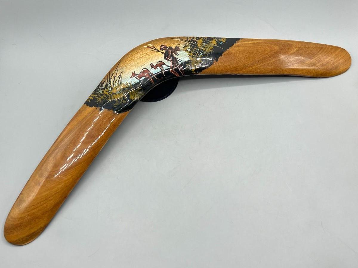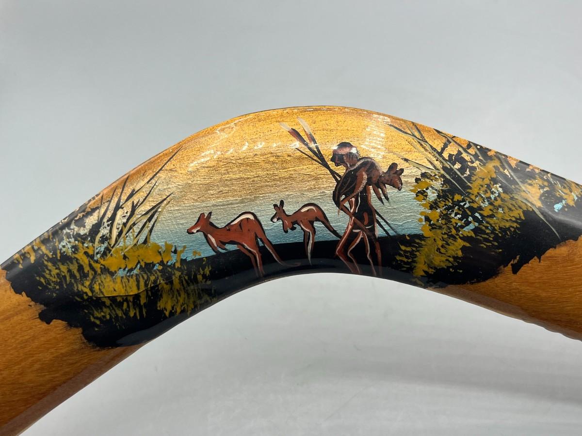 Collectible Painted Aboriginal Australian with Kangaroos Wooden Boomerang
