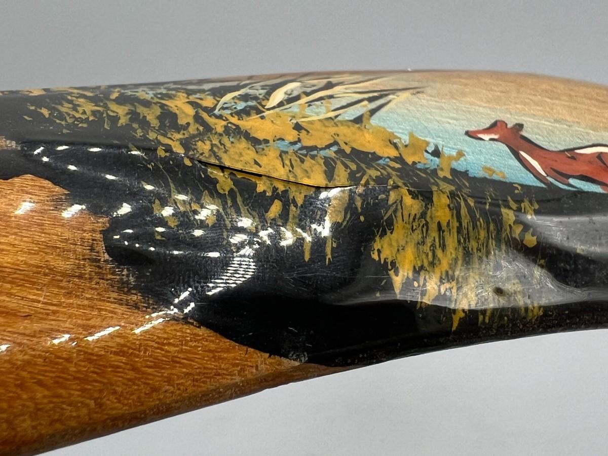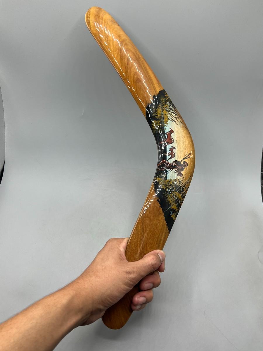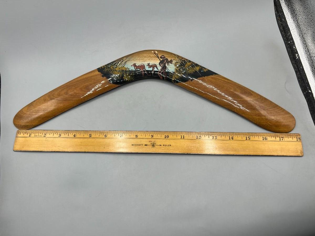 There is a part of the boomerang where the wood is kind of lifting. There is no significant damage and in good condition. Check pictures for more detail and for sizing.