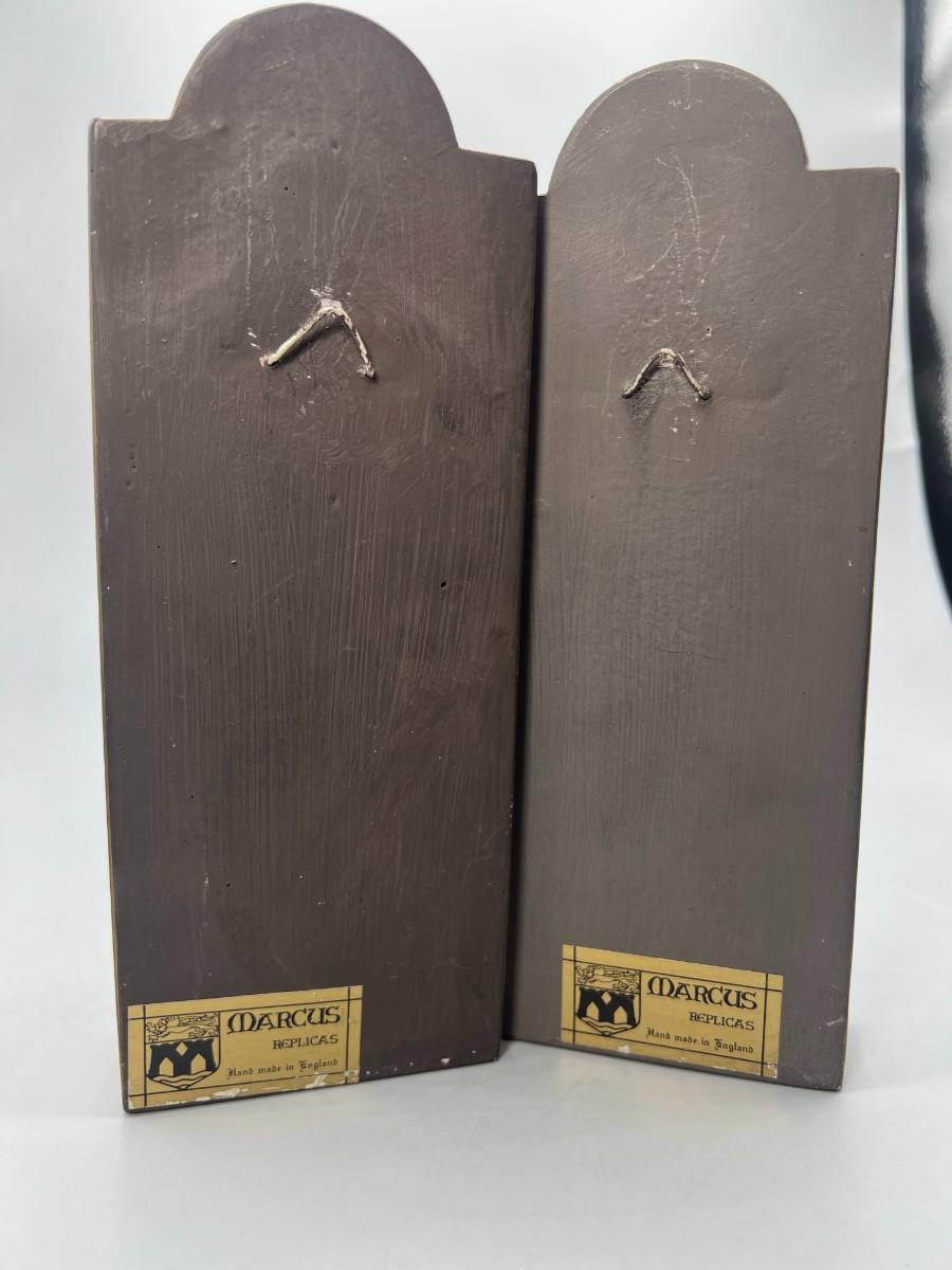 Vintage Pair of Marcus Replicas Warrior Knights 3D Chalkware Wall Plaques