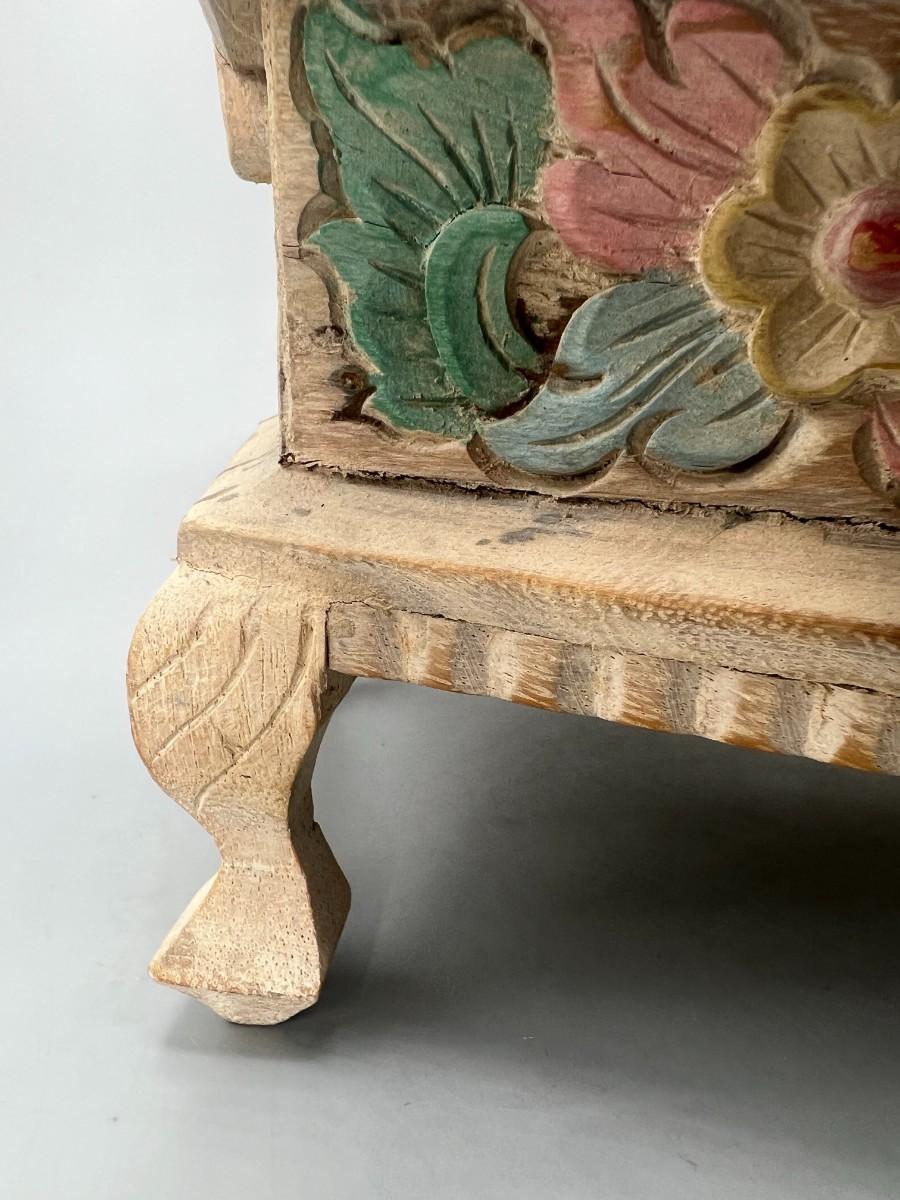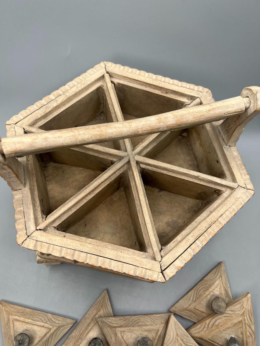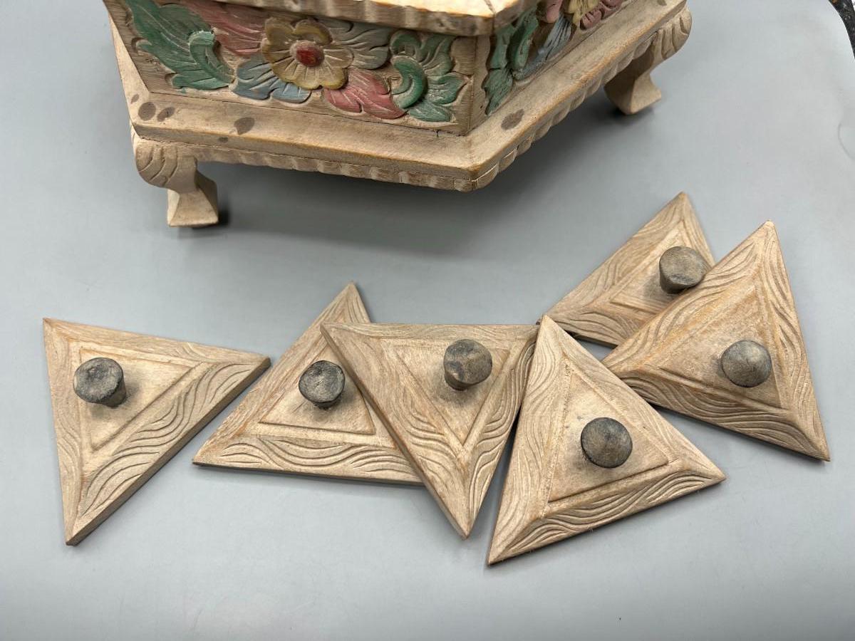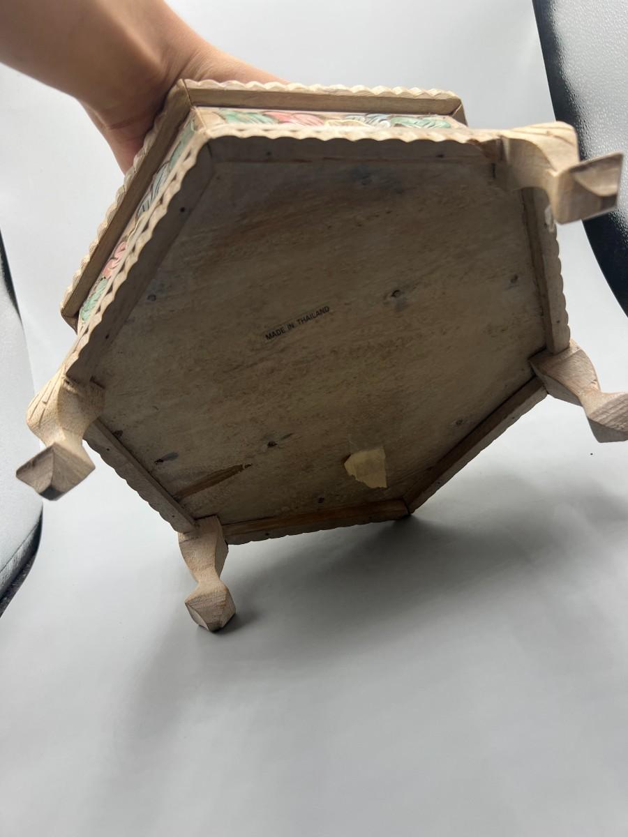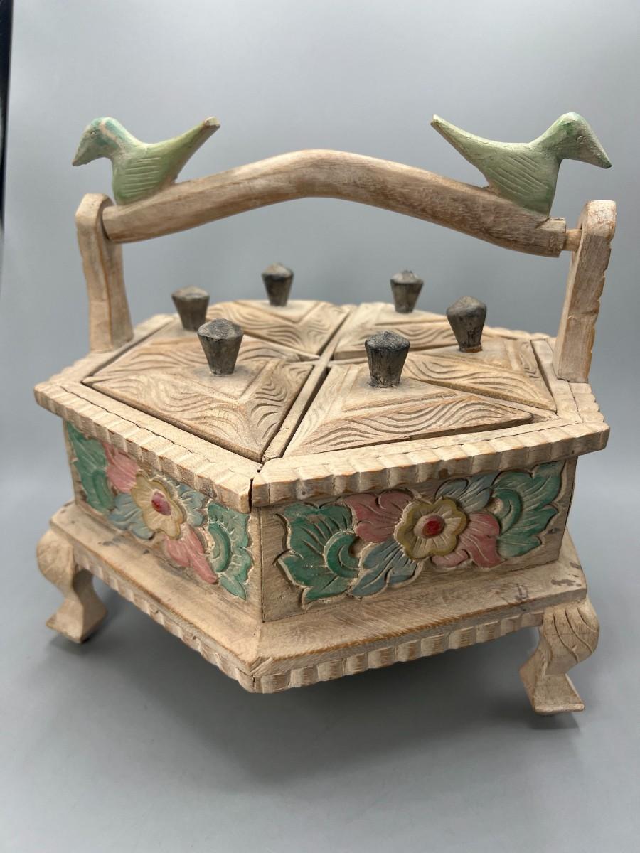 Carved Wooden Hexagon Flower Motif Divided Lidded Tea Ingredient Organizer