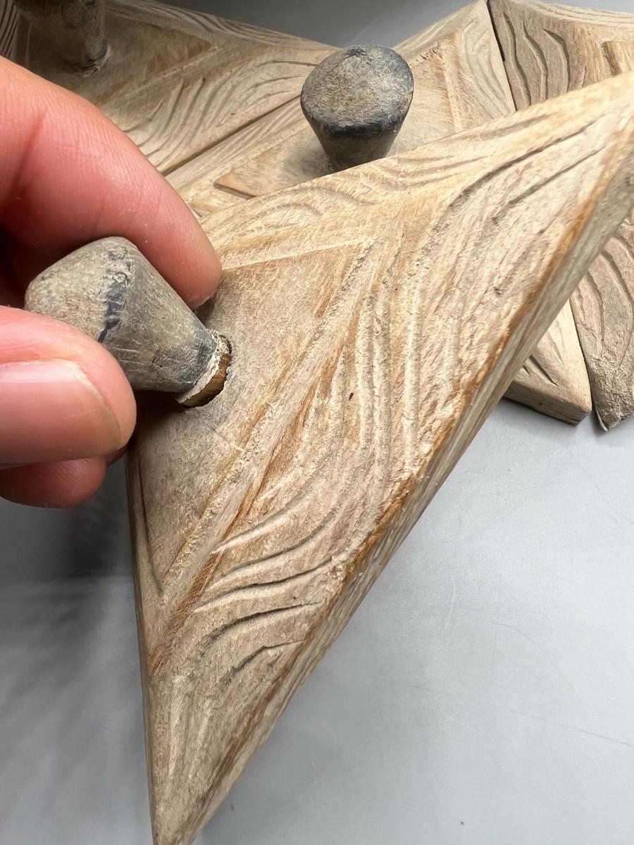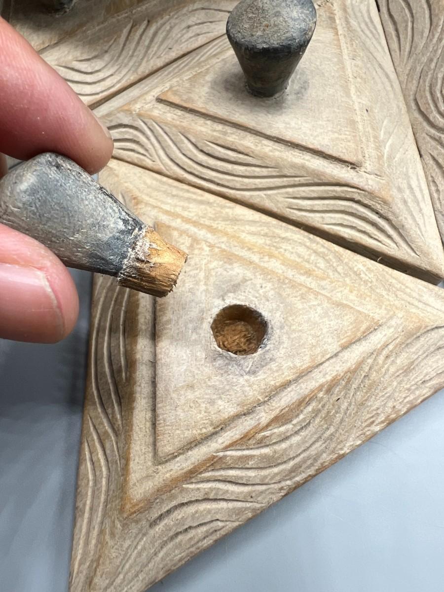There is no damage to the wood and is in good collectible or useable condition. Check pictures for more details and sizing.