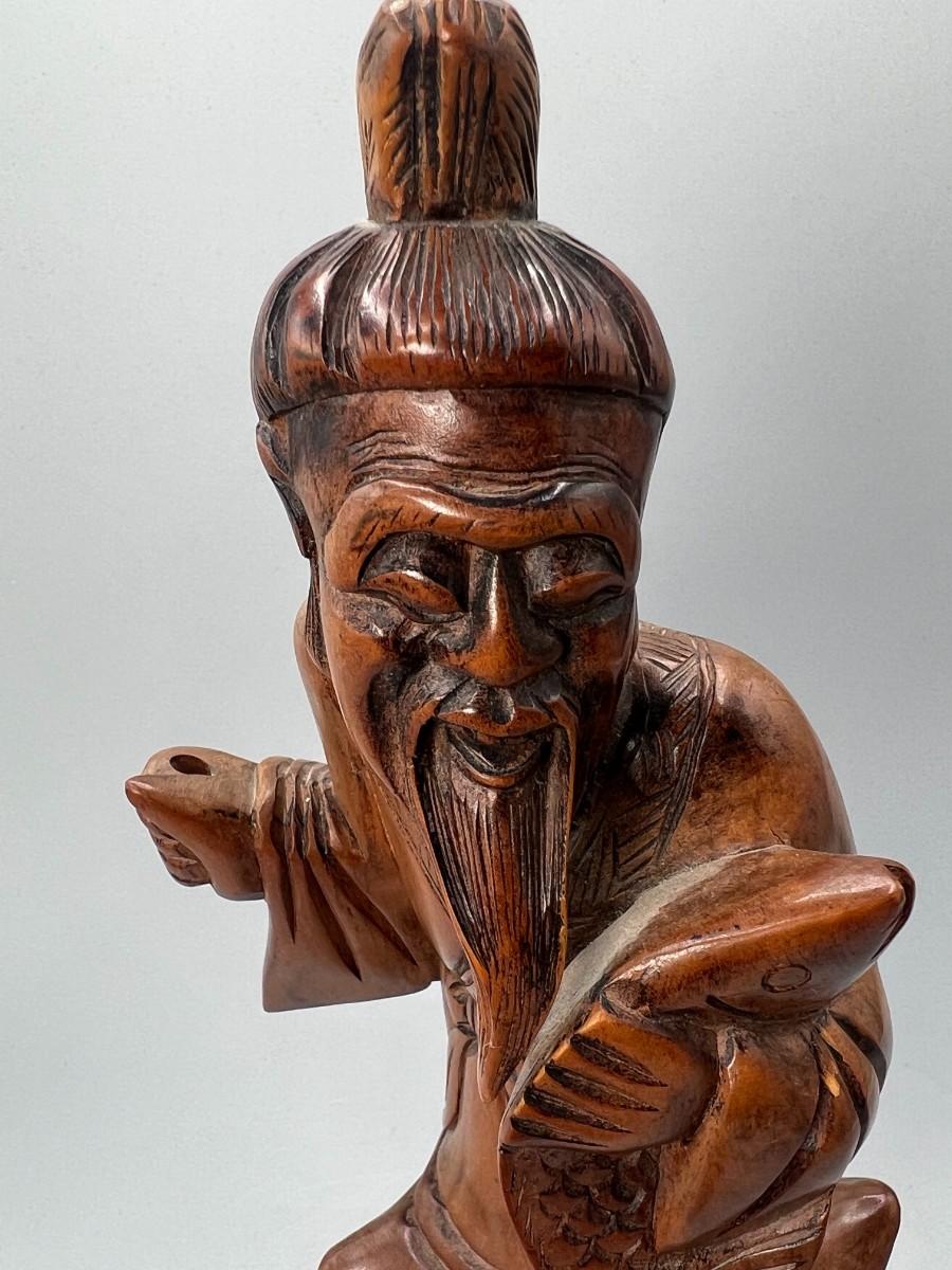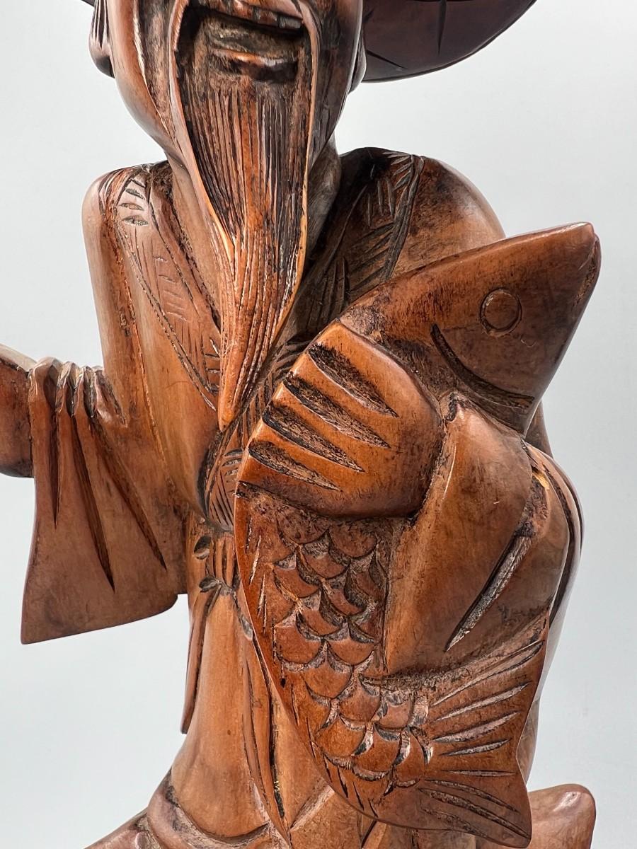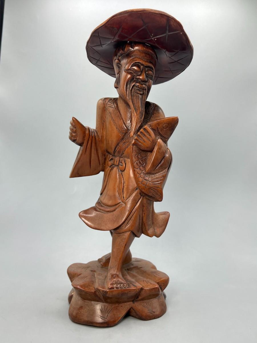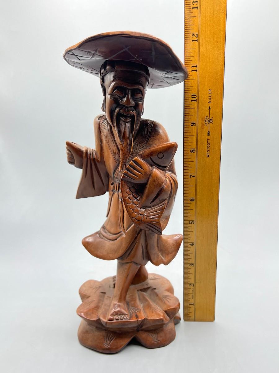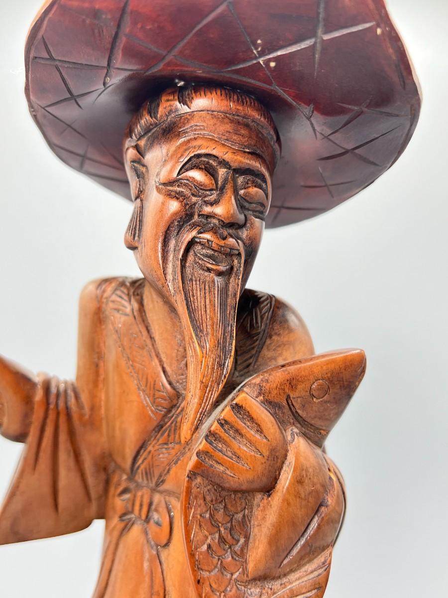 Vintage Carved Wooden Oriental Asian Elder Fisherman Sculpture Figure