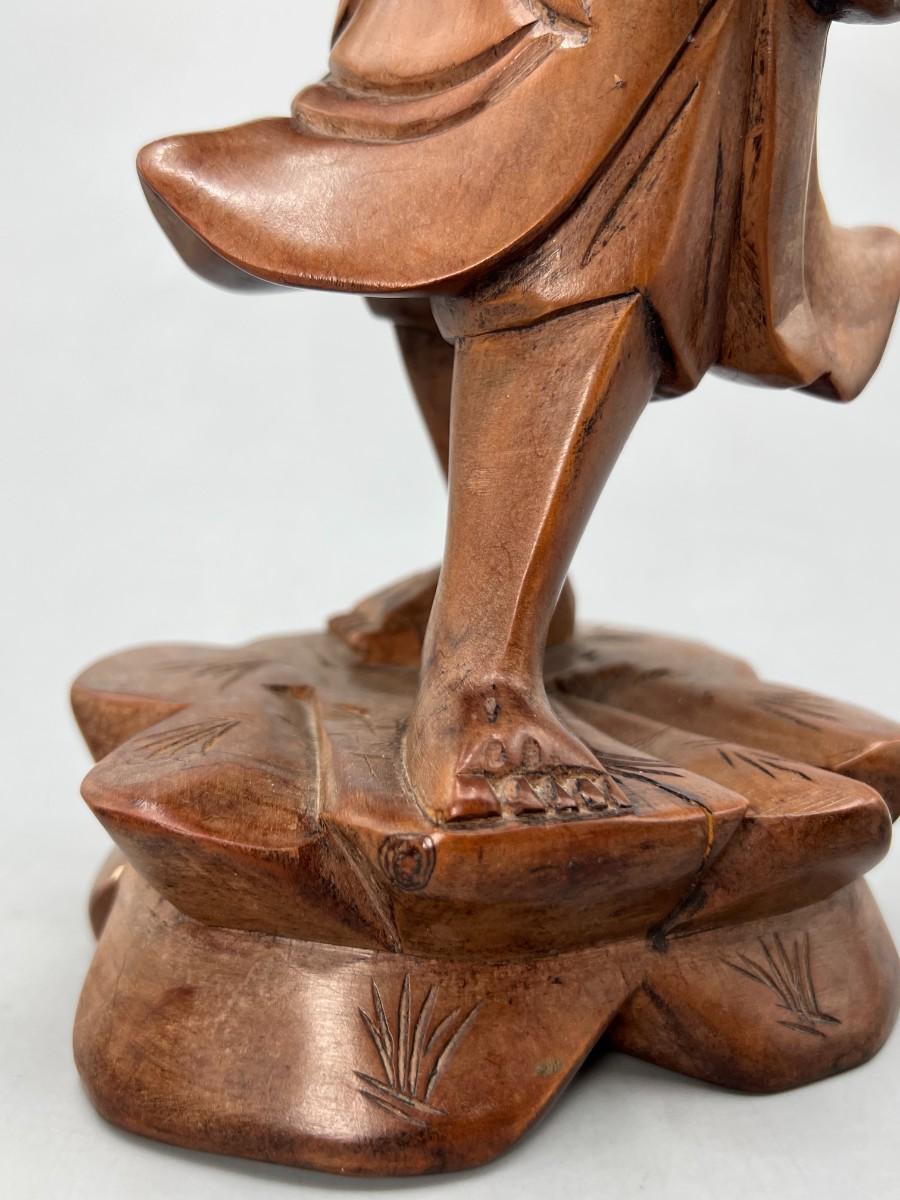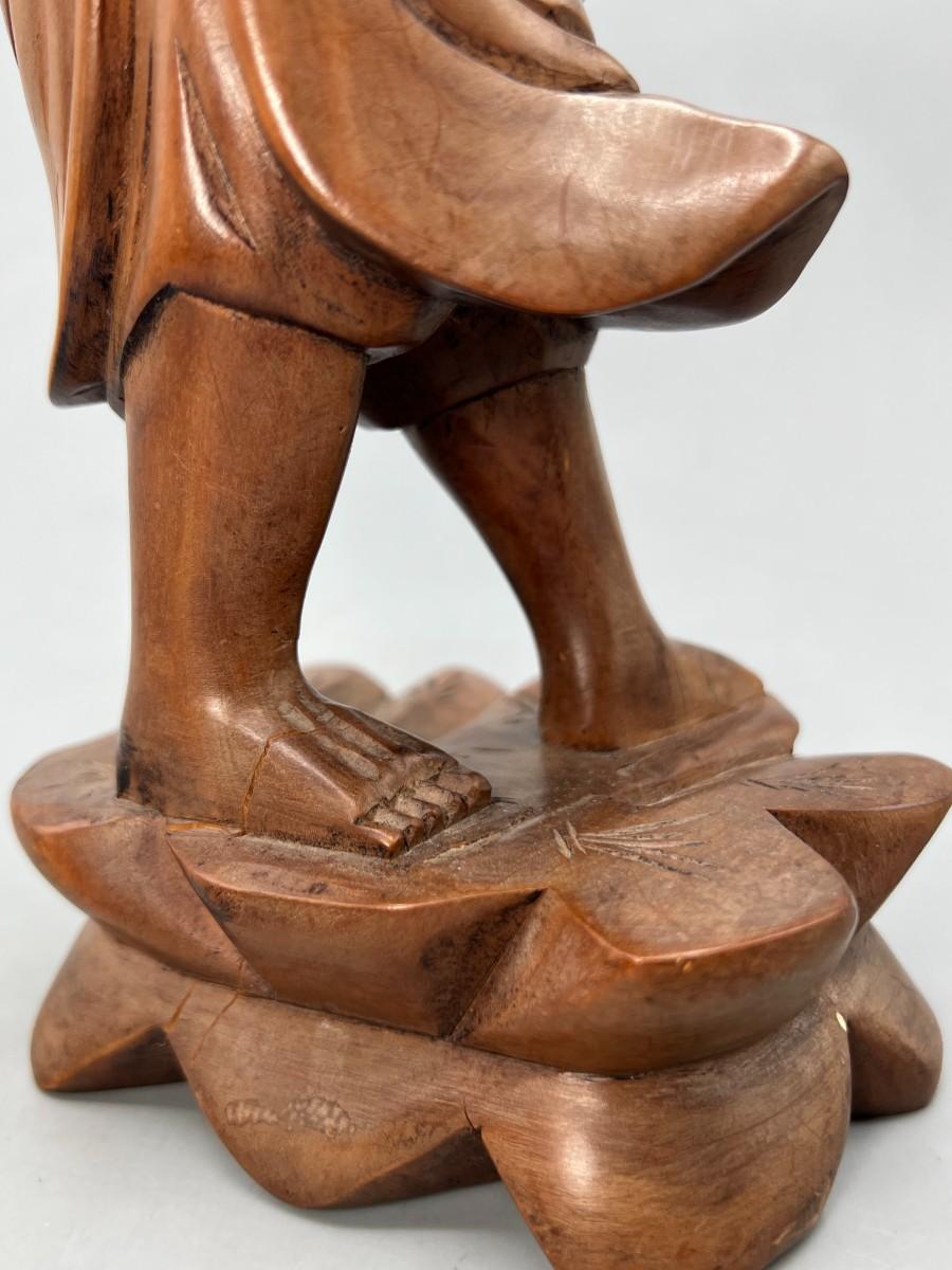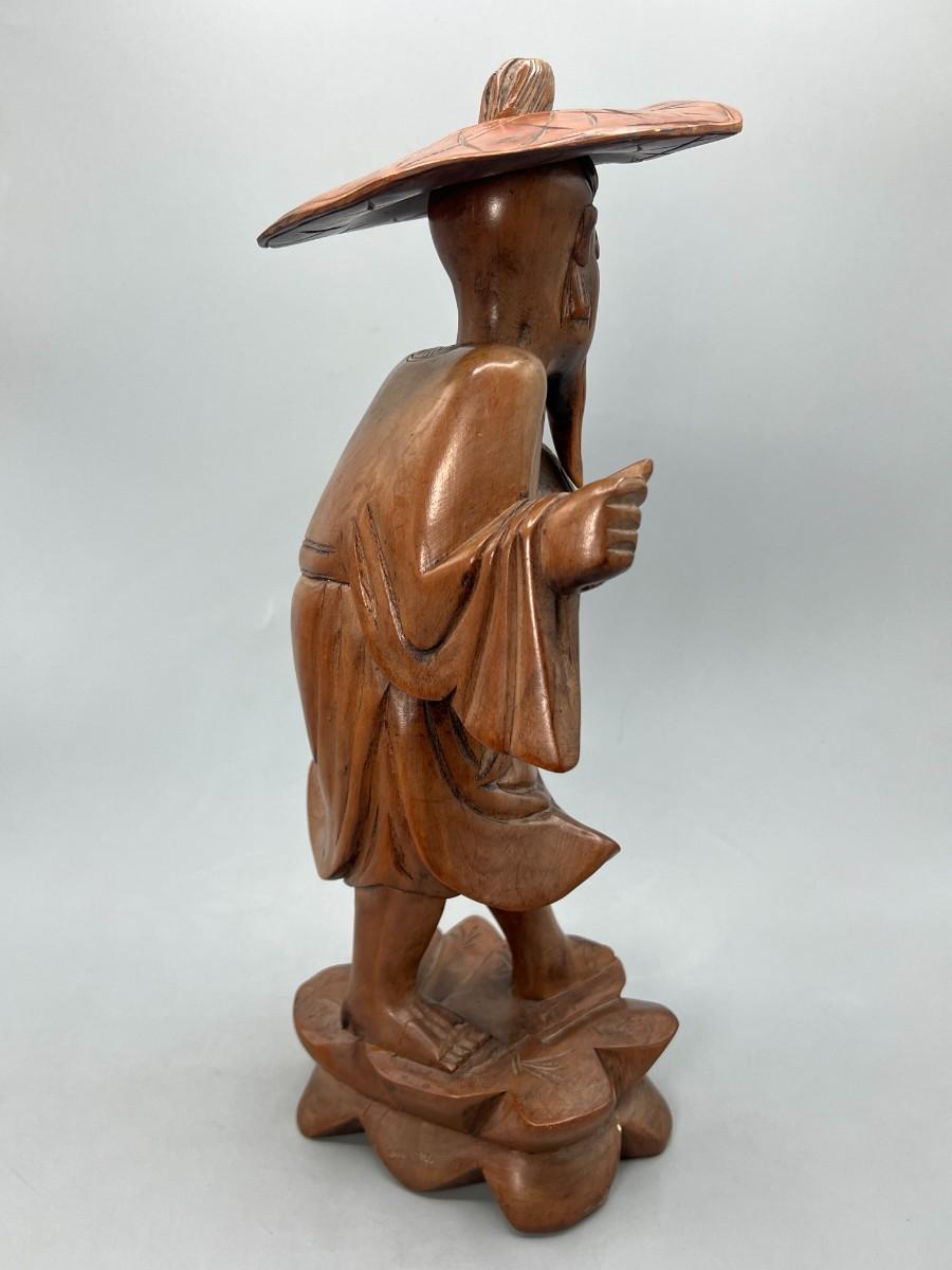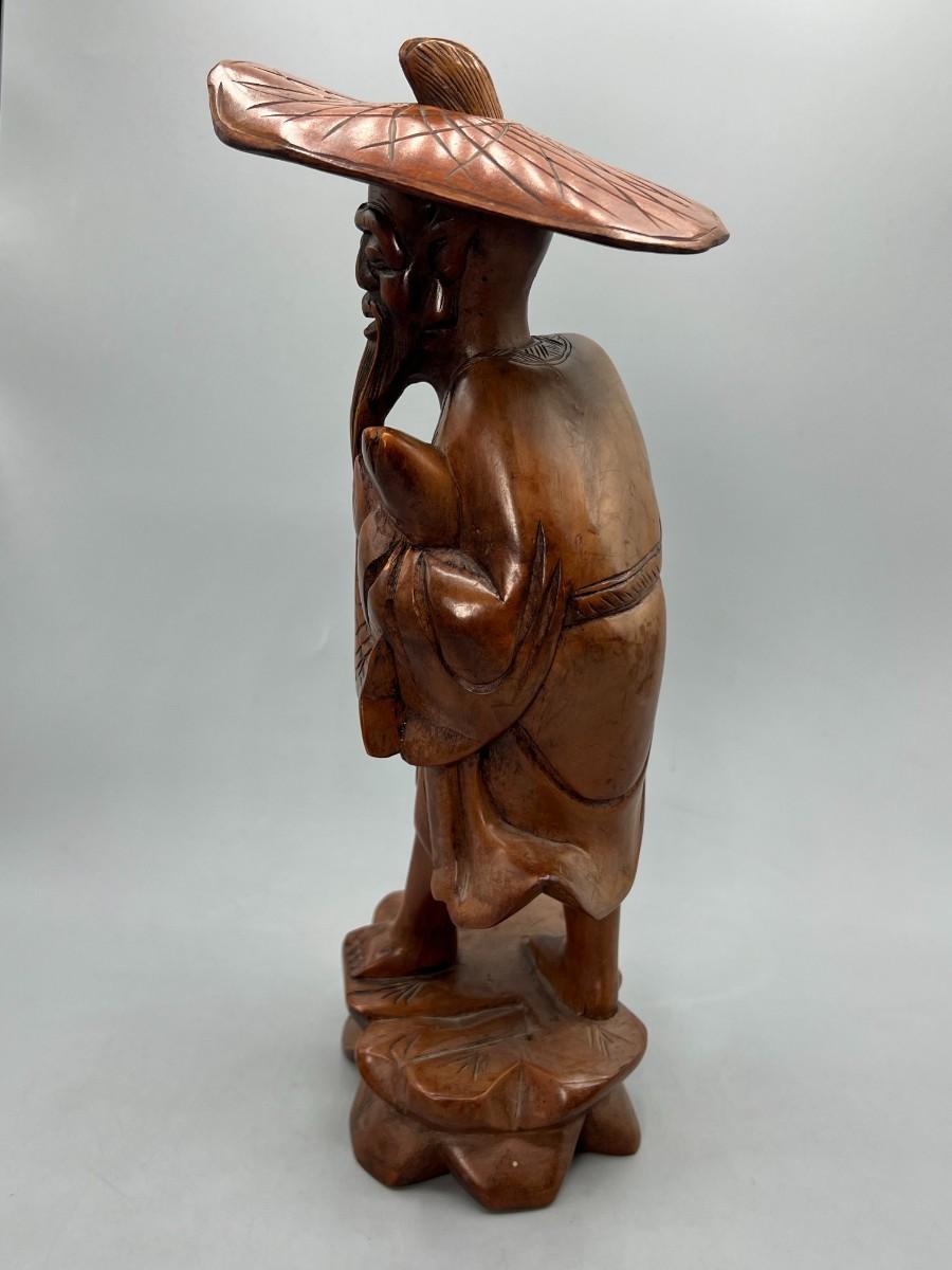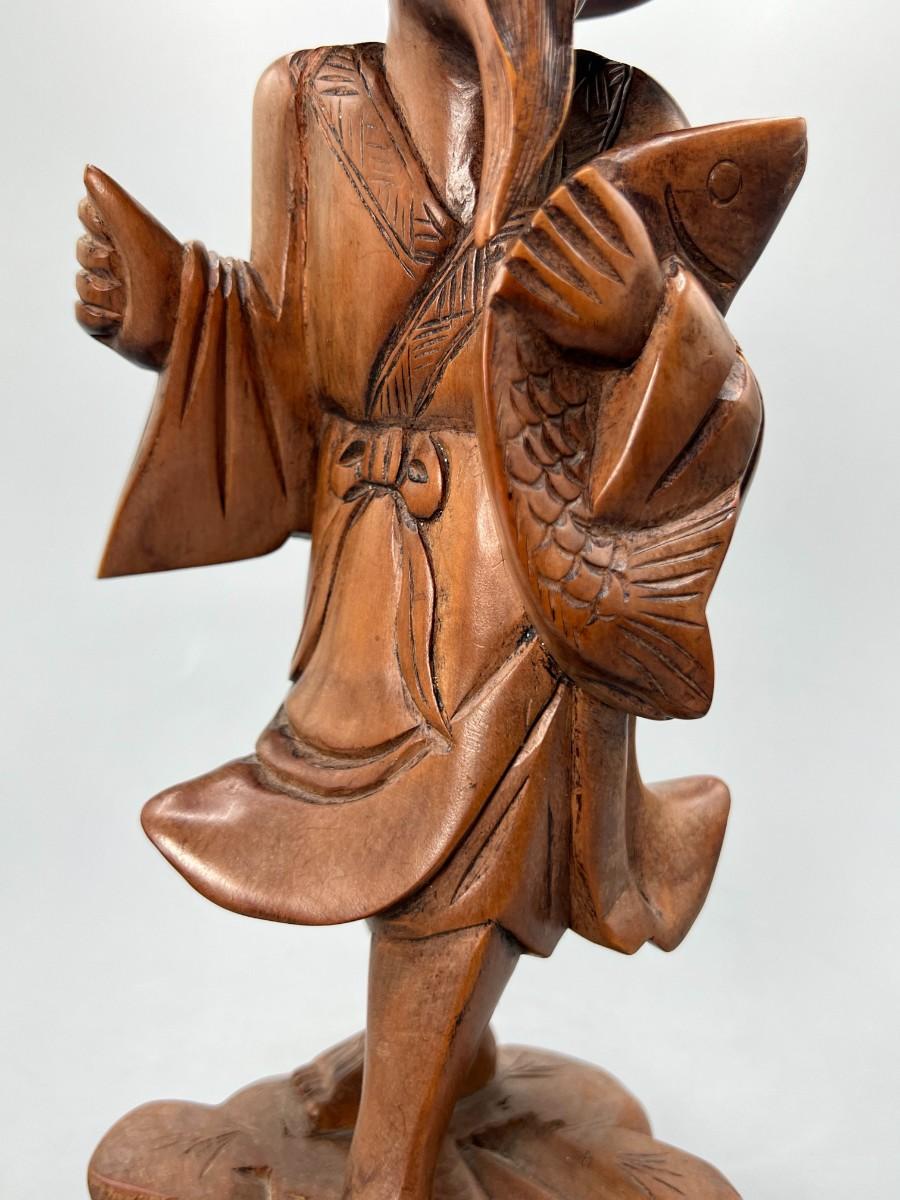 Vintage Carved Wooden Oriental Asian Elder Fisherman Sculpture Figure