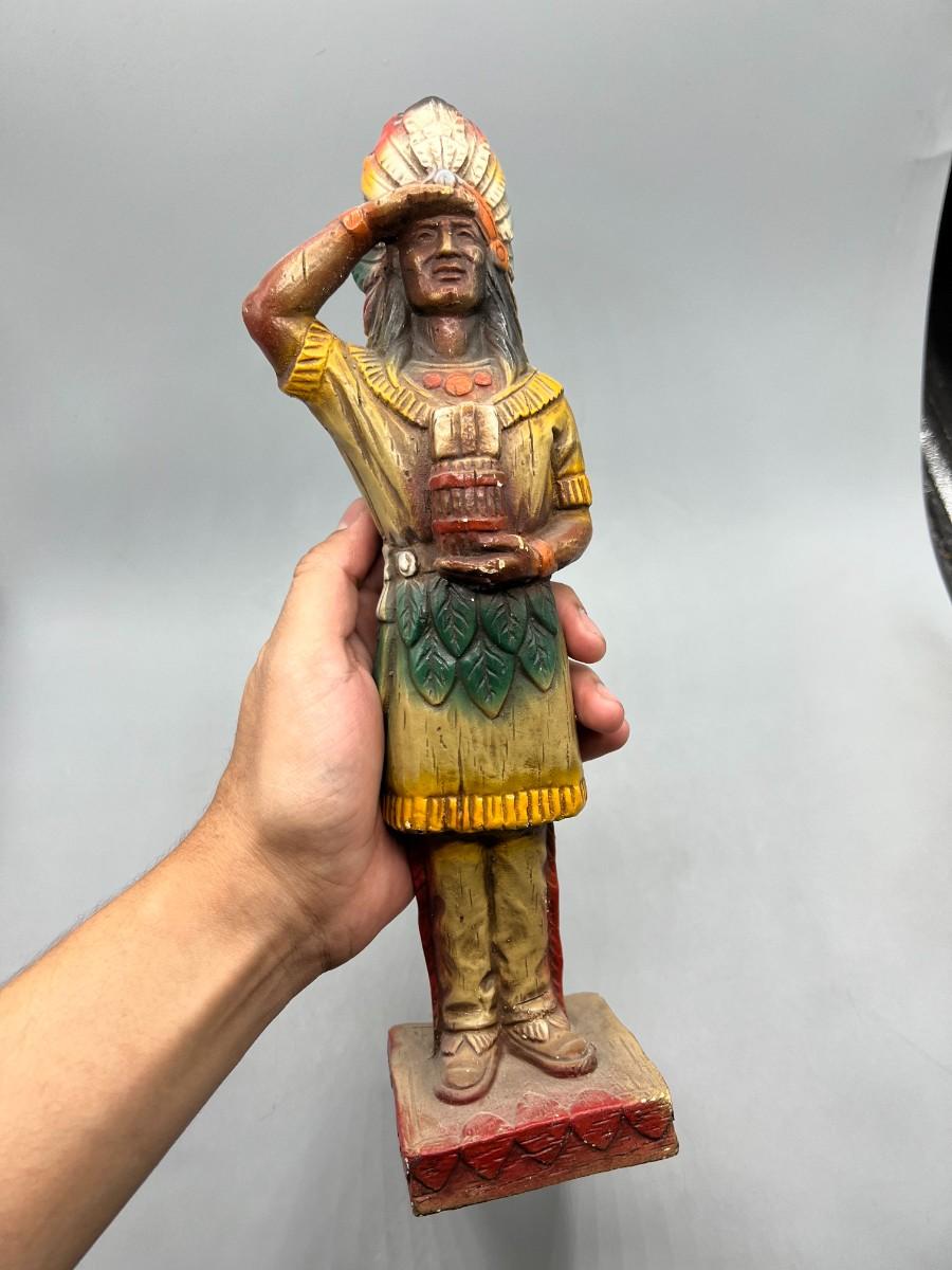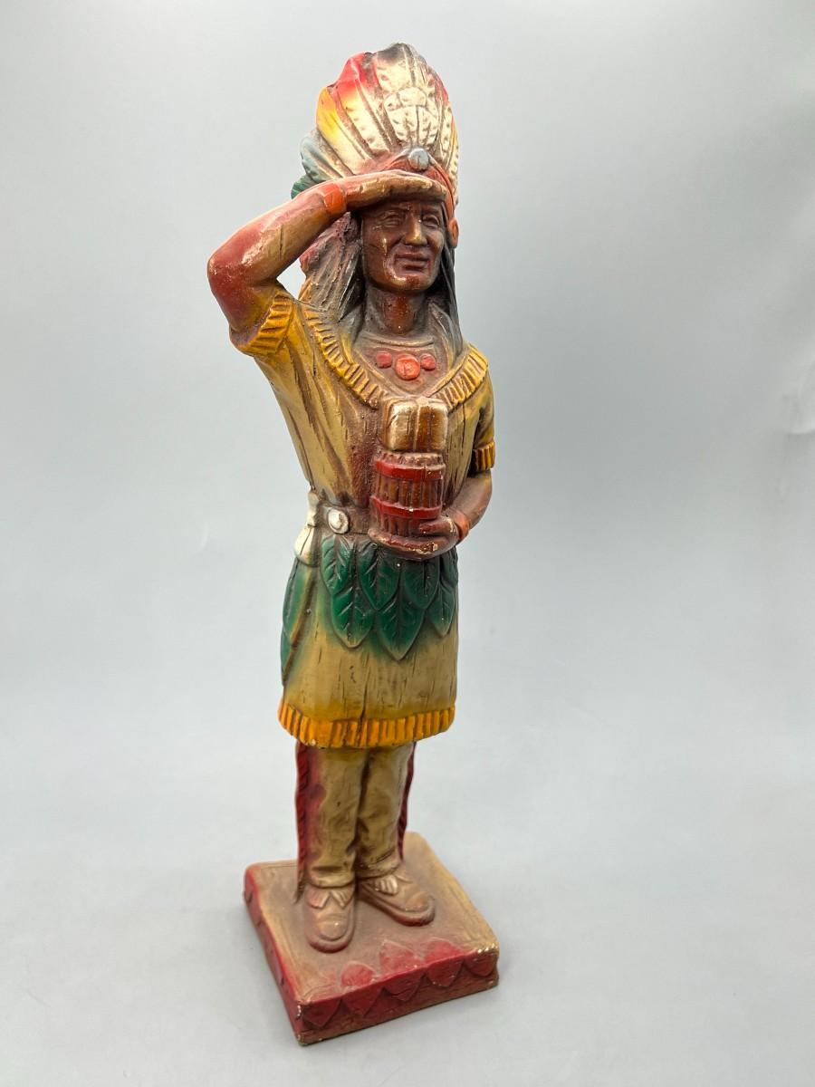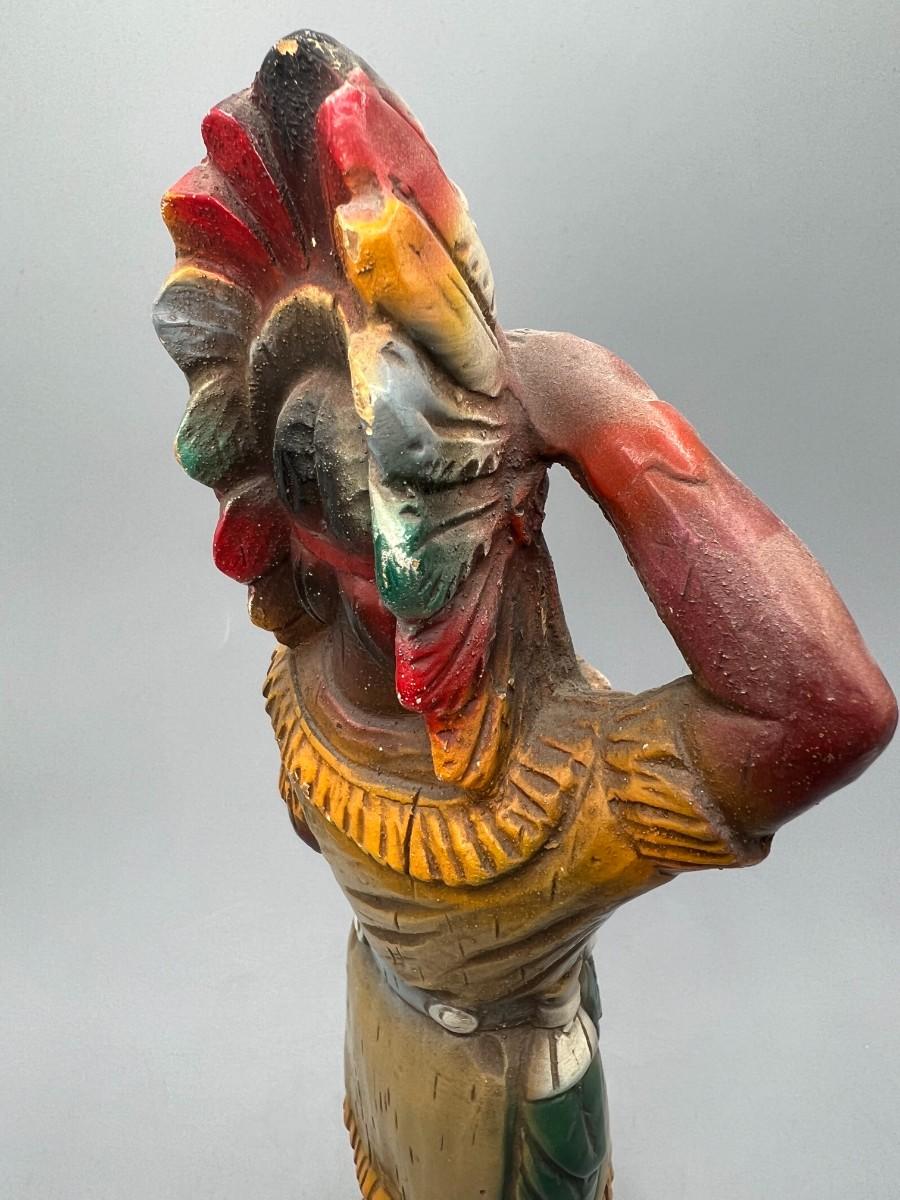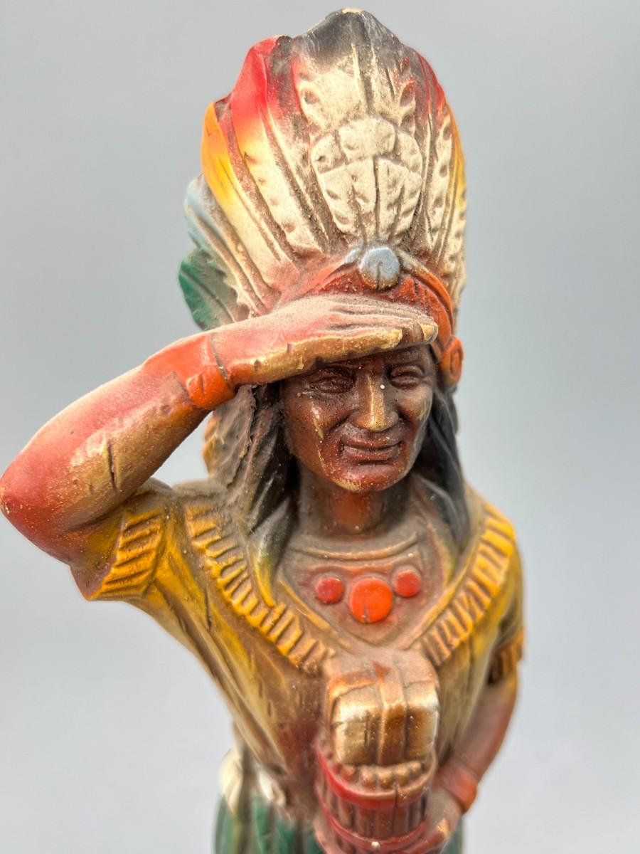 Vintage Saluting Native American Light Plaster Resin Painted Old West Figurine