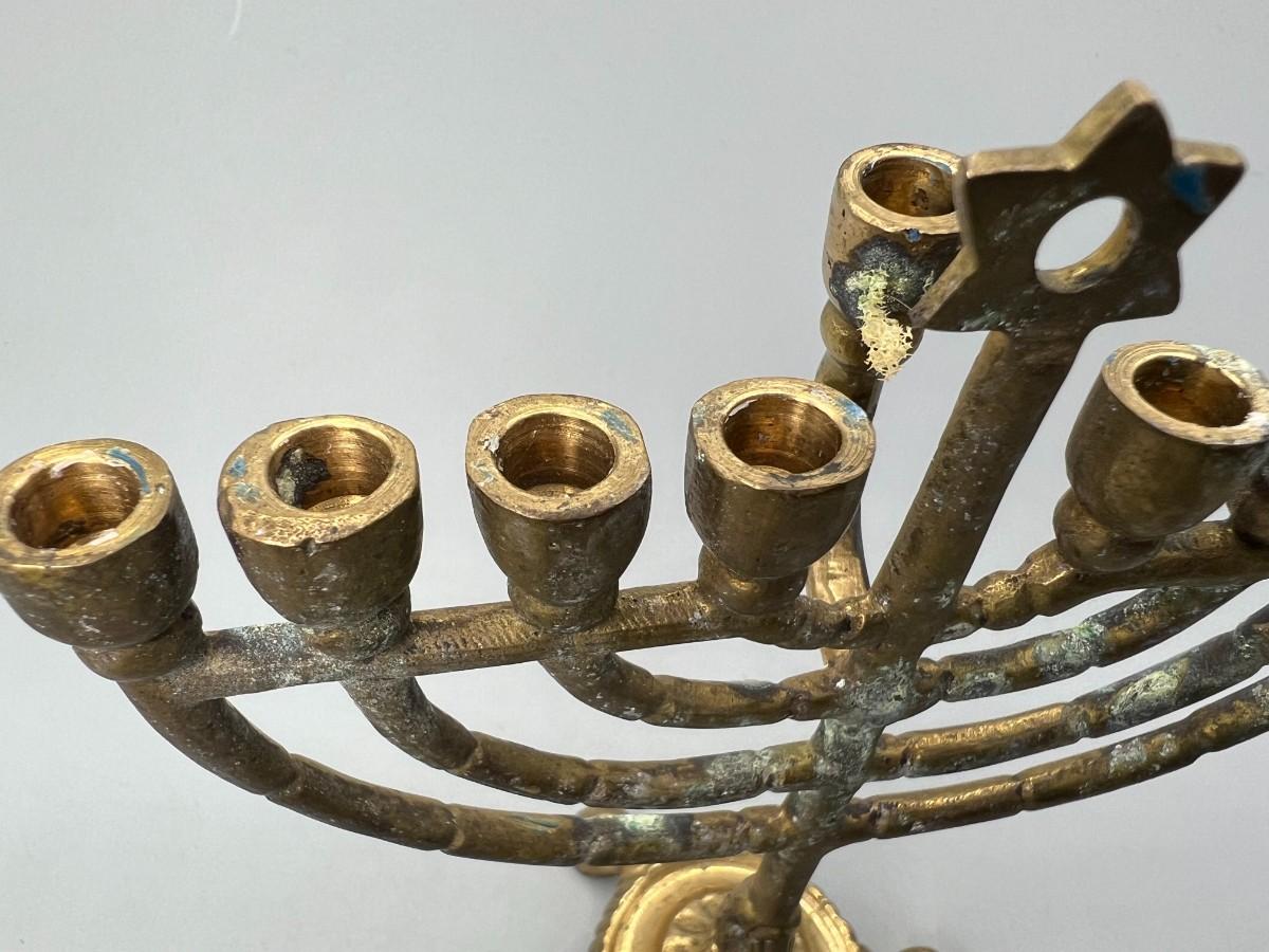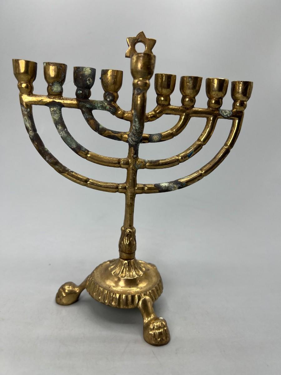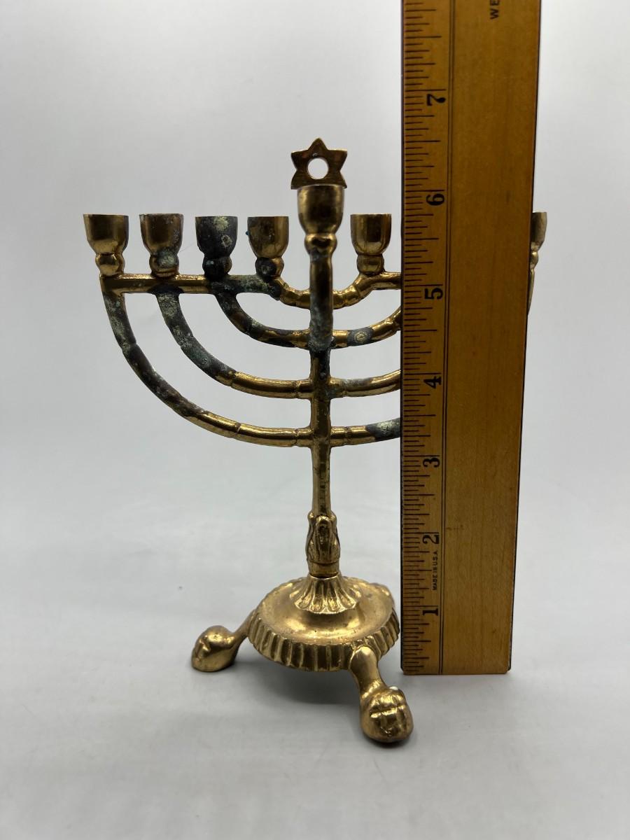 Small Vintage Footed Brass Jewish Menorah Candelabrum