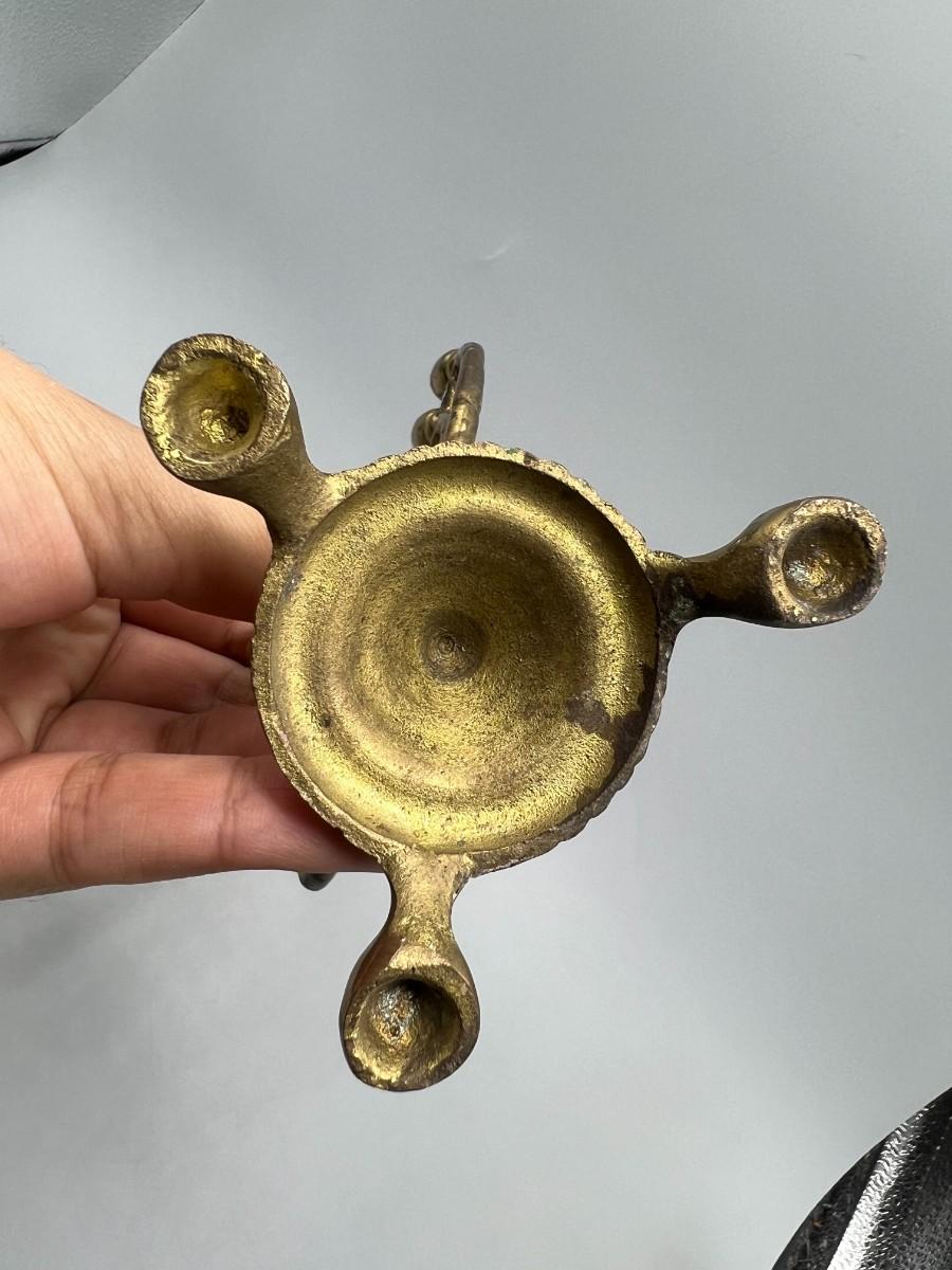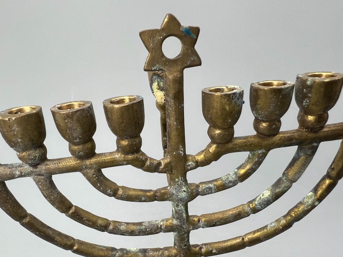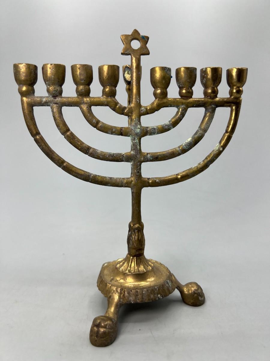 Small Vintage Footed Brass Jewish Menorah Candelabrum