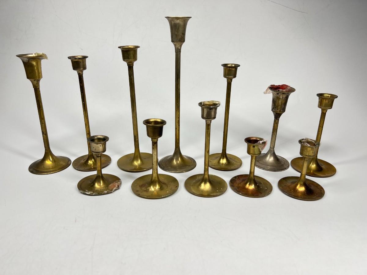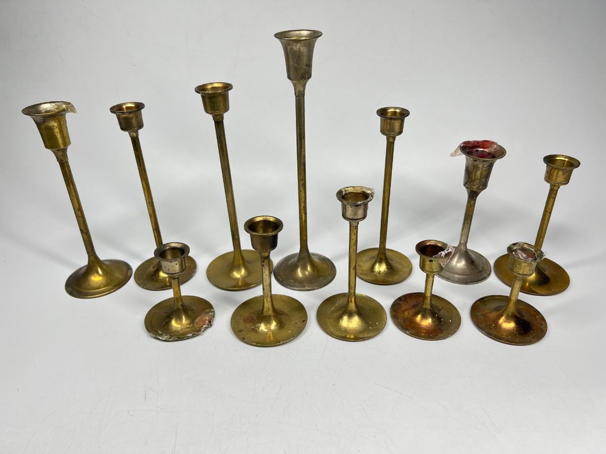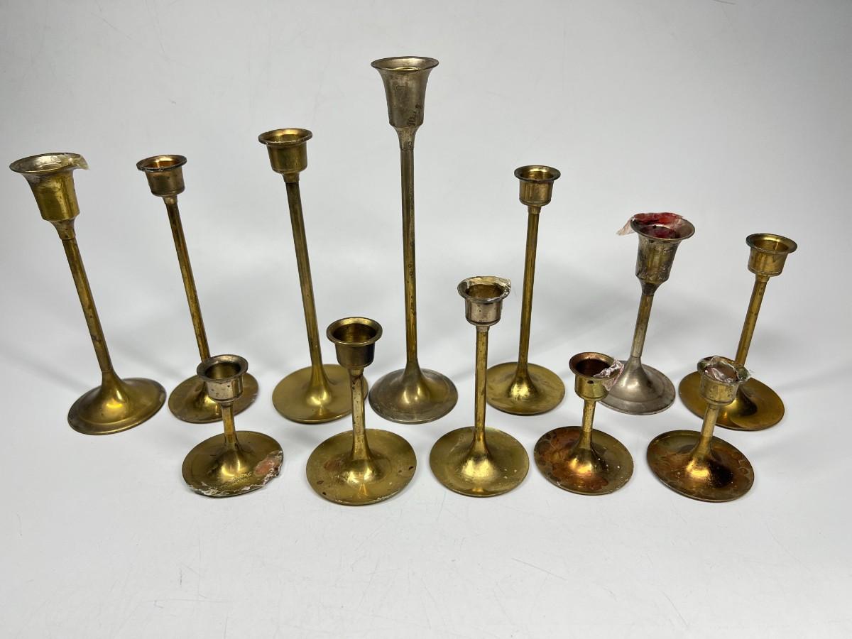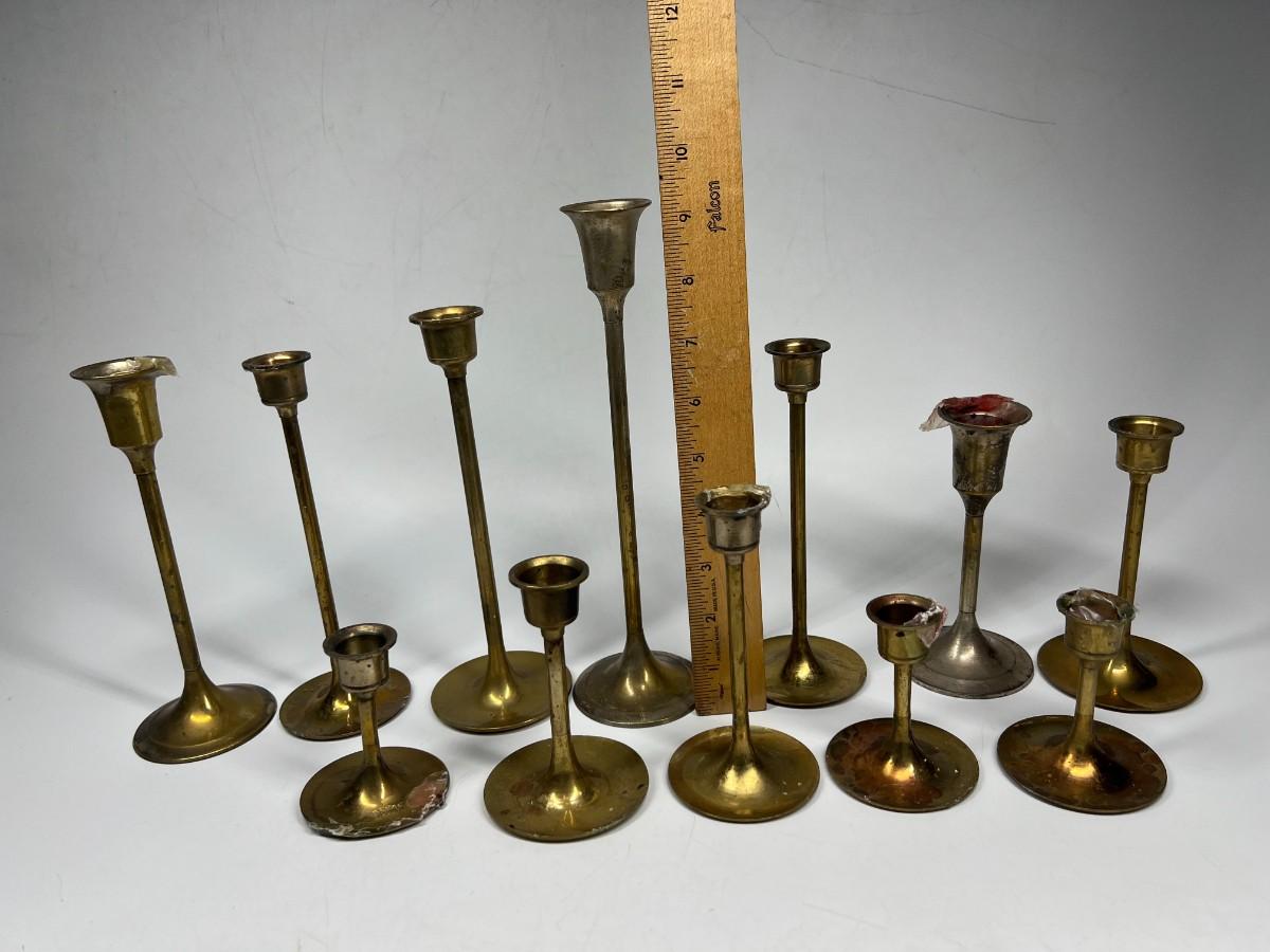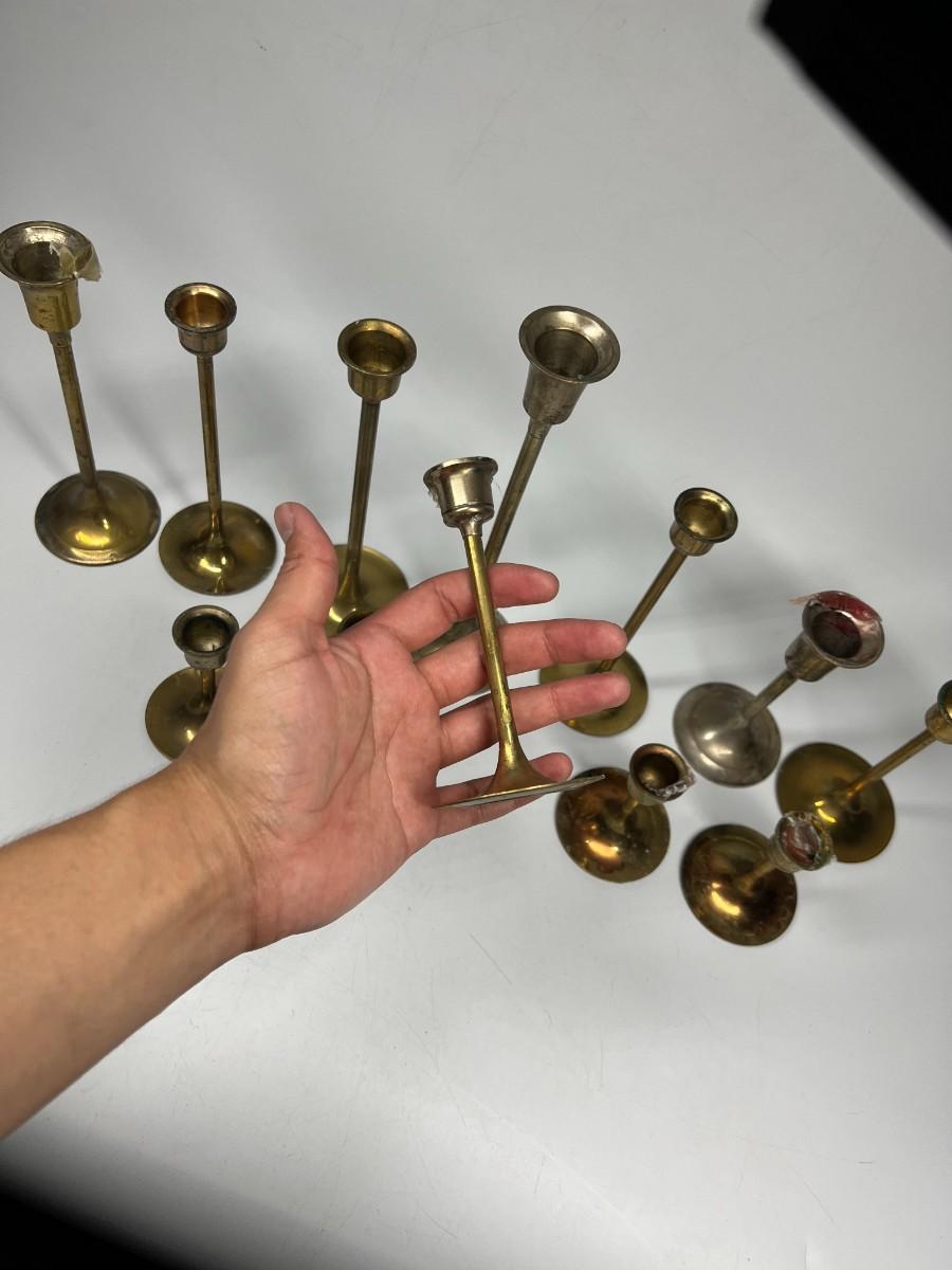Lot of Retro Small Brass Religious Church Decor Gothic Candlestick Holders