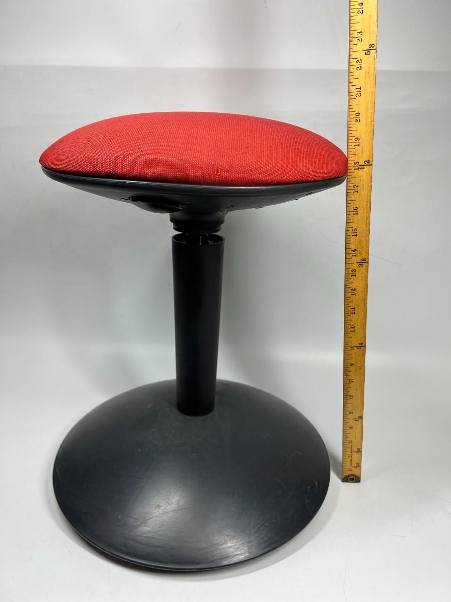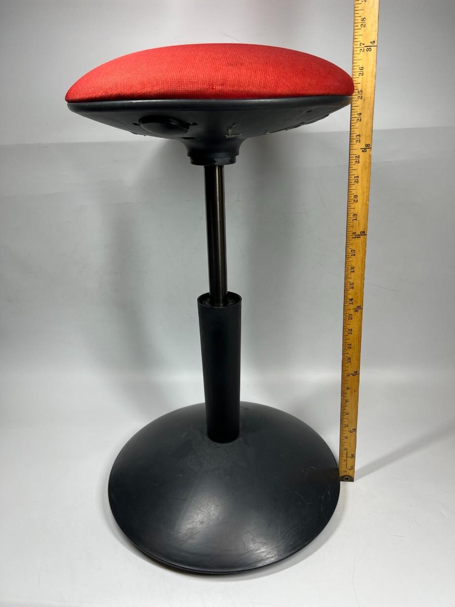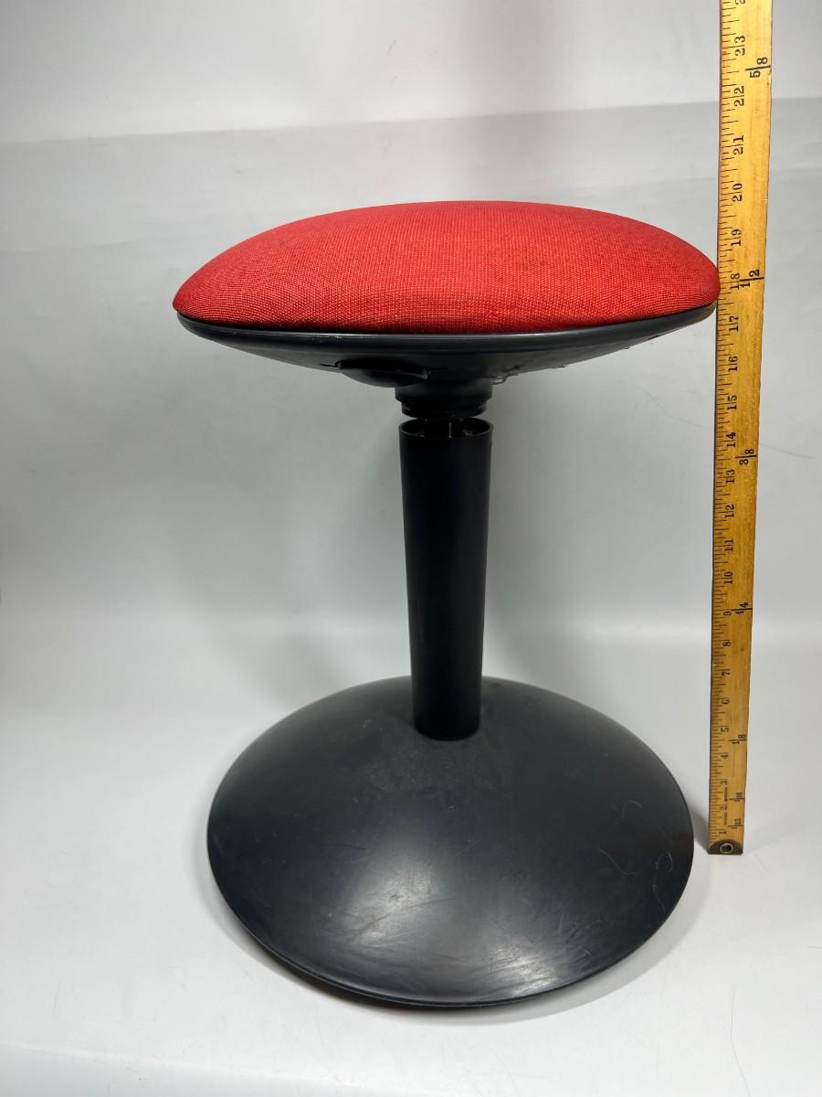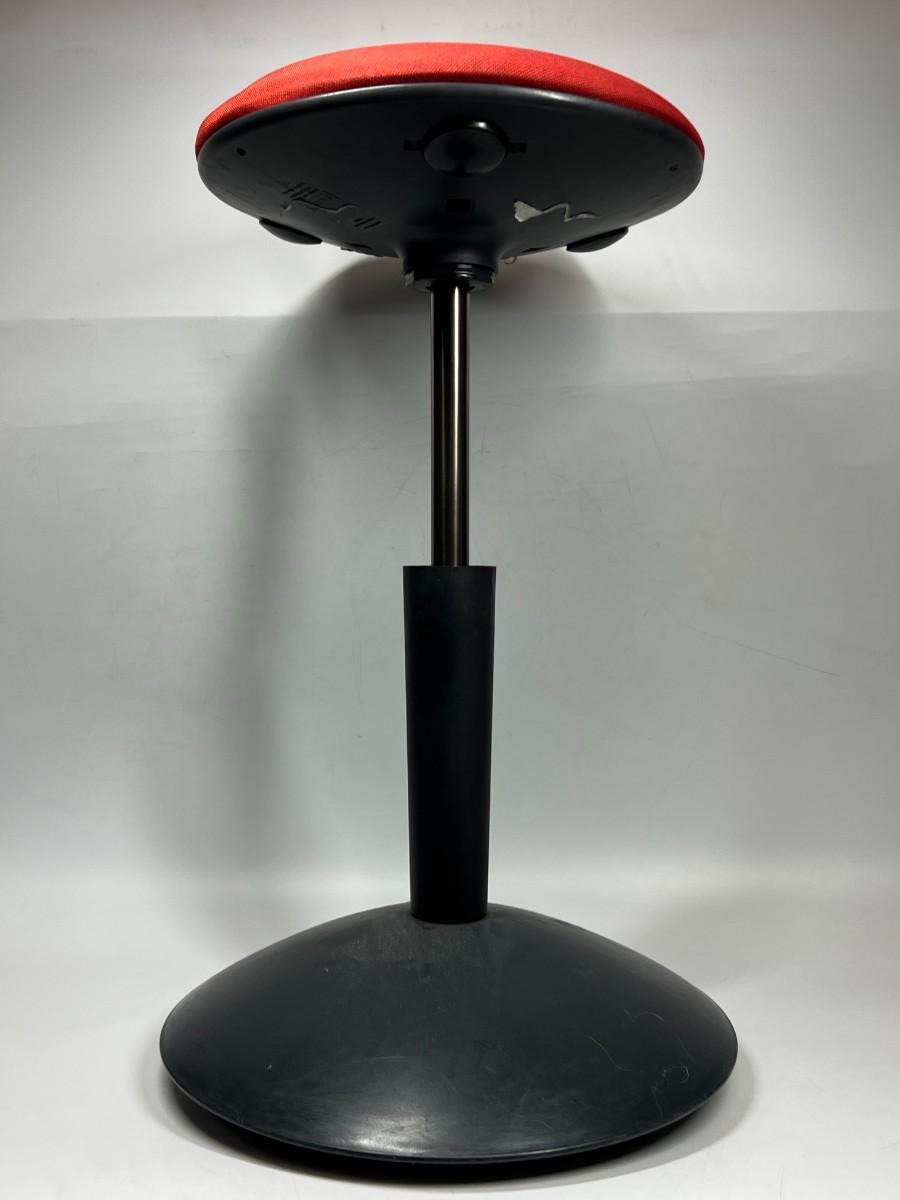 There are signs of wear to the cushion and the stool, it still works and adjusts up and down.