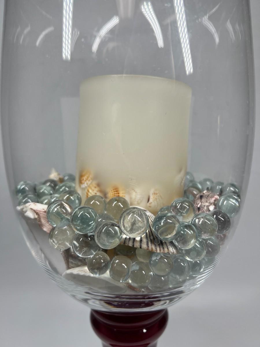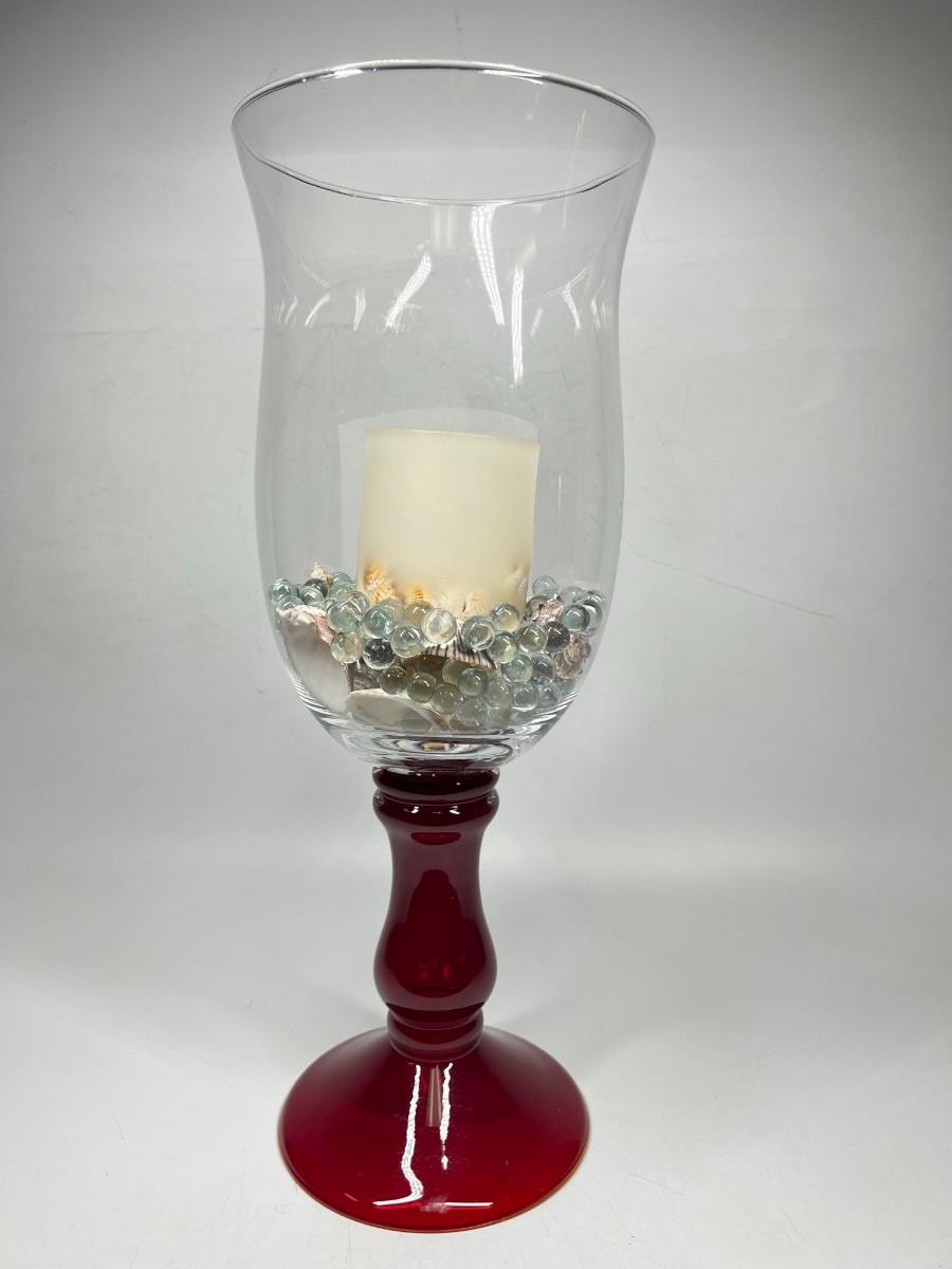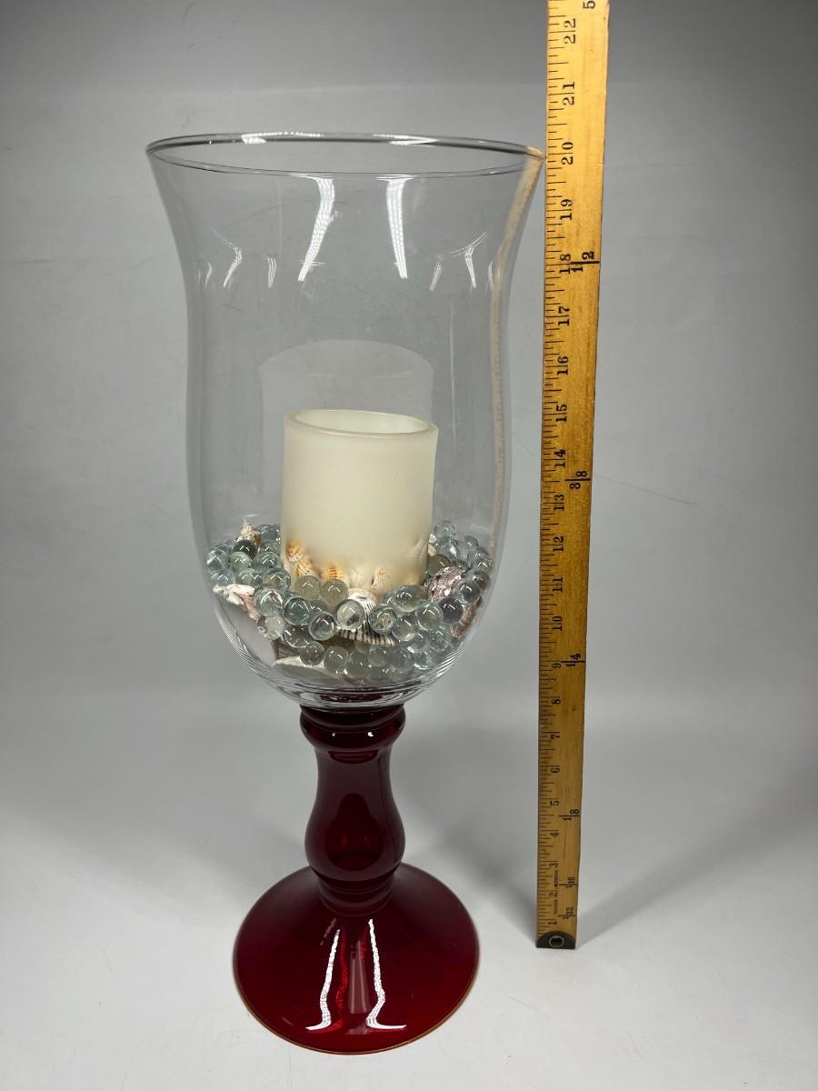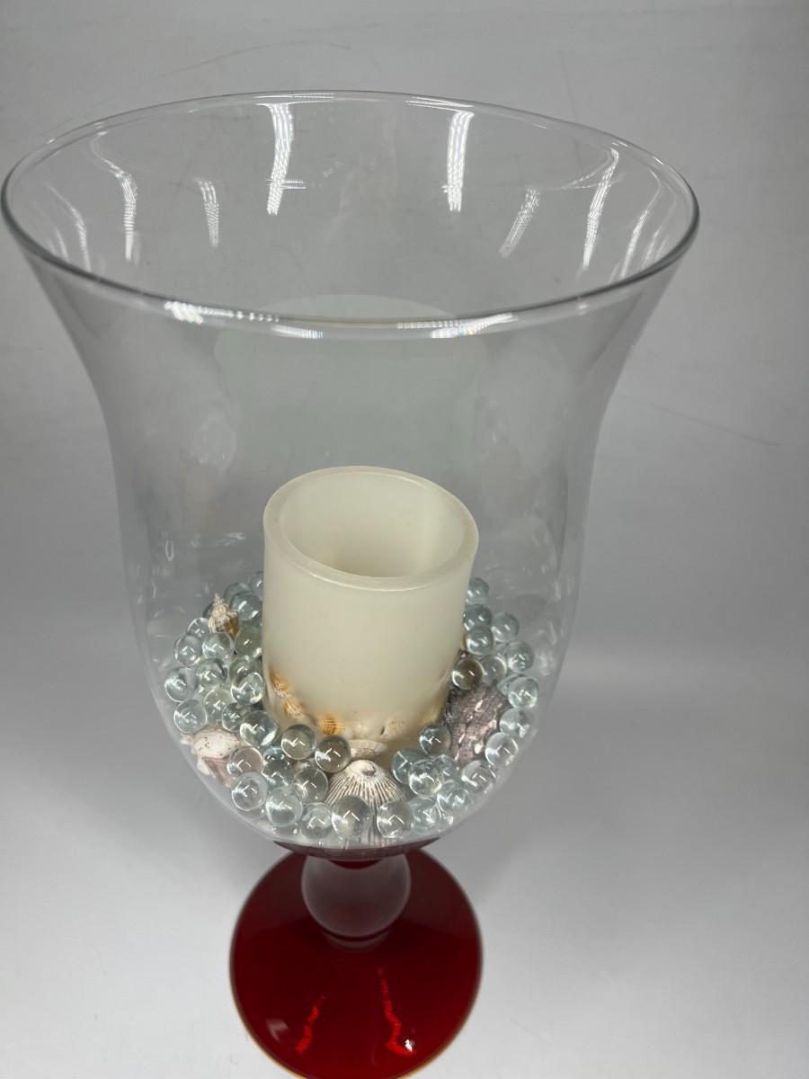 Large Glass Home Decor Red Stemmed Glass Vase with Decorative Beads & Nautical Shells