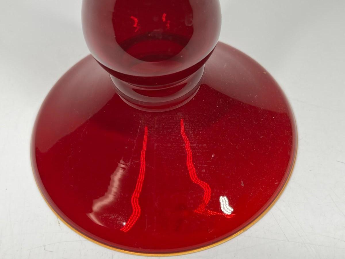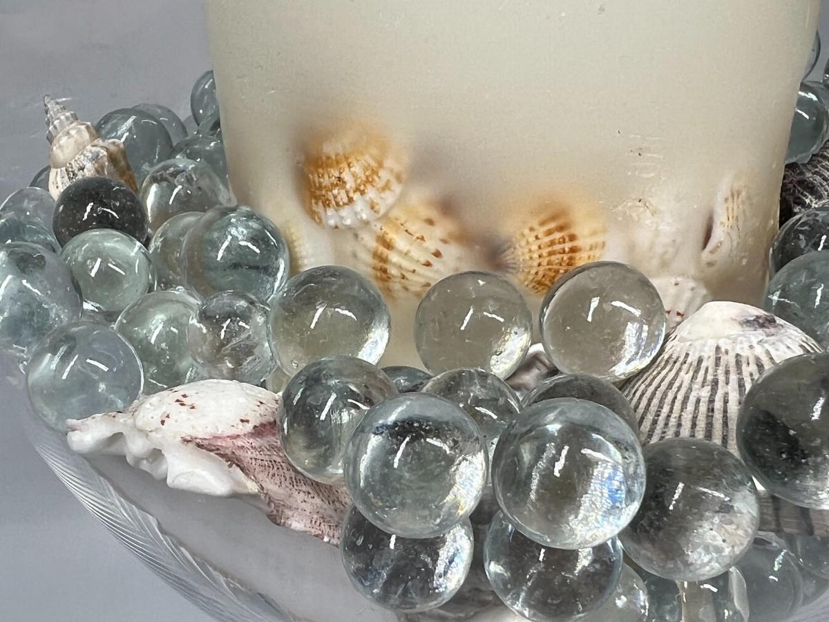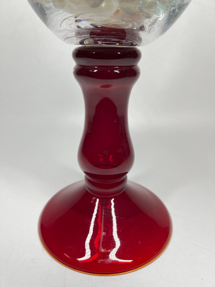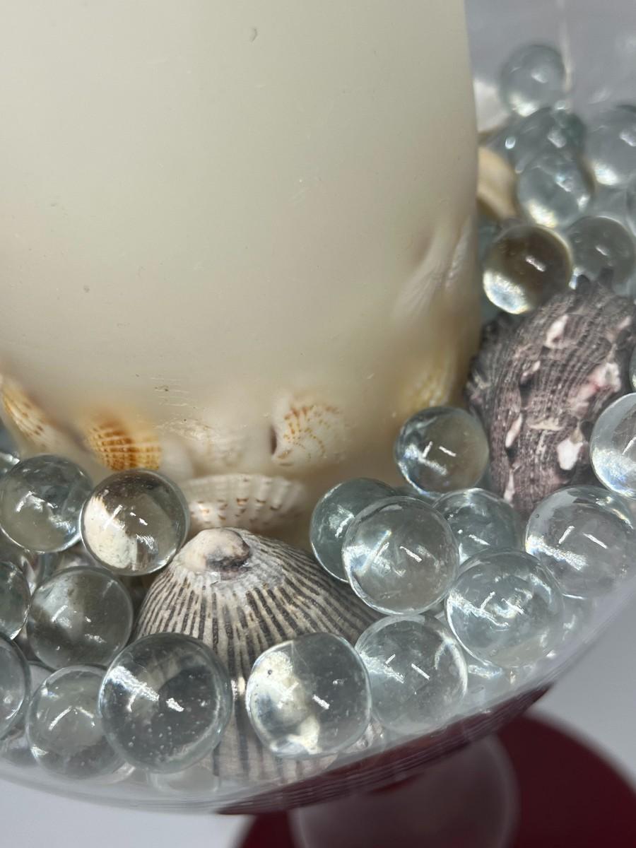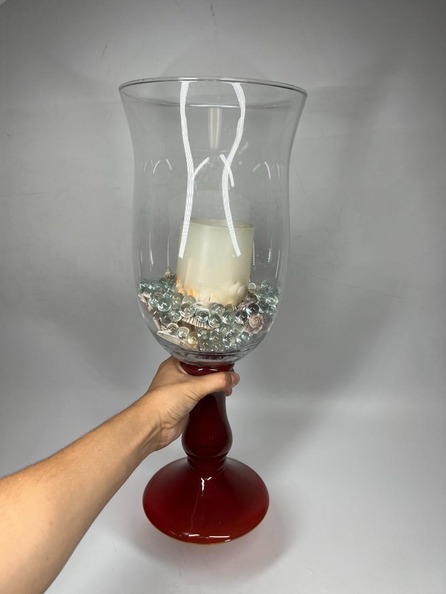 Large Glass Home Decor Red Stemmed Glass Vase with Decorative Beads & Nautical Shells