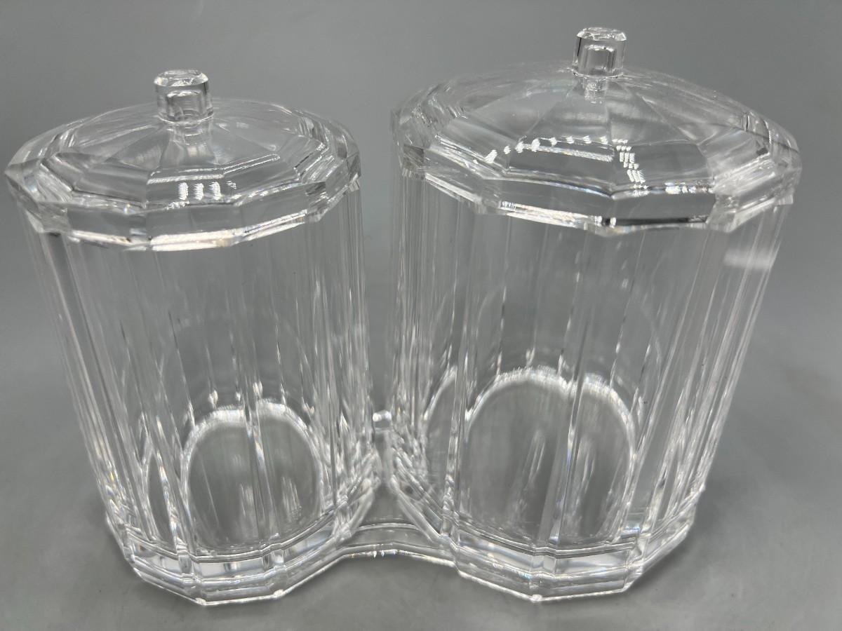 Retro Heavy Acrylic Q Tips Cotton Ball Bathroom Organizer Conjoined Jar Container