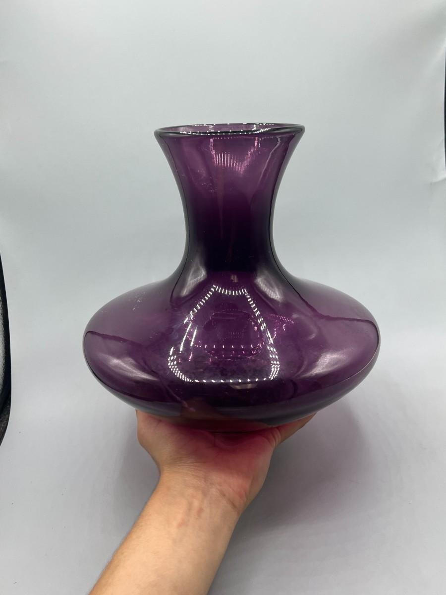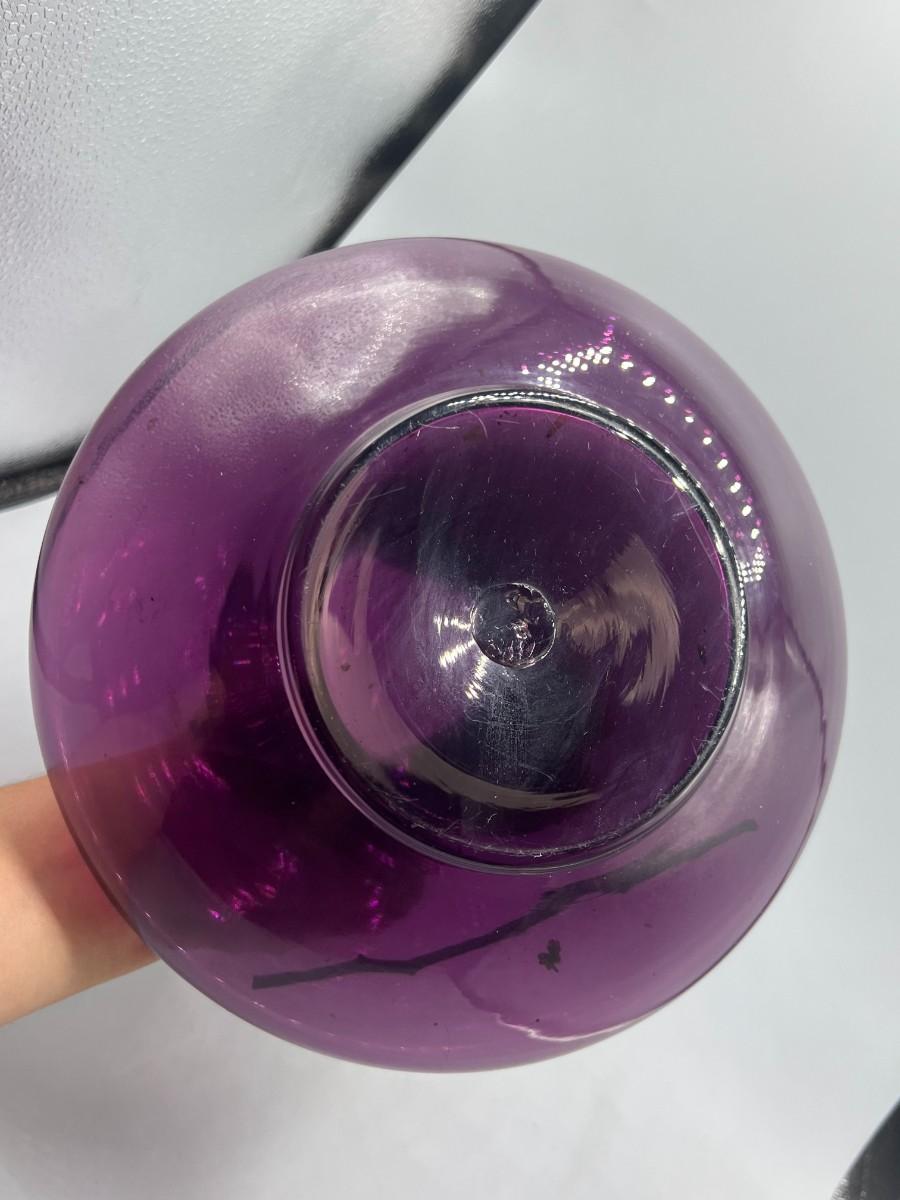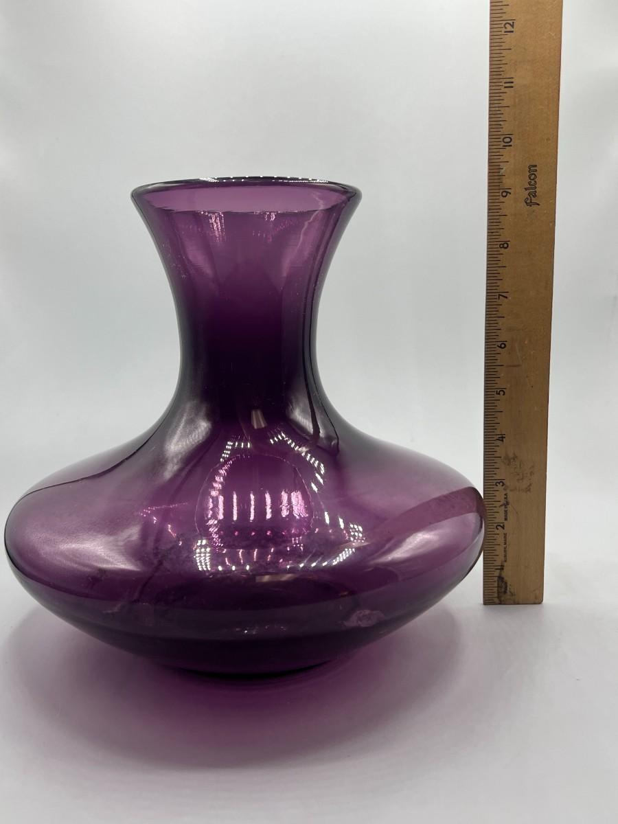Wide Bottom Purple Glass Flower Vase