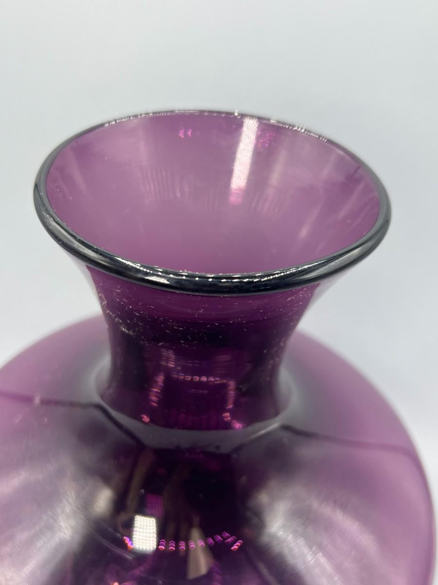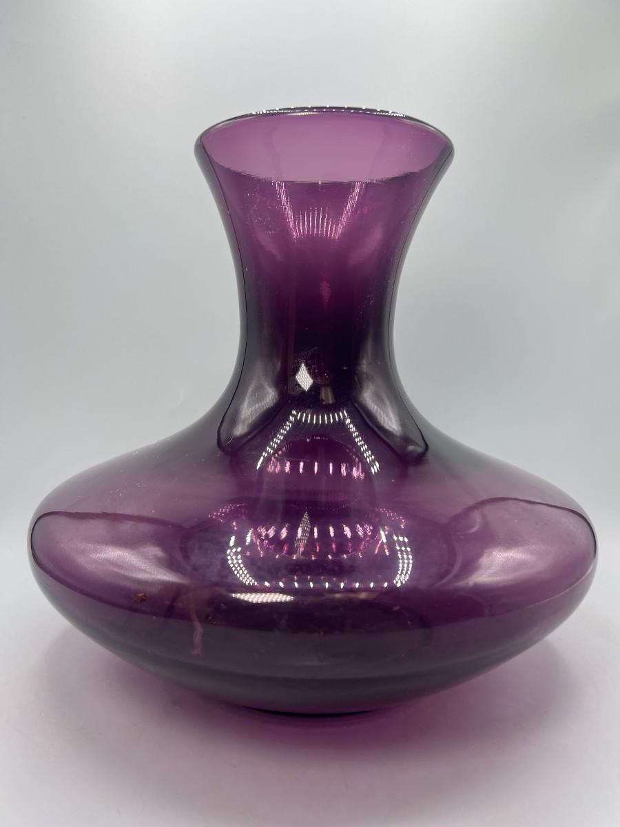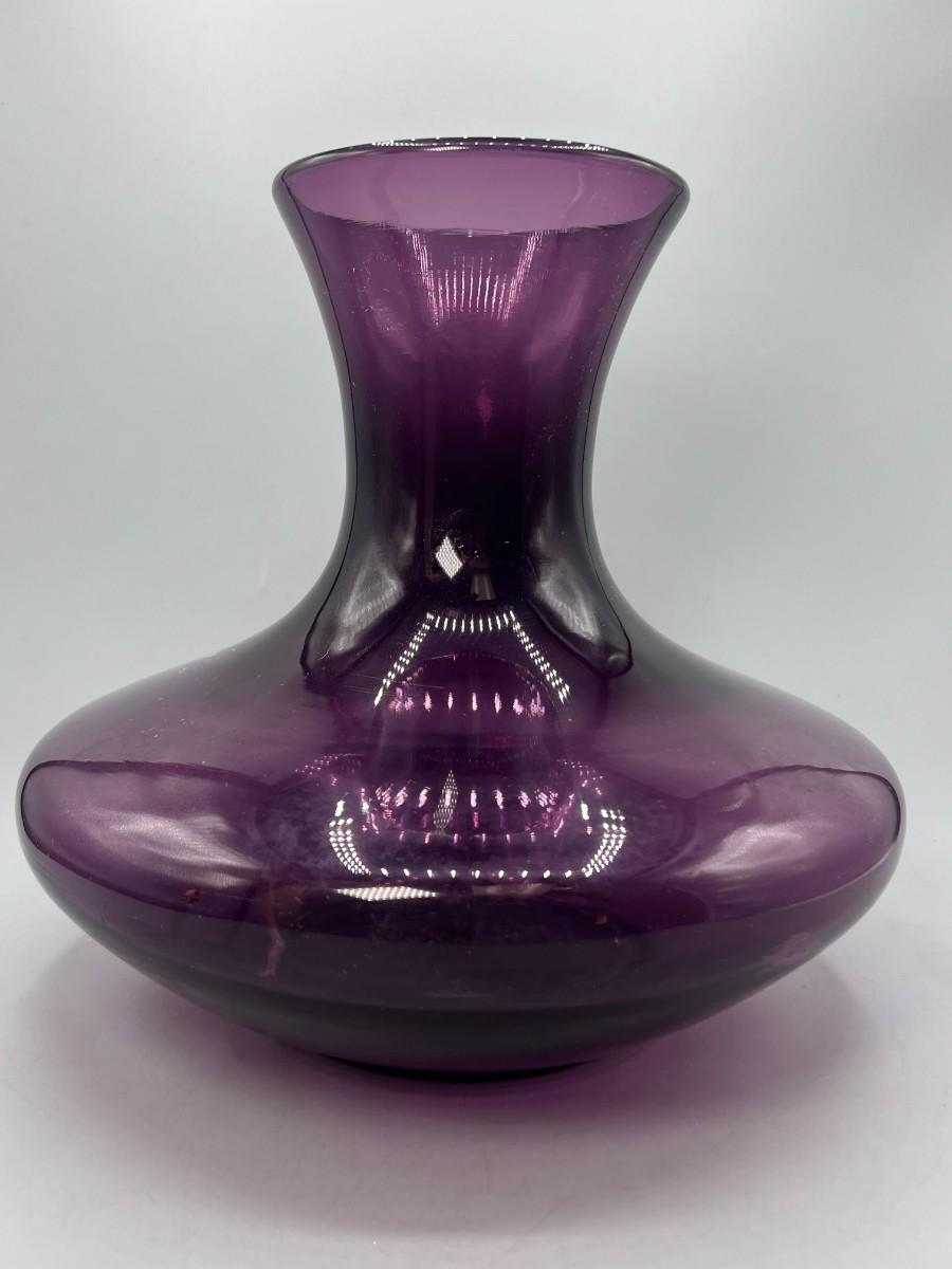 Wide Bottom Purple Glass Flower Vase