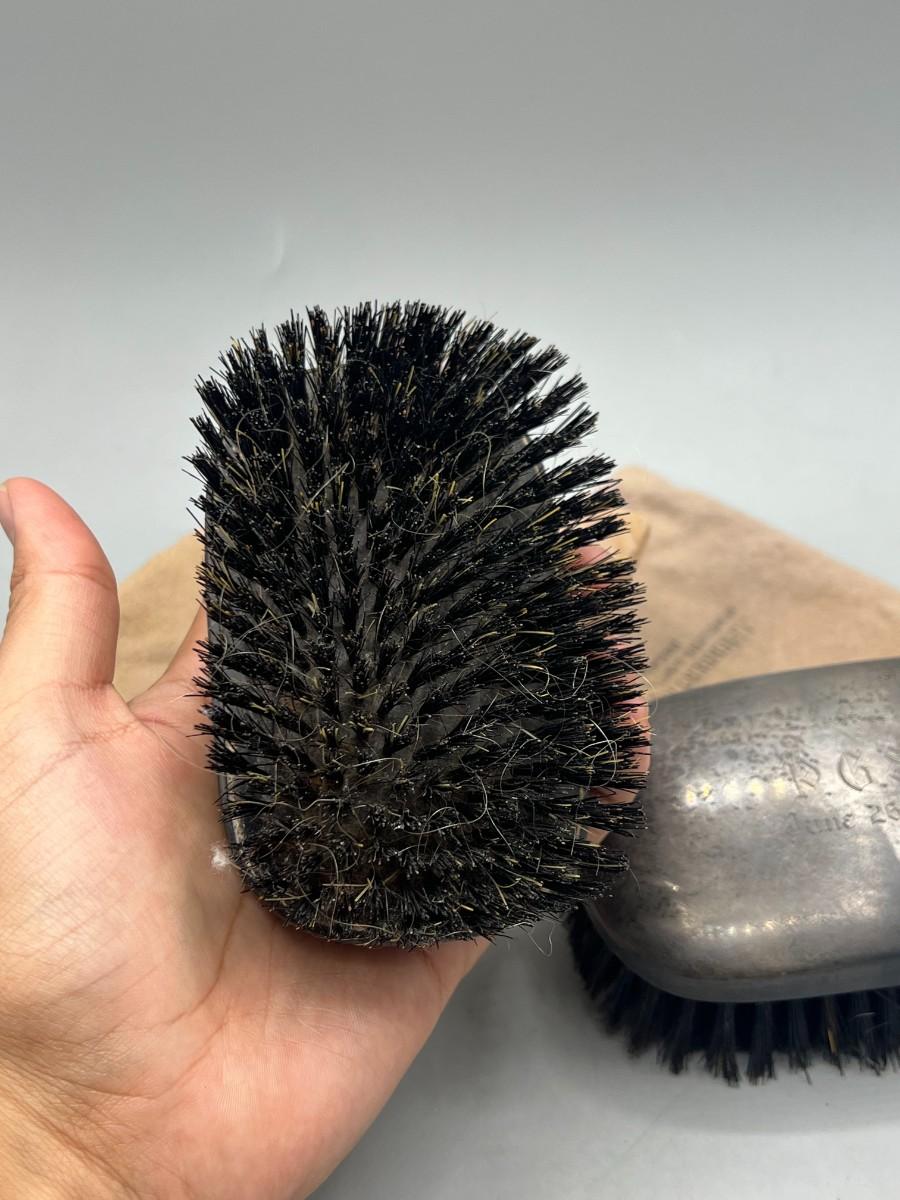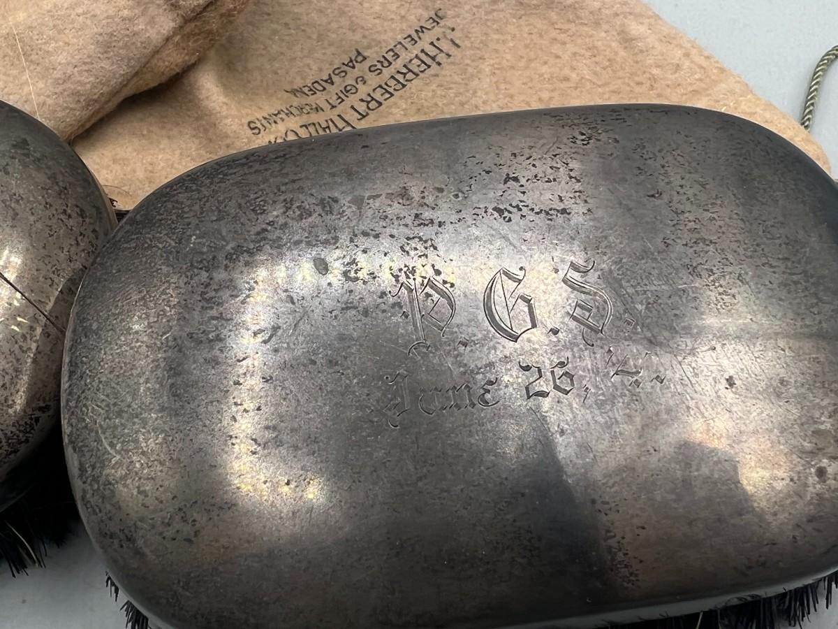 Antique Monogrammed P.G.S. Dated Silver Plate Handheld Gentlemans Hair Cloth Brushes