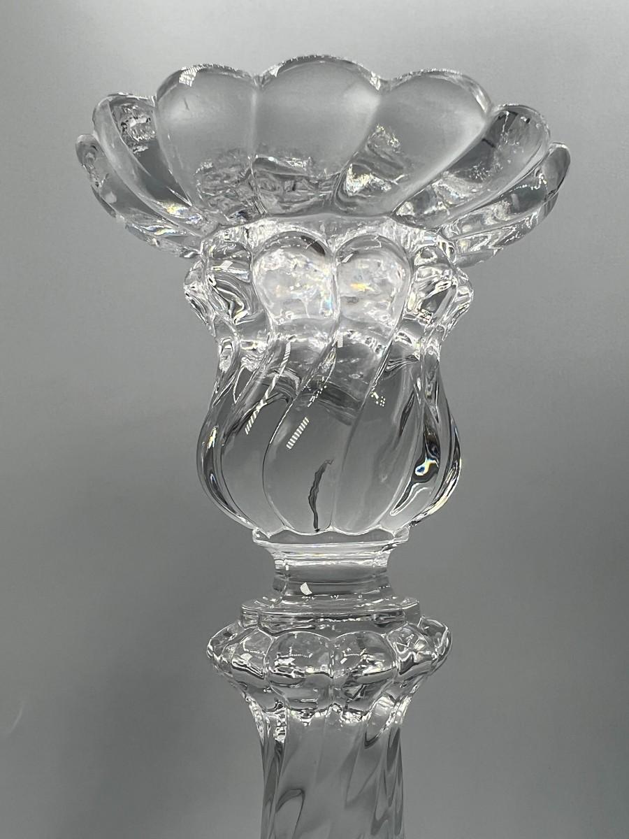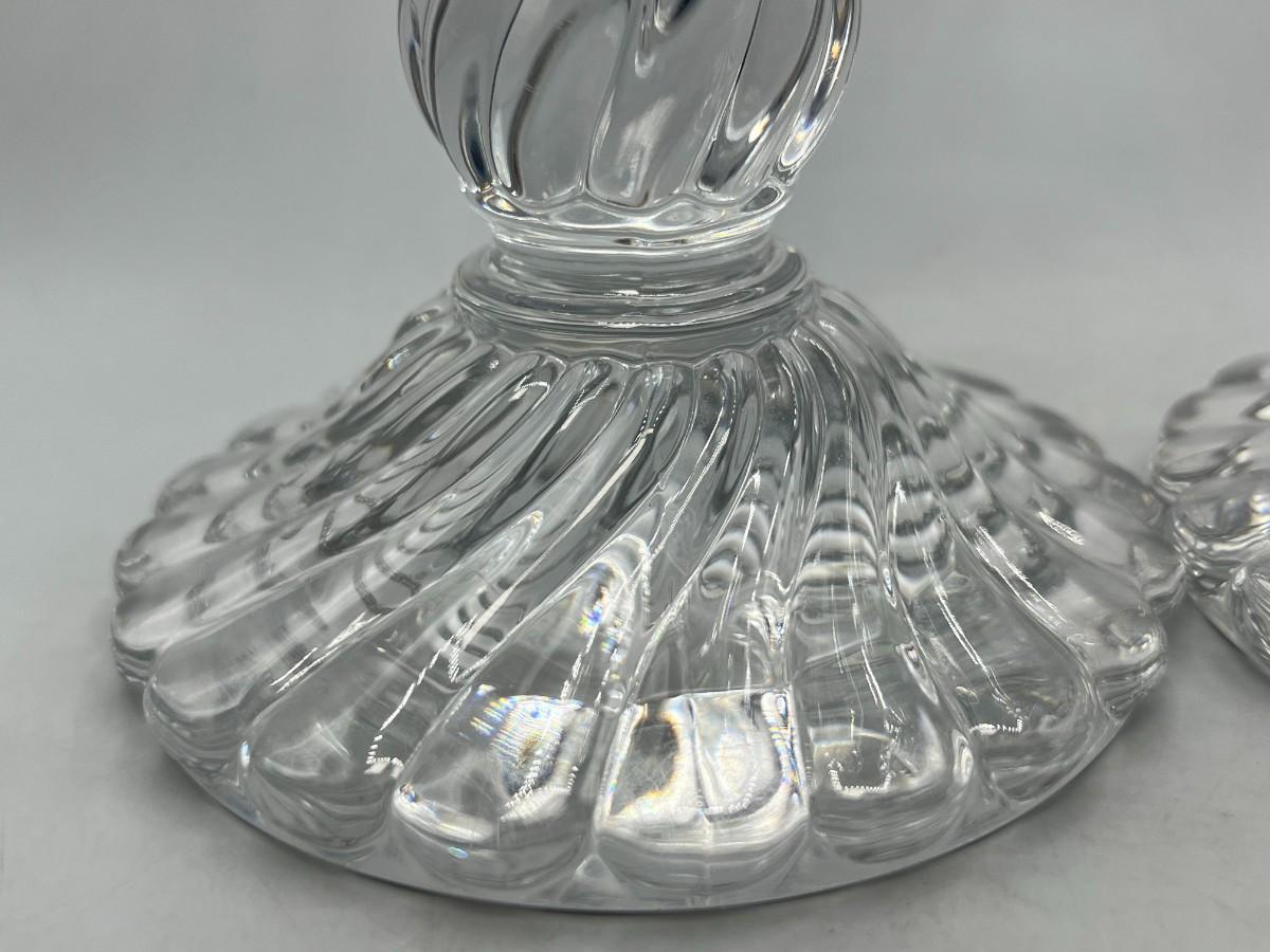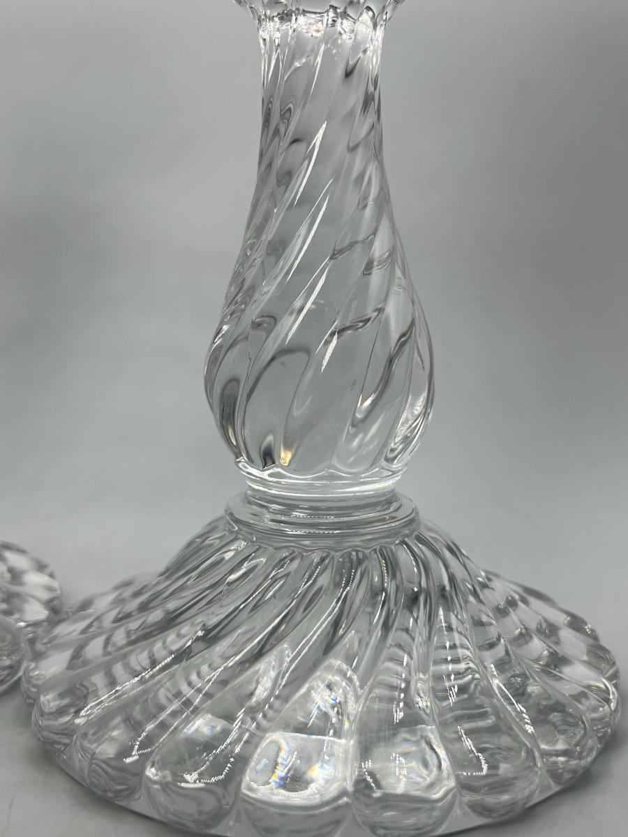 Vintage Pair of Baccarat Crystal Glass Heavy Bambous Swirl Mid Century Swirl Candlestick Holders