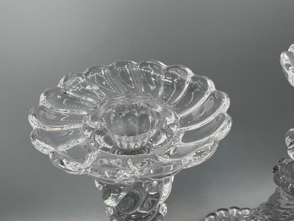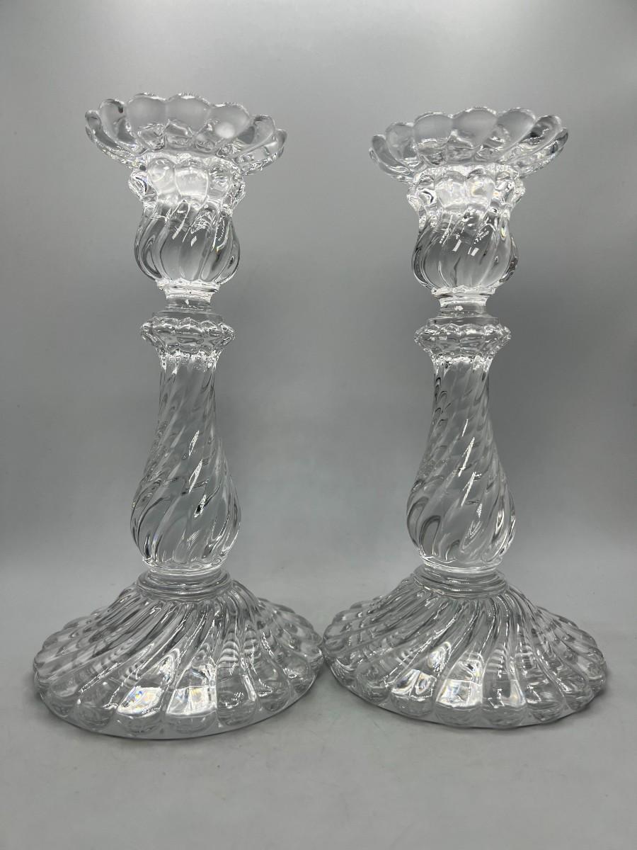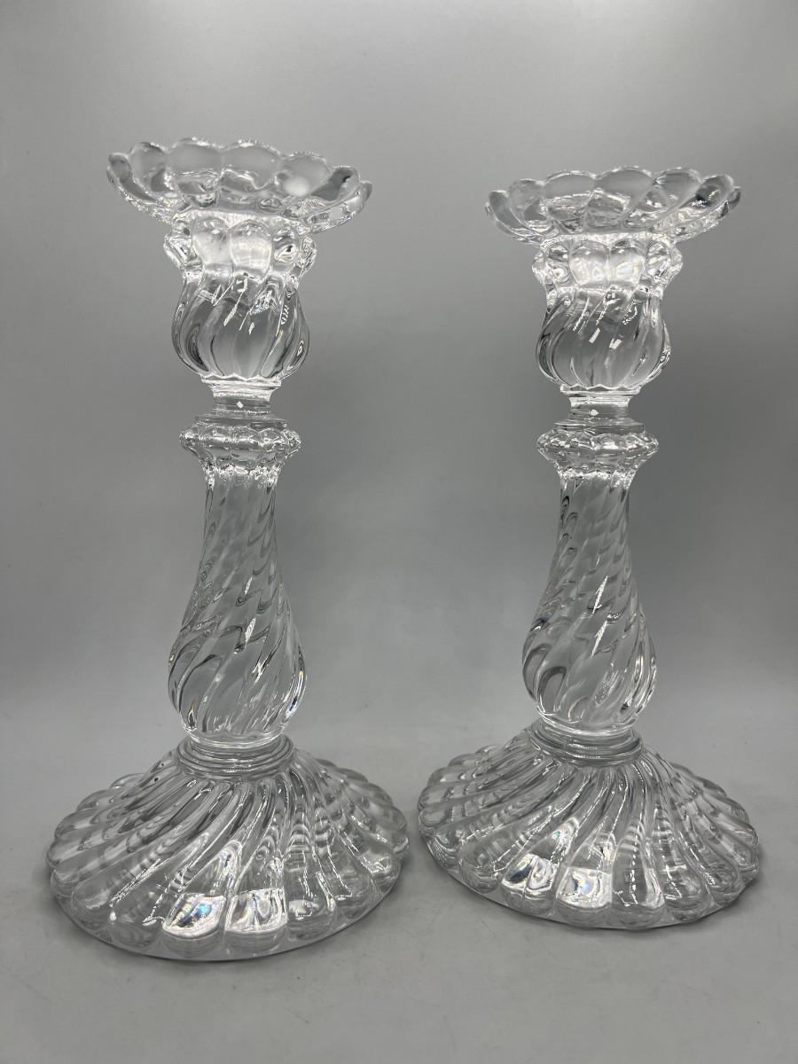 Vintage Pair of Baccarat Crystal Glass Heavy Bambous Swirl Mid Century Swirl Candlestick Holders