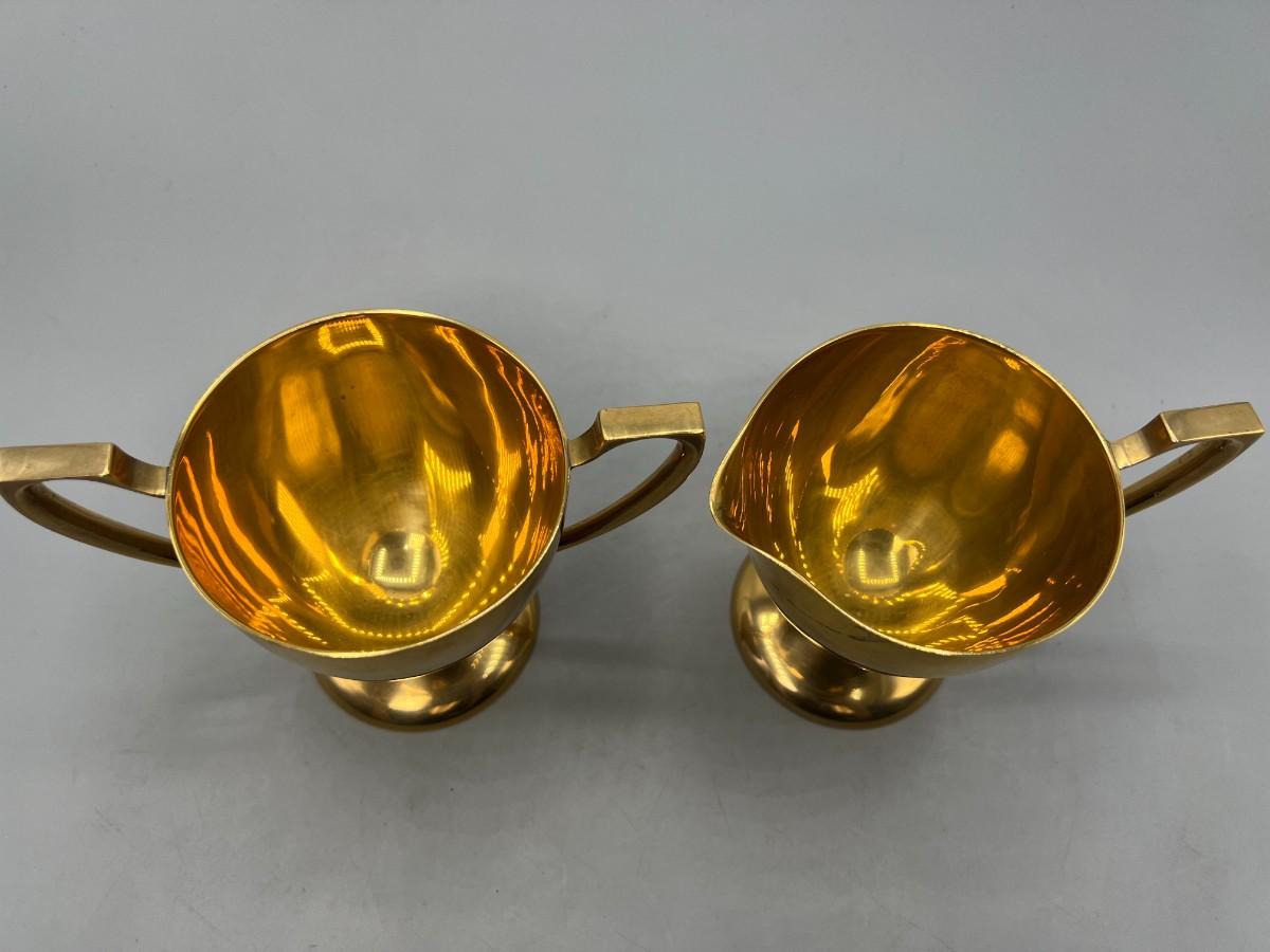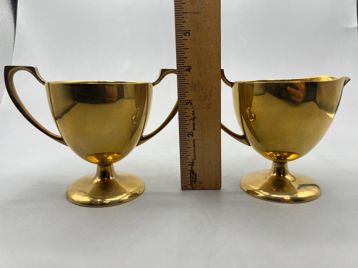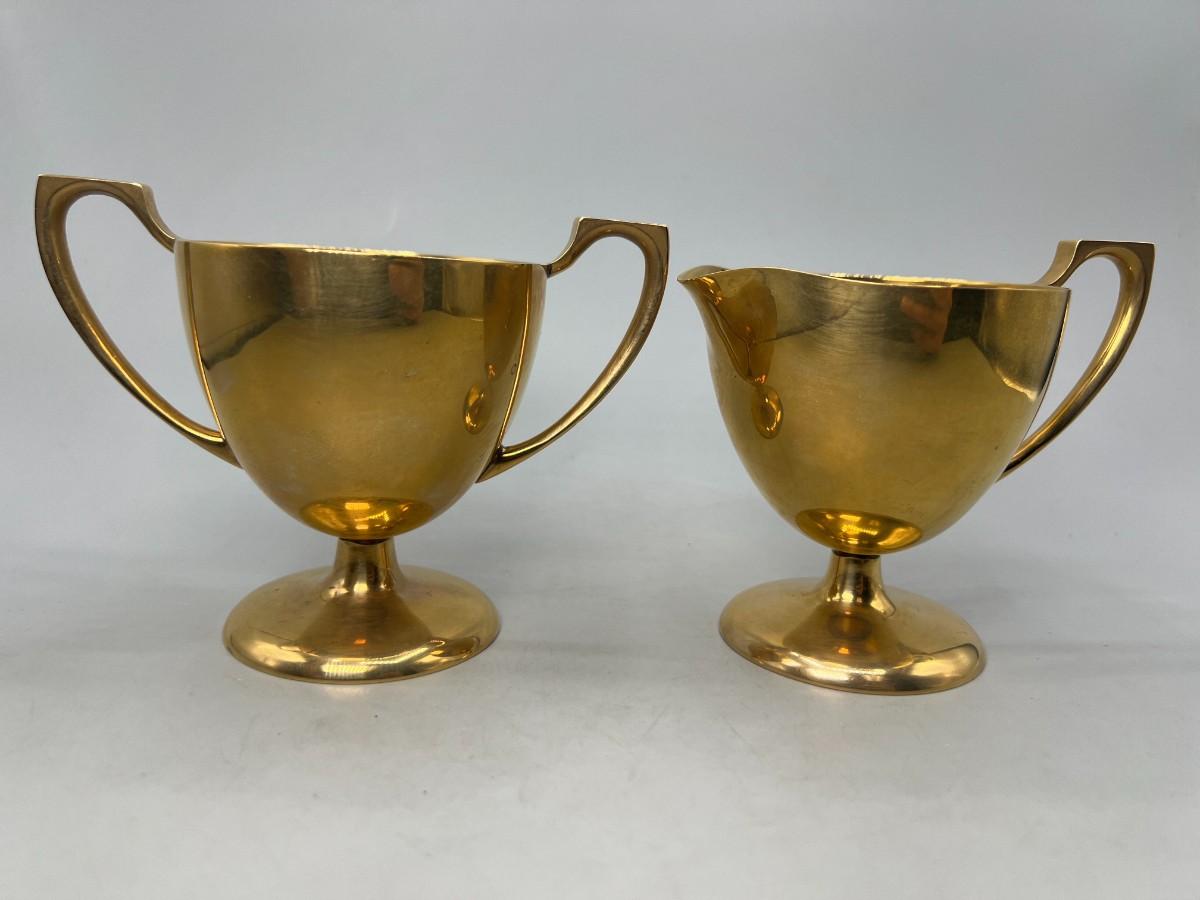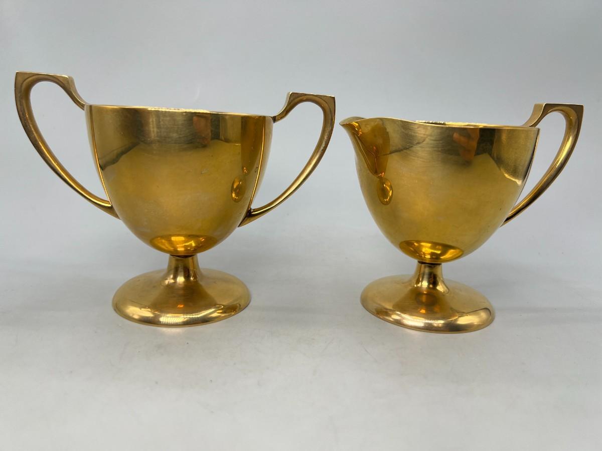 Vintage Gold Tone Sugar Bowl and Creamer Set Dirilyte
