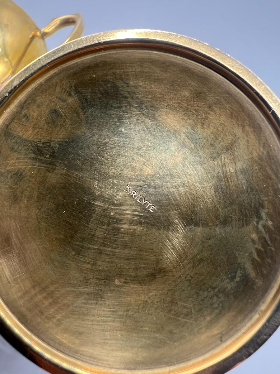 Vintage Gold Tone Sugar Bowl and Creamer Set Dirilyte. In good vintage condition. Shiny gold tone color.
