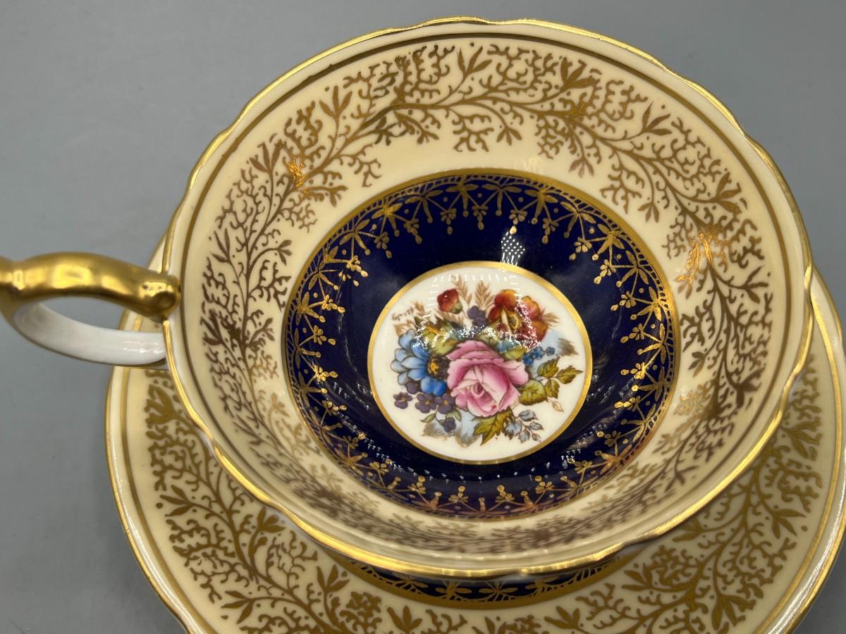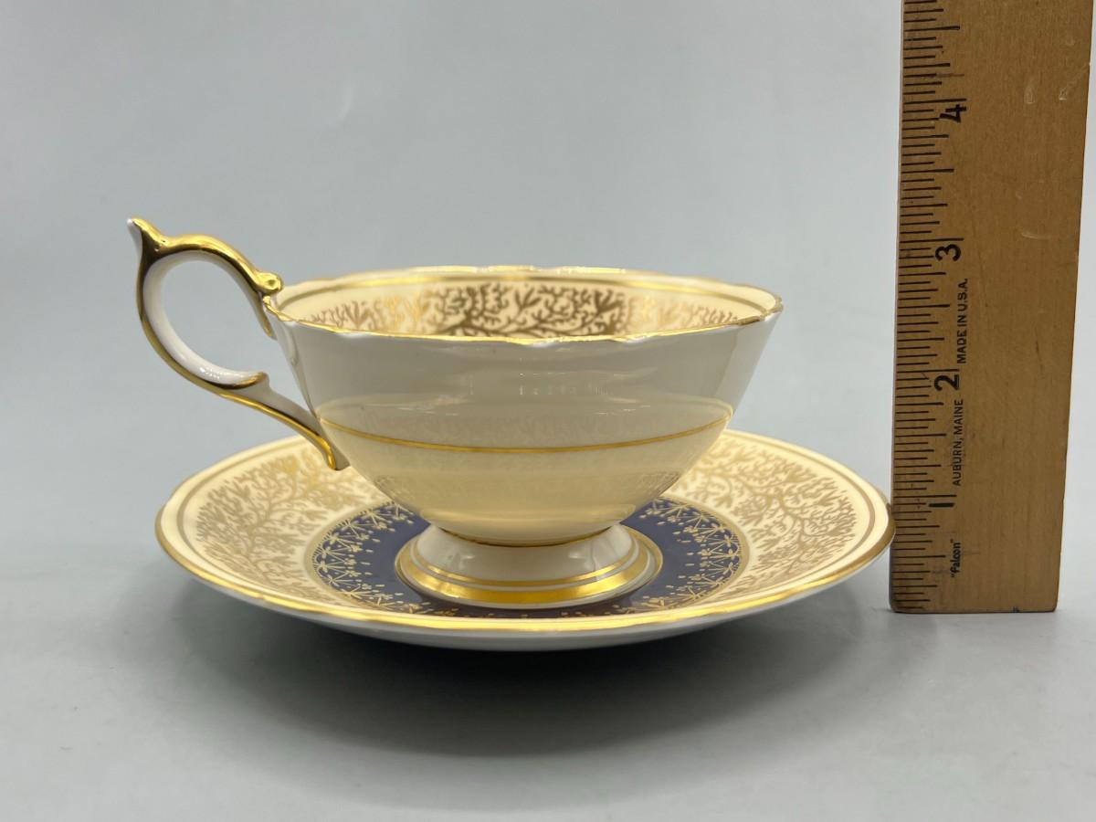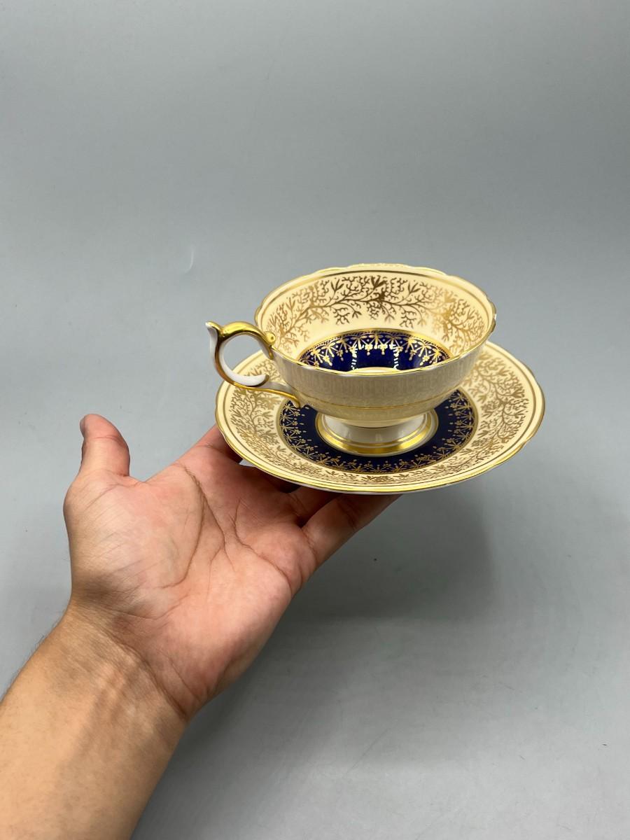 Vintage Aynsley England Bone China Cobalt Gold Teacup Saucer