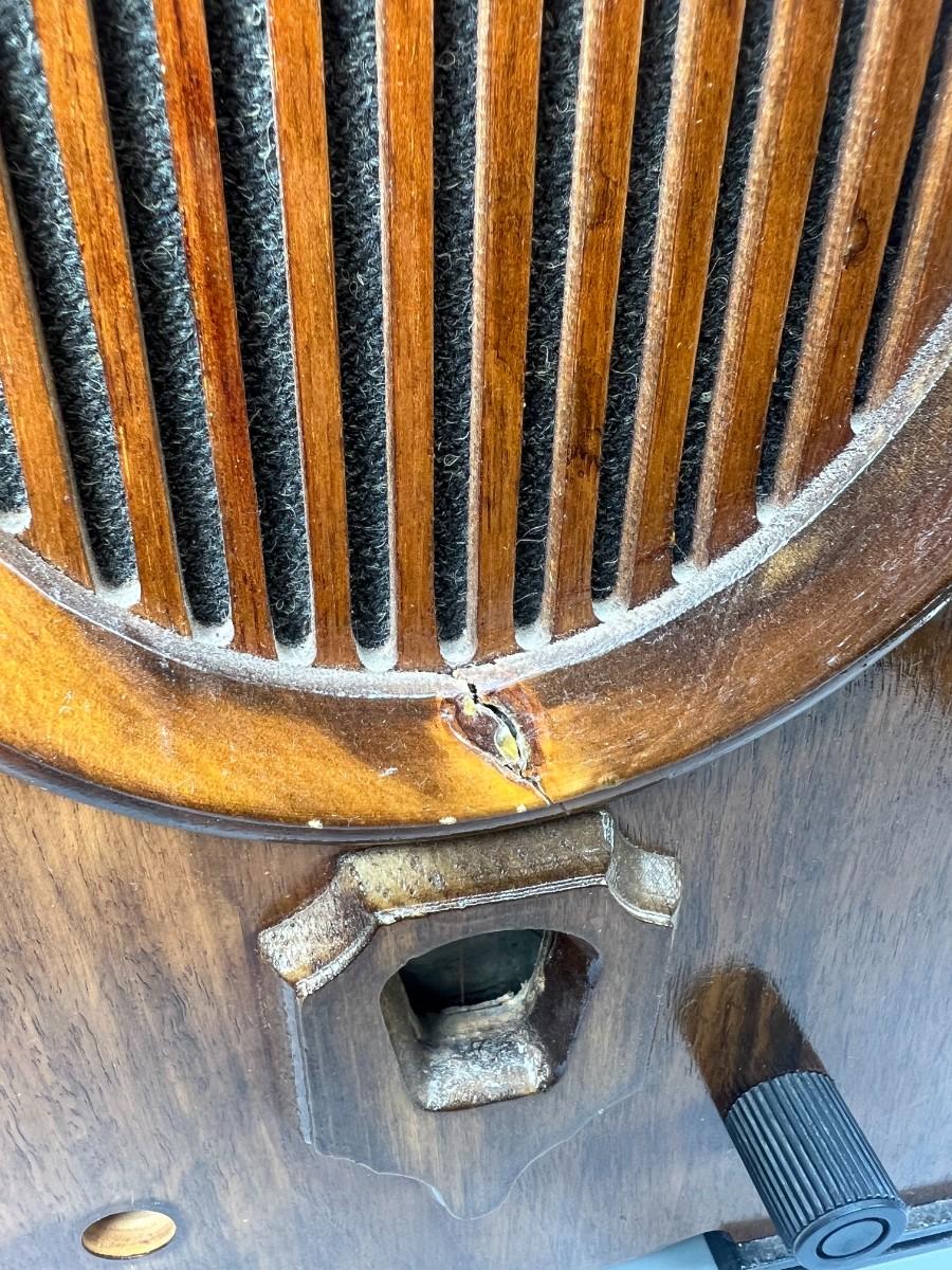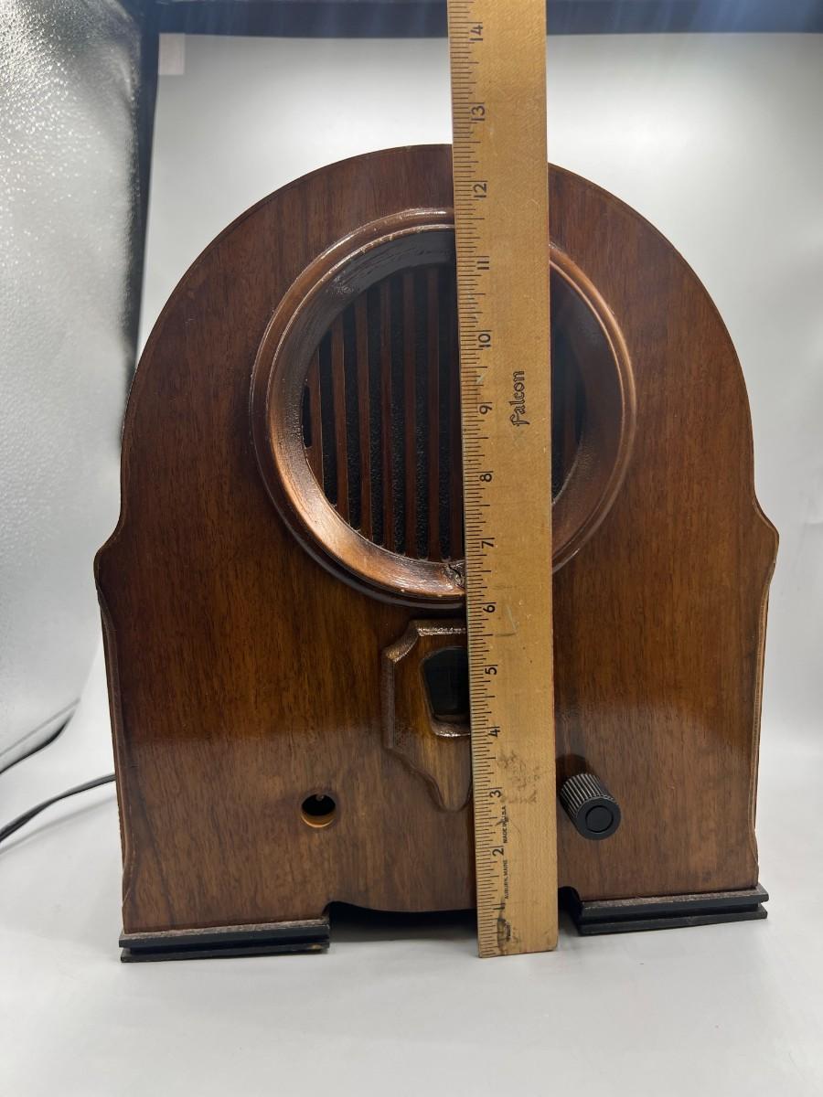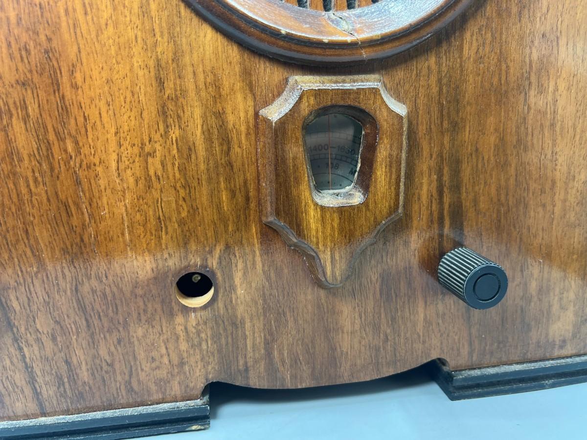 Vintage Old Style Tabletop Wood Radio. AM/FM radio made to look old. Some light signs of wear.