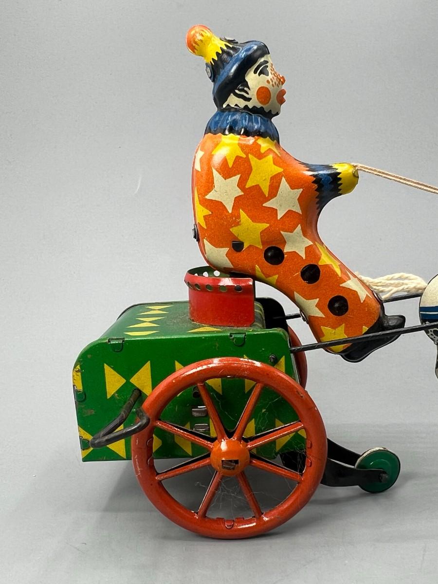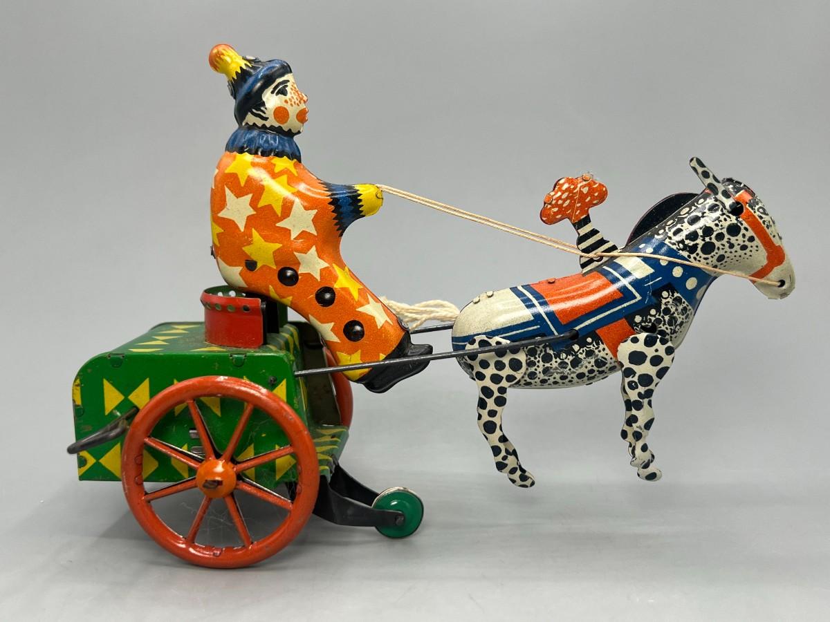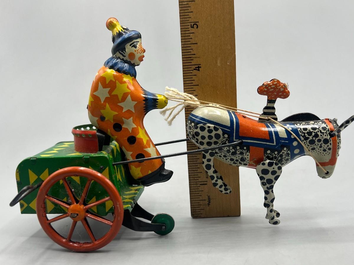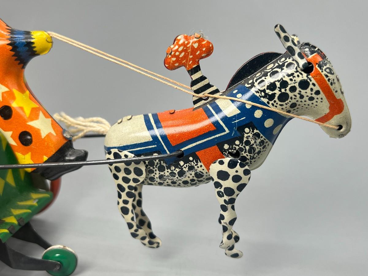 Vintage USSR Circus Clown with Spotted Horse Cart Litho Tin Toy