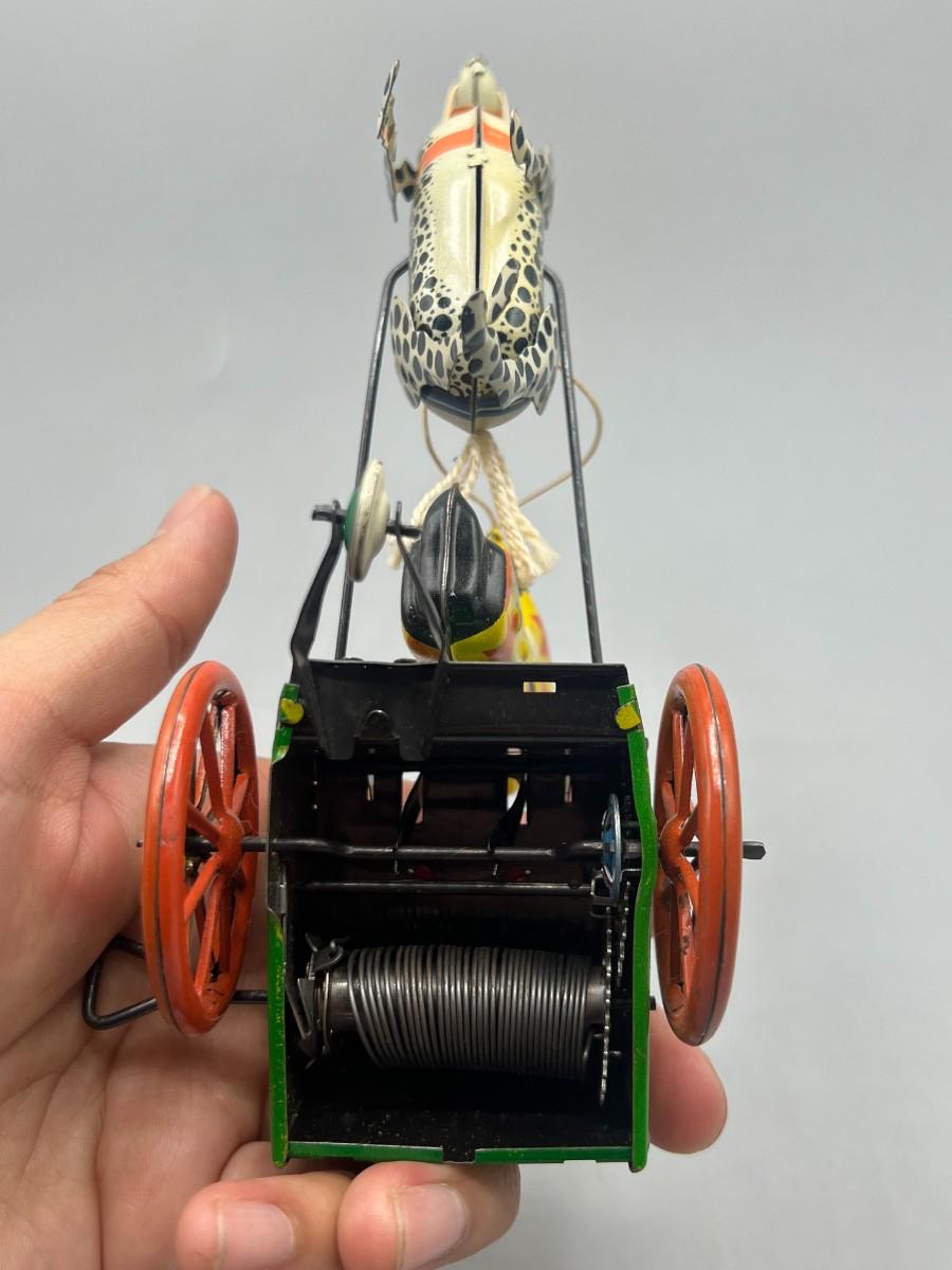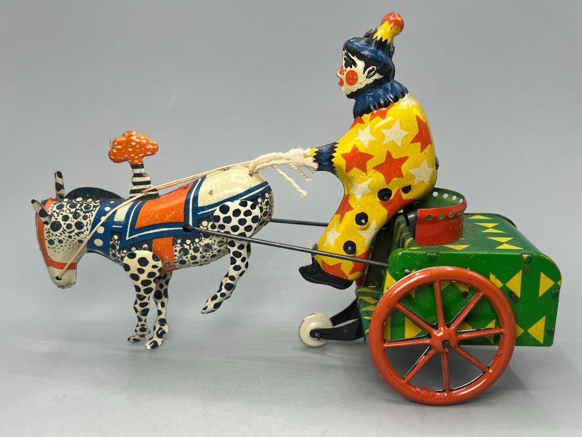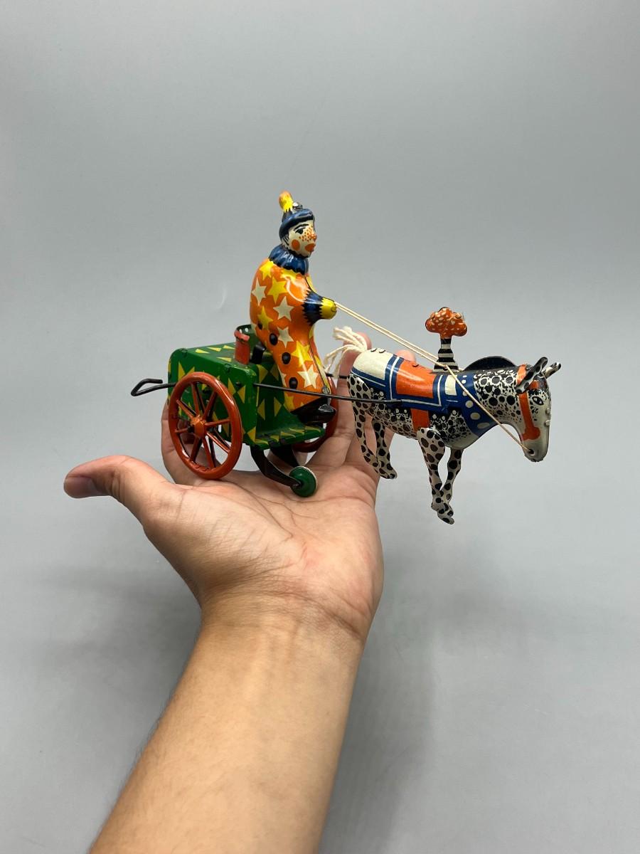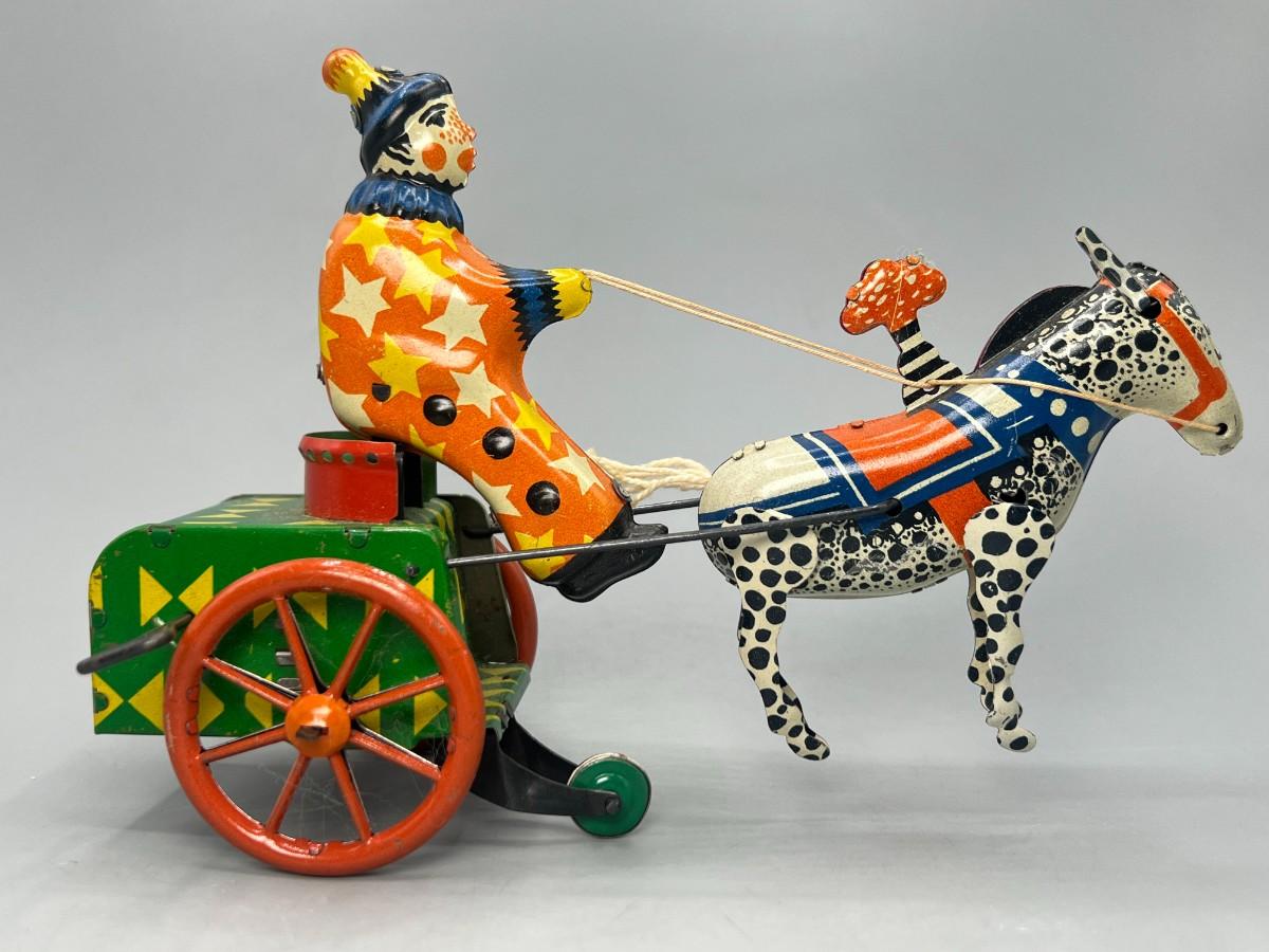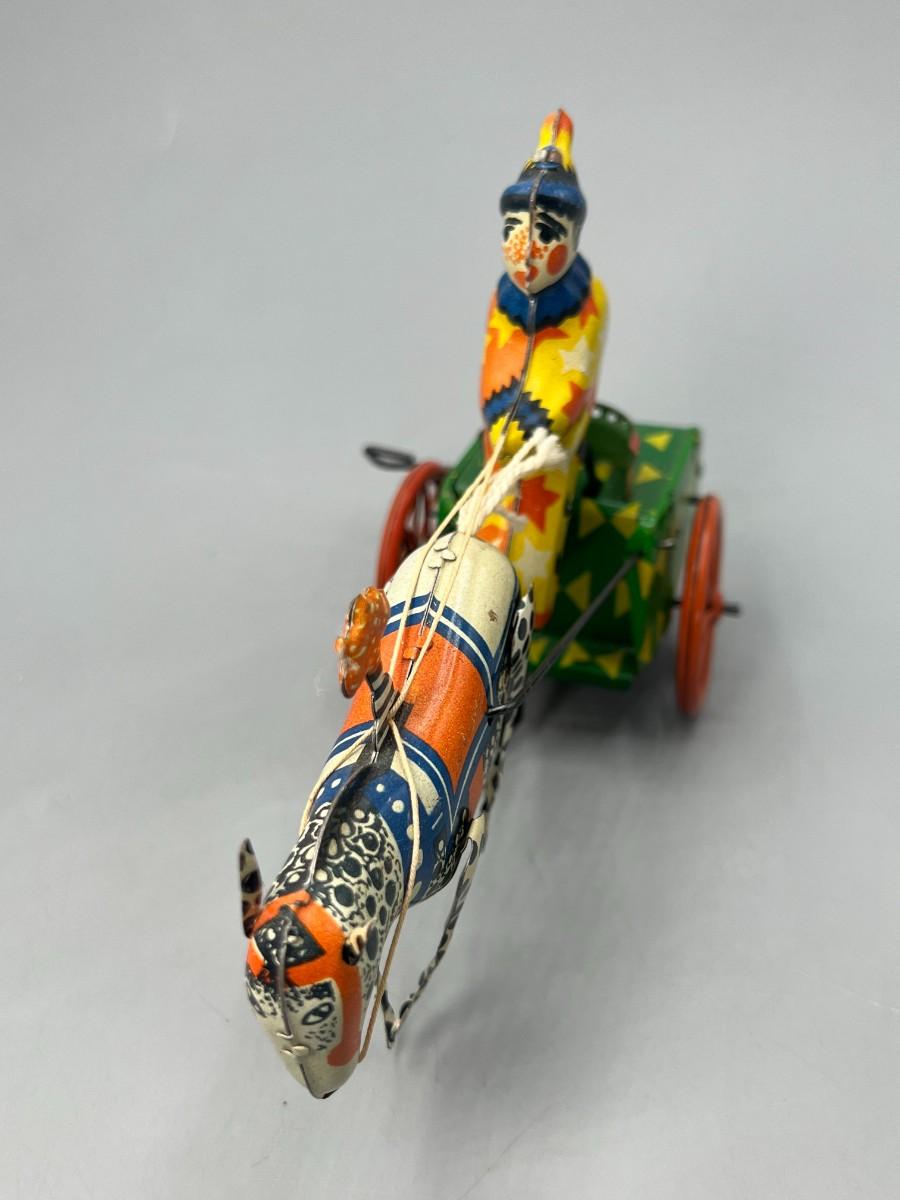 Vintage USSR Circus Clown with Spotted Horse Cart Litho Tin Toy