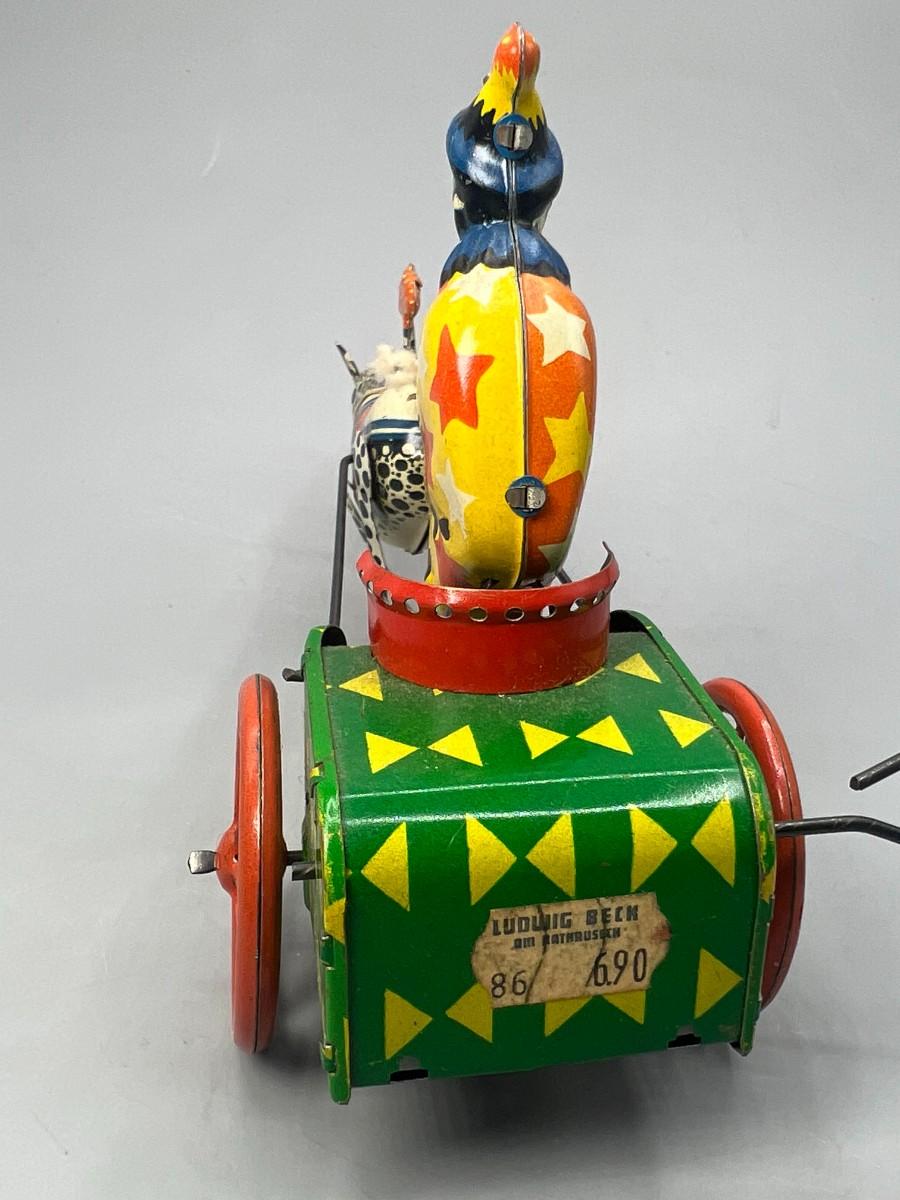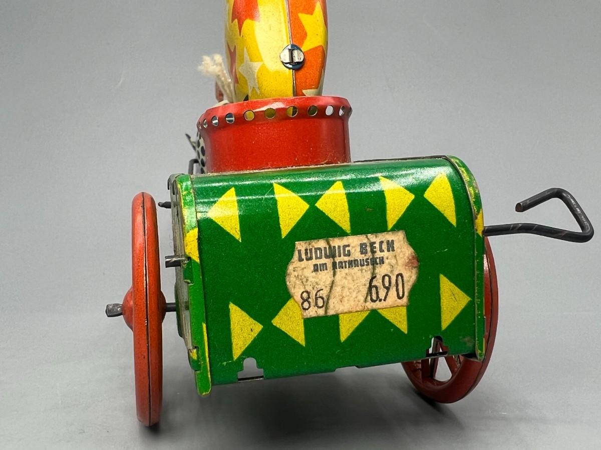 Vintage USSR Circus Clown with Spotted Horse Cart Litho Tin Toy. In good condition.