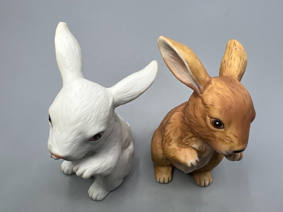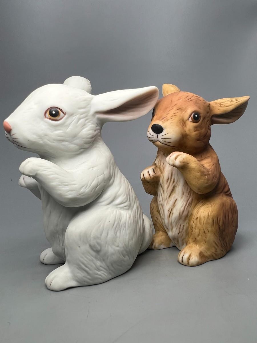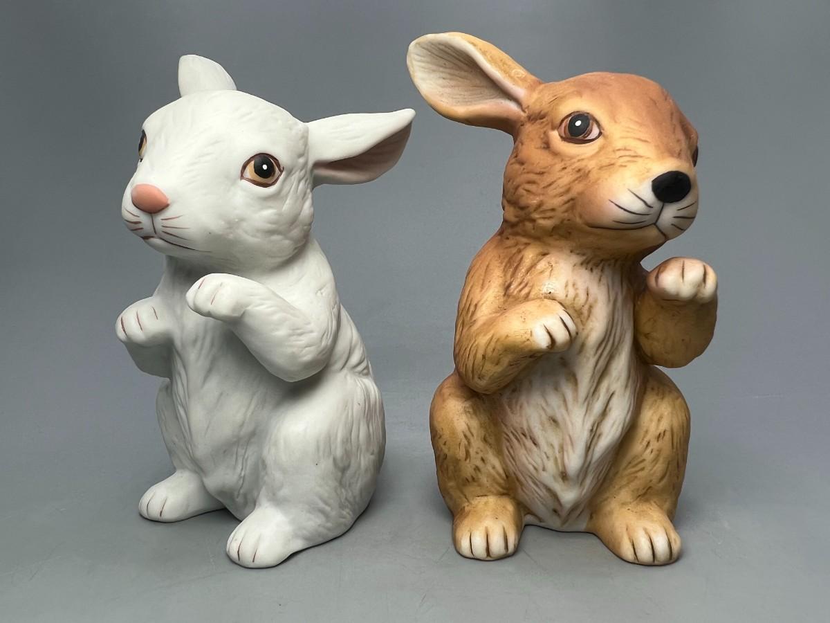 Pair of Vintage Lefton Ceramics Porcelain Bunny Rabbit Figurines. In good condition.