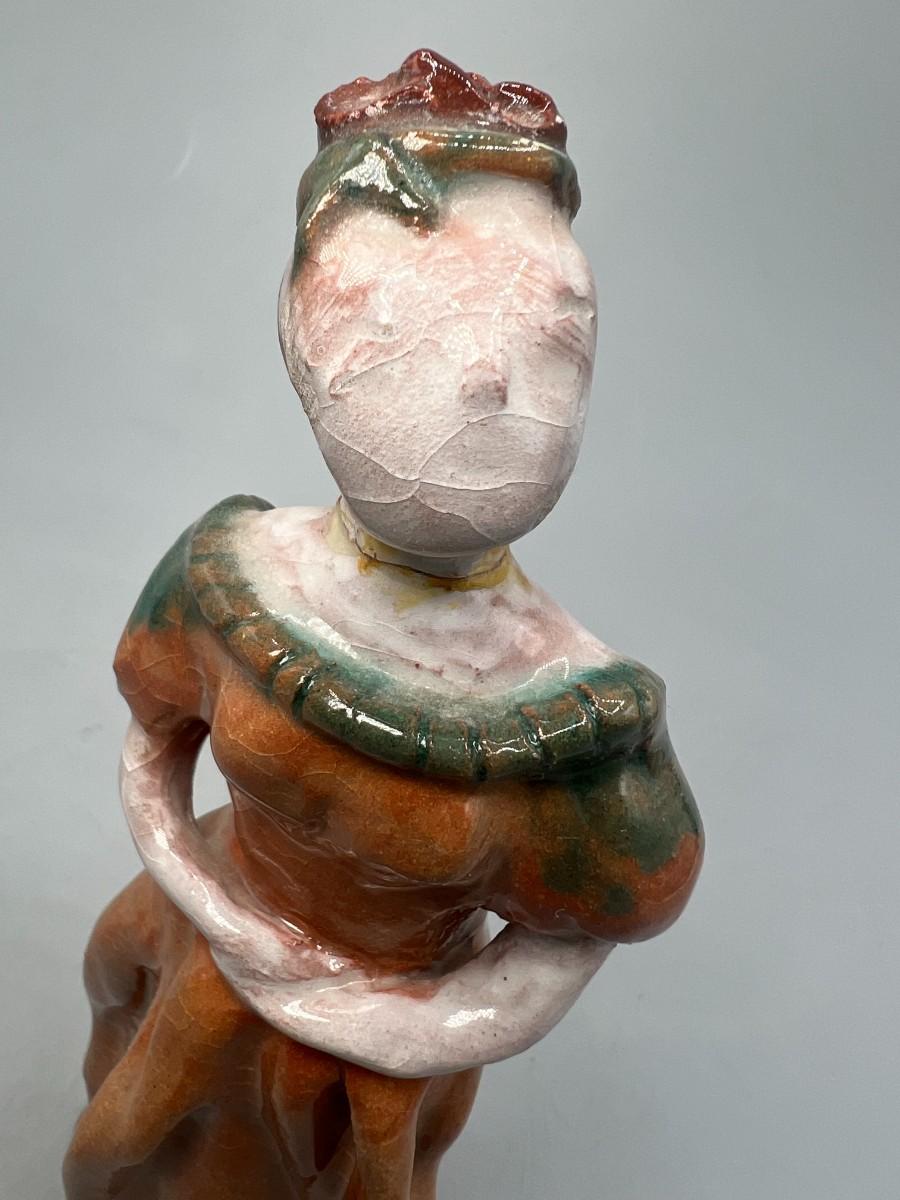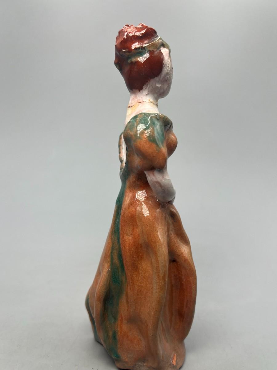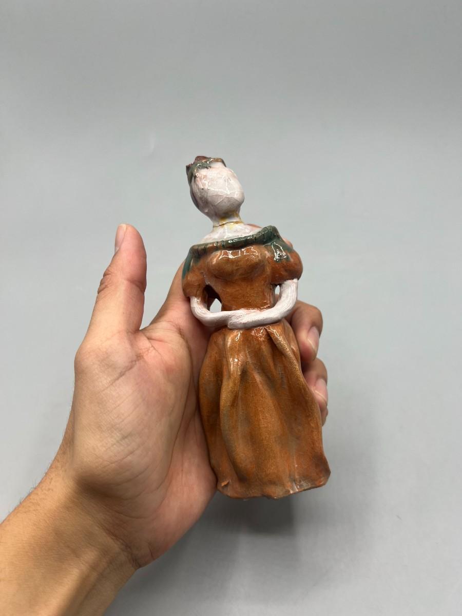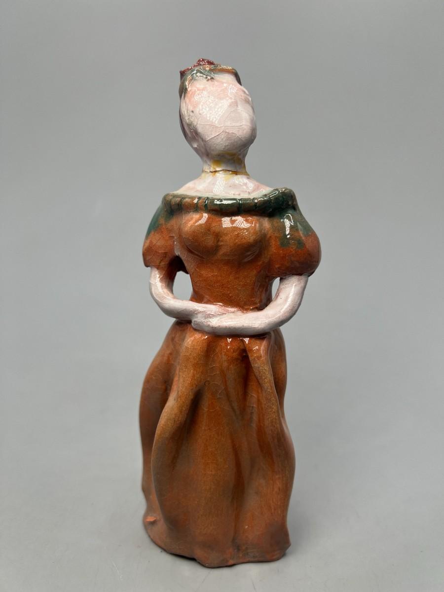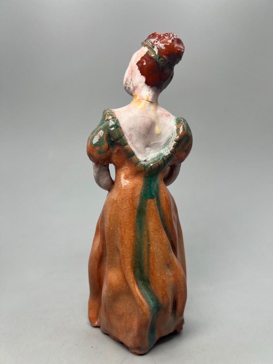Vintage Handmade Clay Art Woman in Dress Figurine
