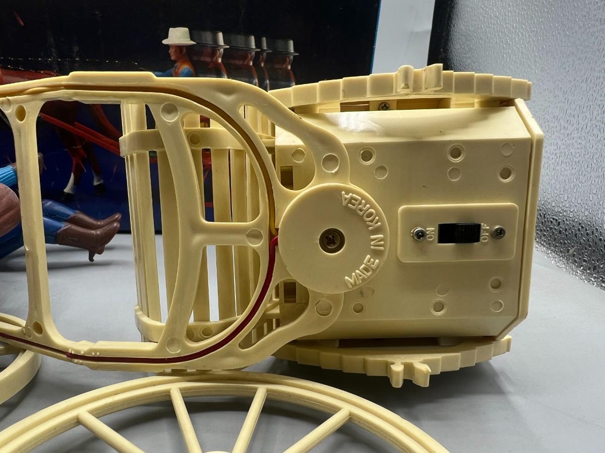 The long piece that connects both wheels to the buggy is missing. Has not been tested with batteries.