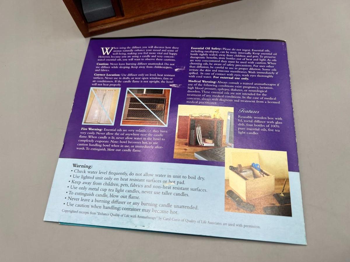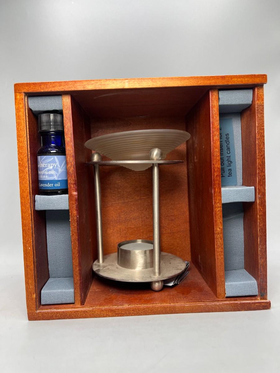 There are some signs of use, but there is no significant damage and in good useable condition. Three of the oils have been used.