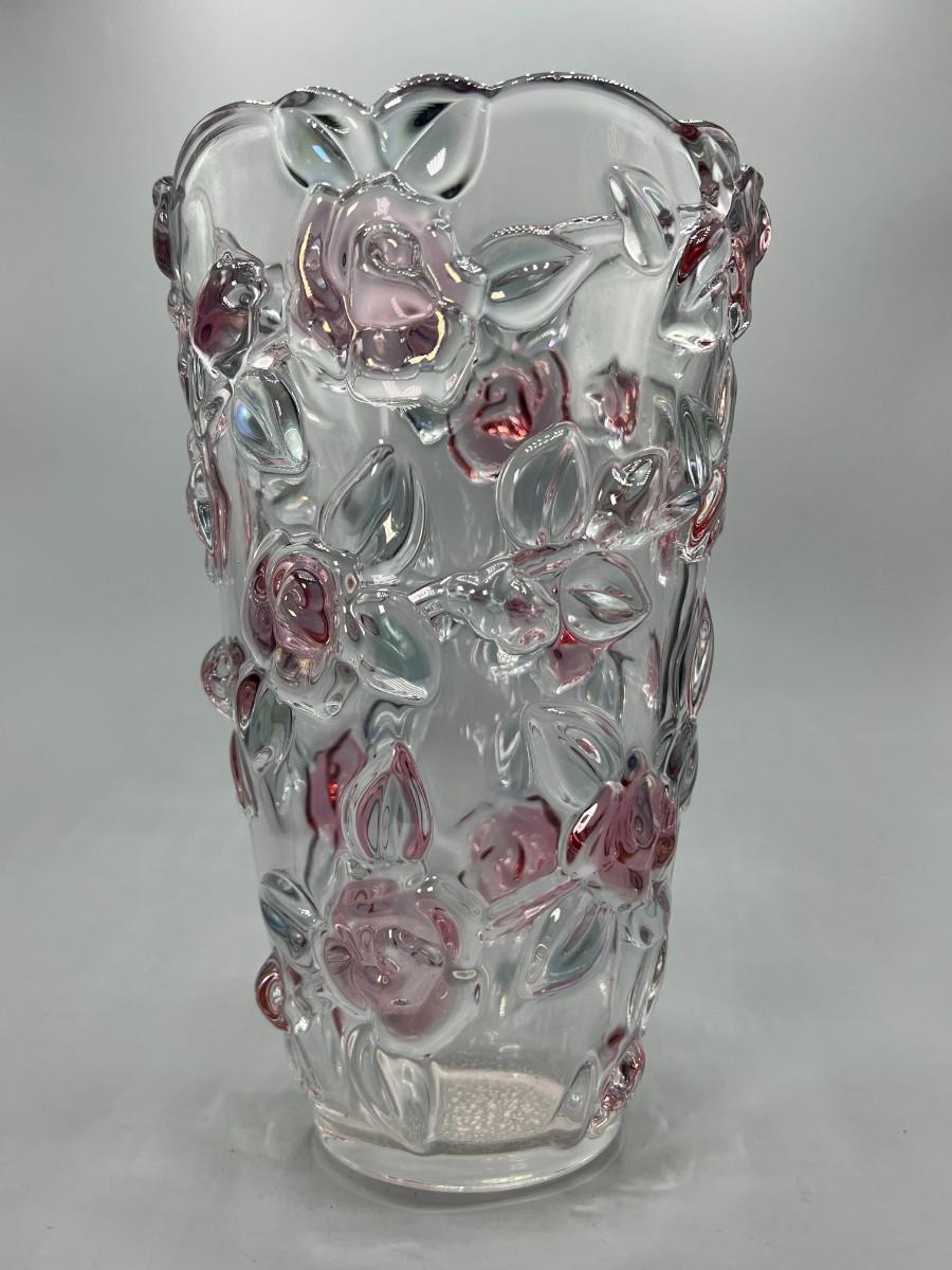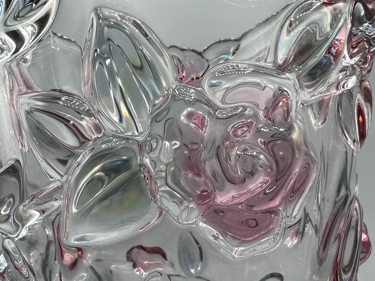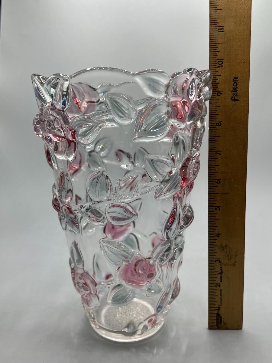 Mikasa Accents Crystal Flower Vase Bella Rosa Raised Pink Roses and Leaves Flower Vase