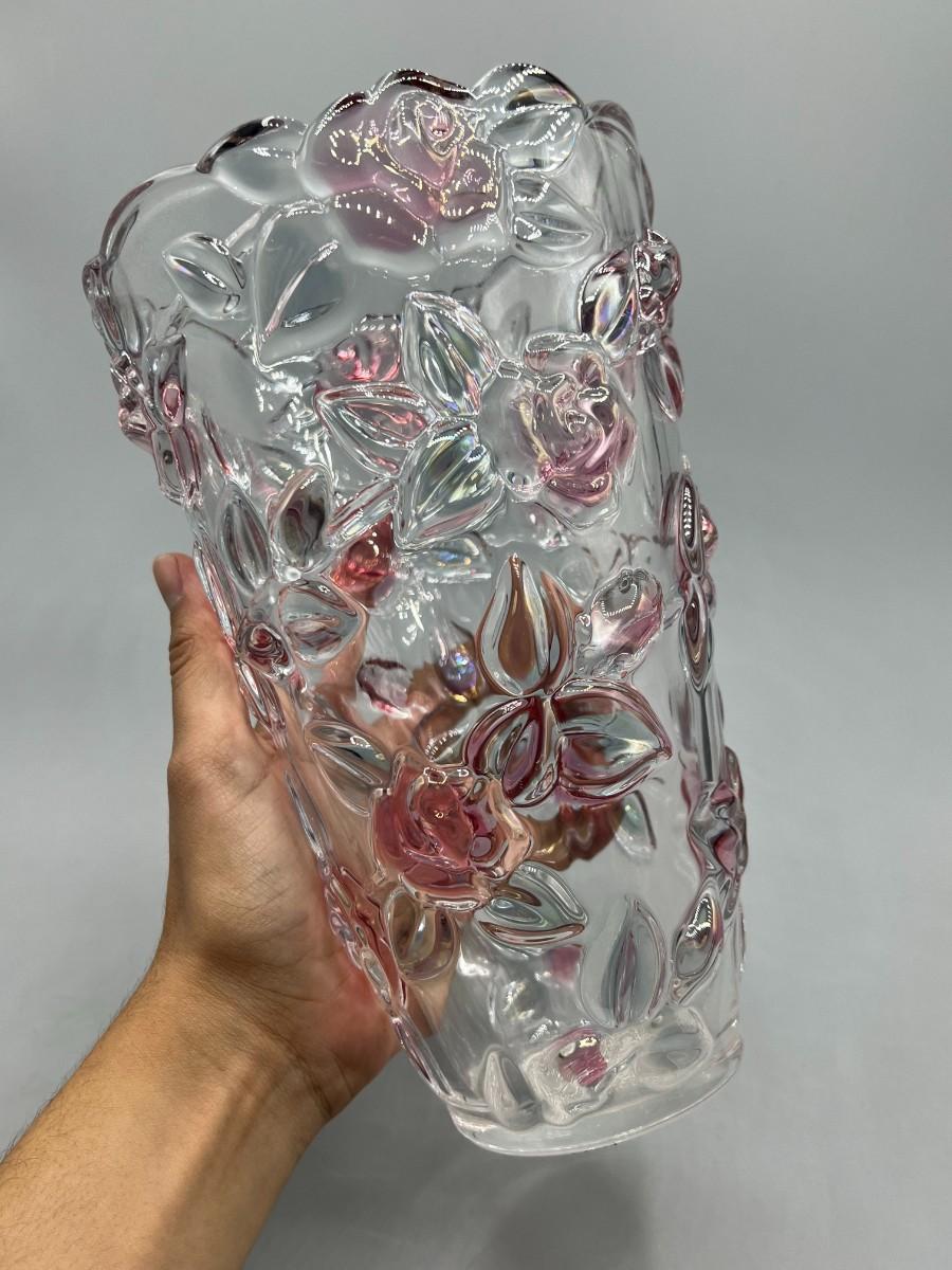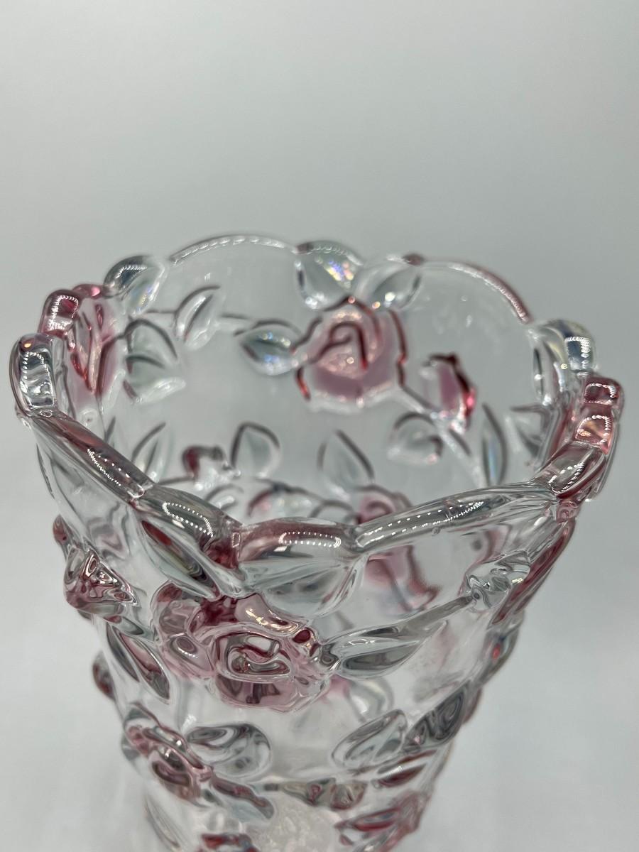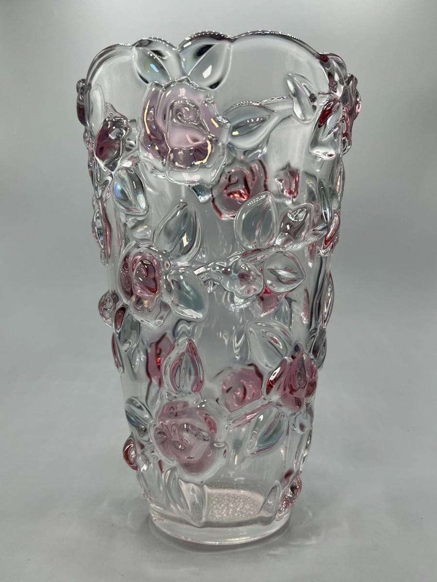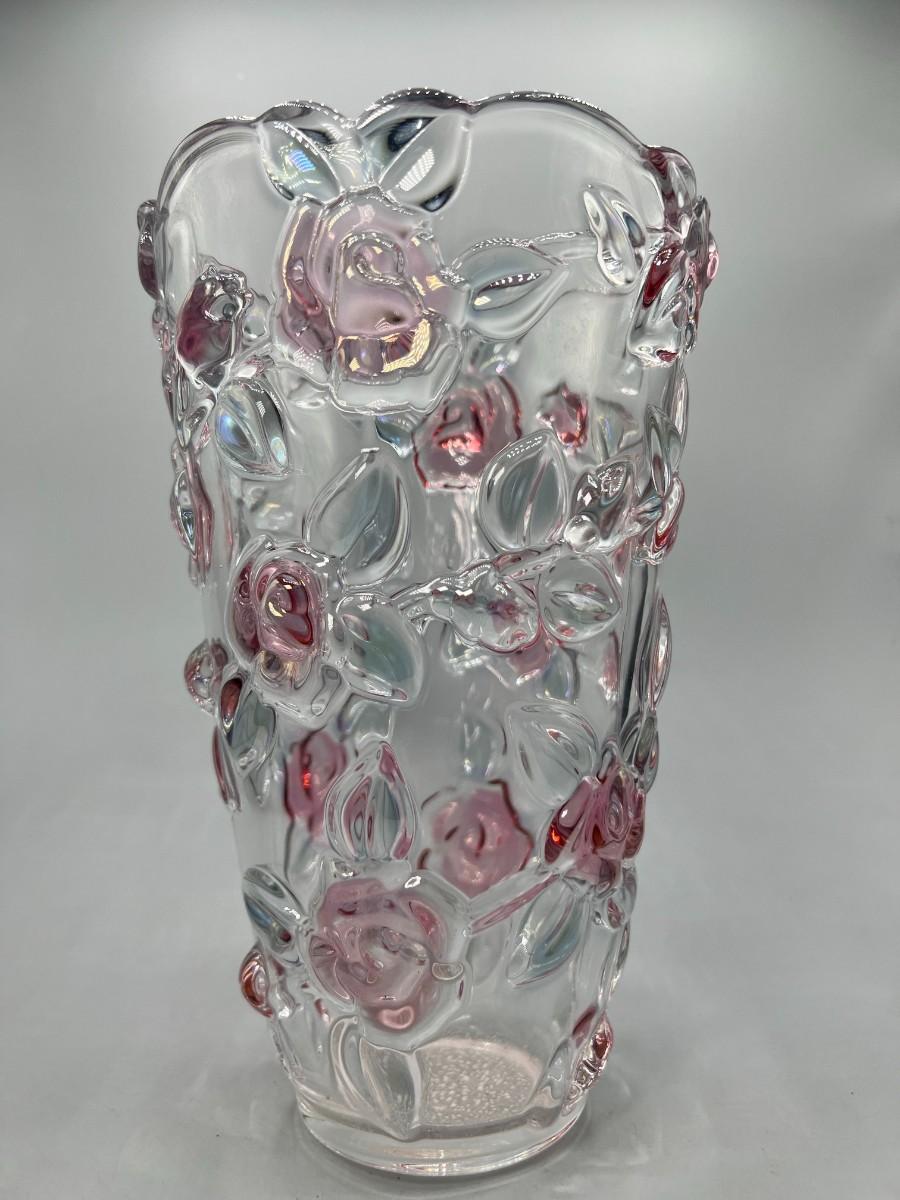 Mikasa Accents Crystal Flower Vase Bella Rosa Raised Pink Roses and Leaves Flower Vase